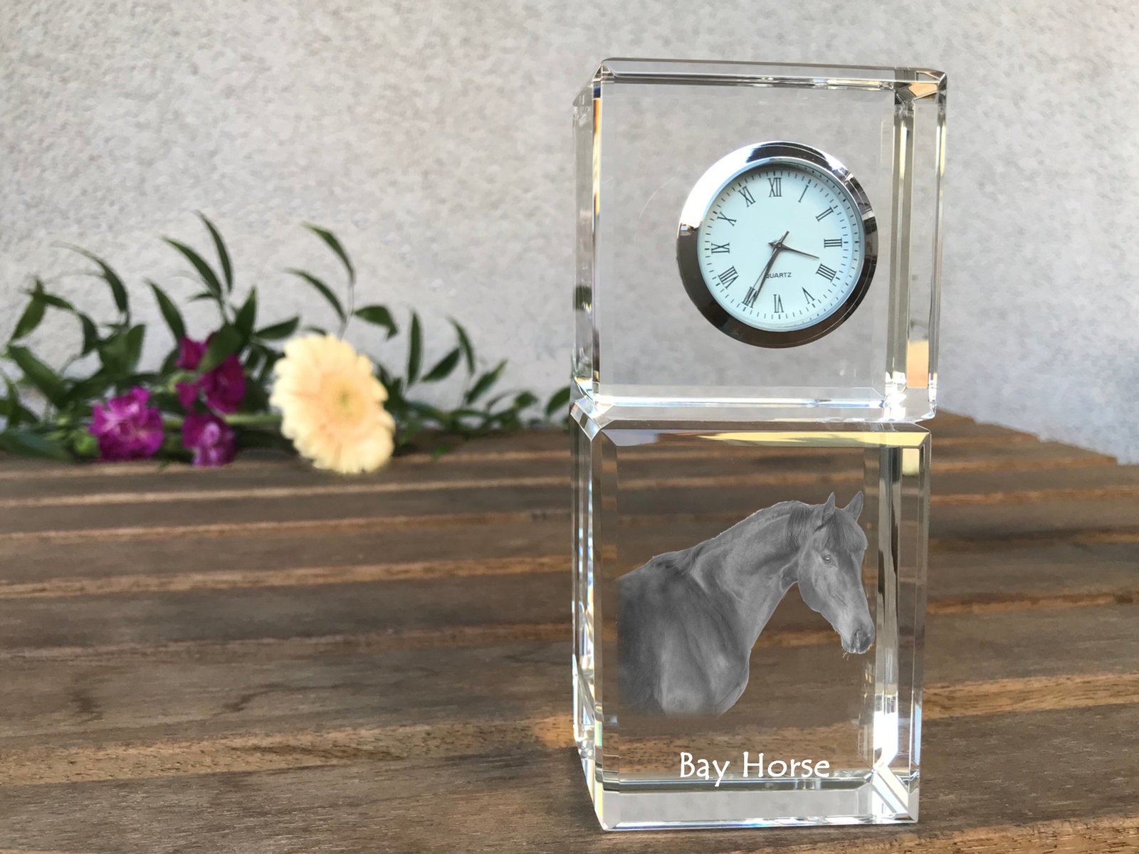 Įlankos žirgas – Krištolo laikrodis su arklio nuotrauka