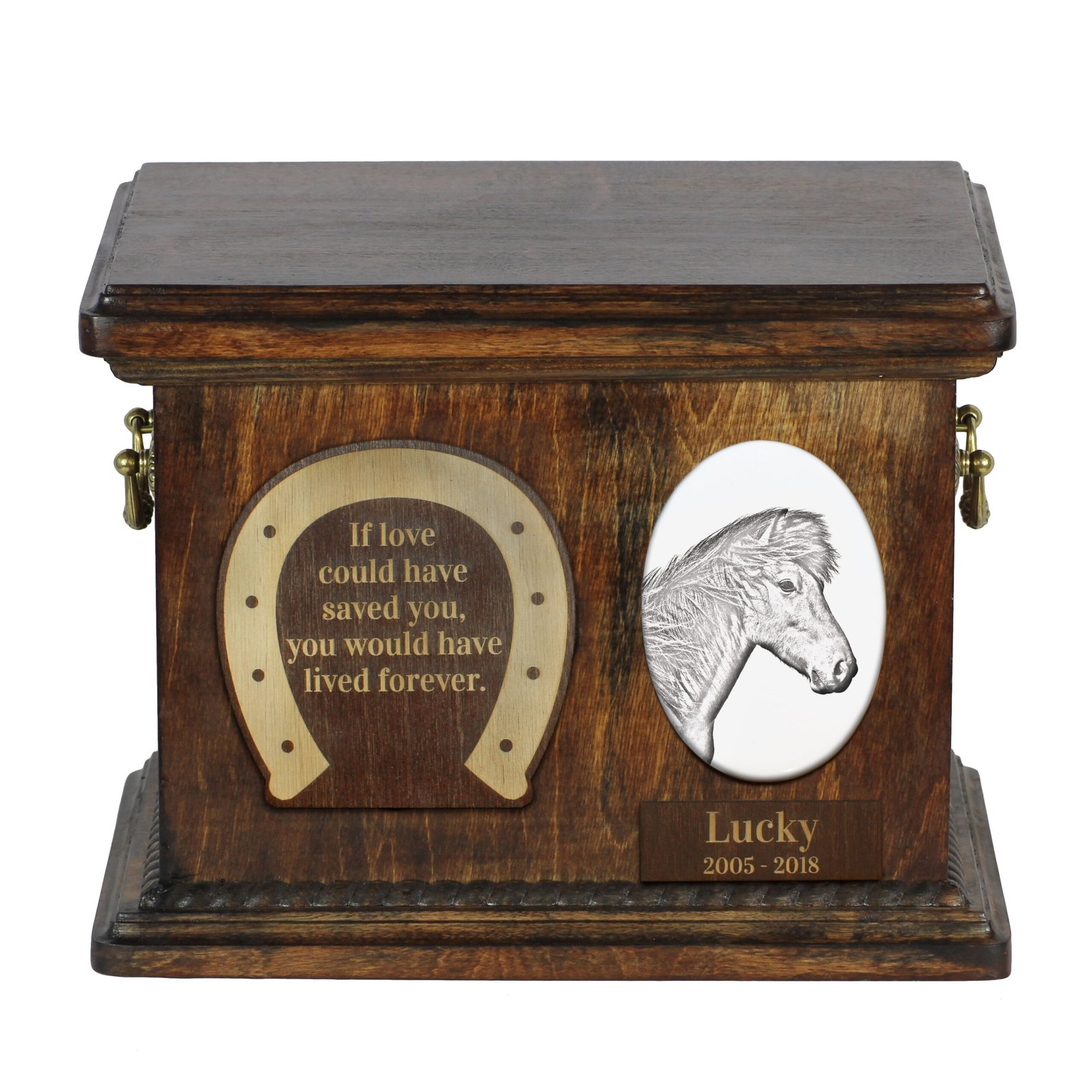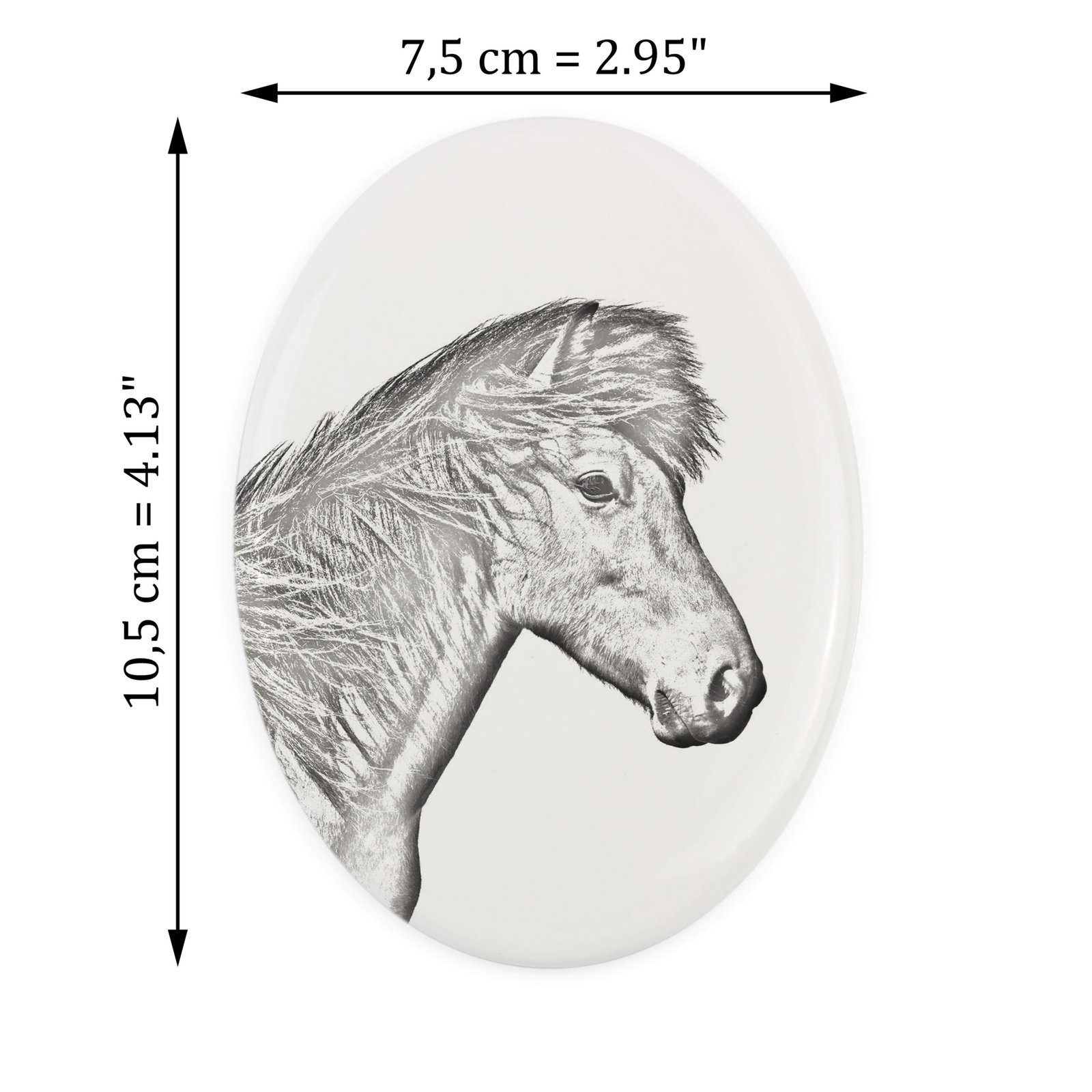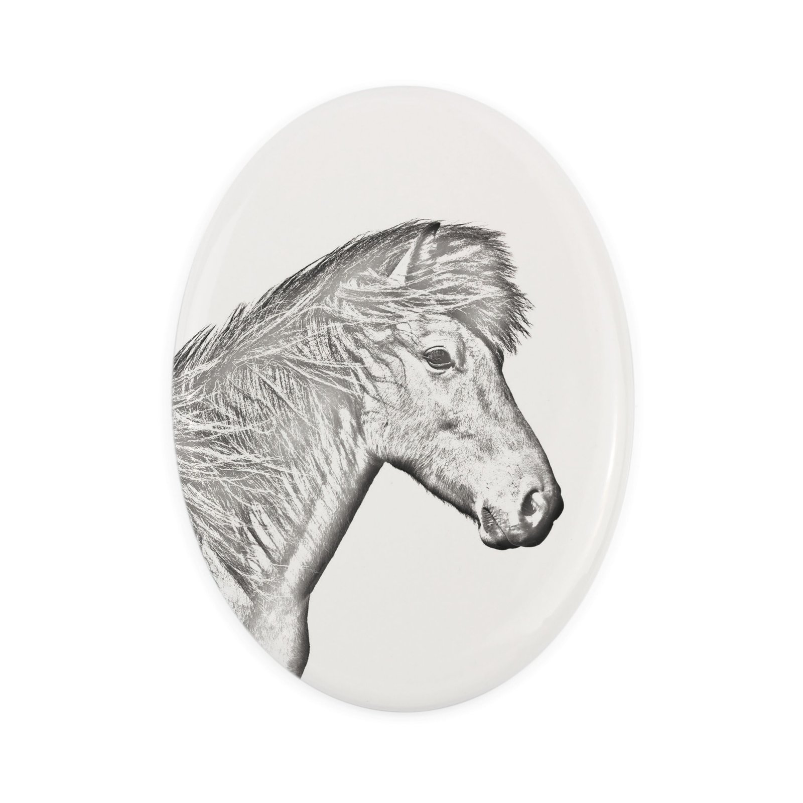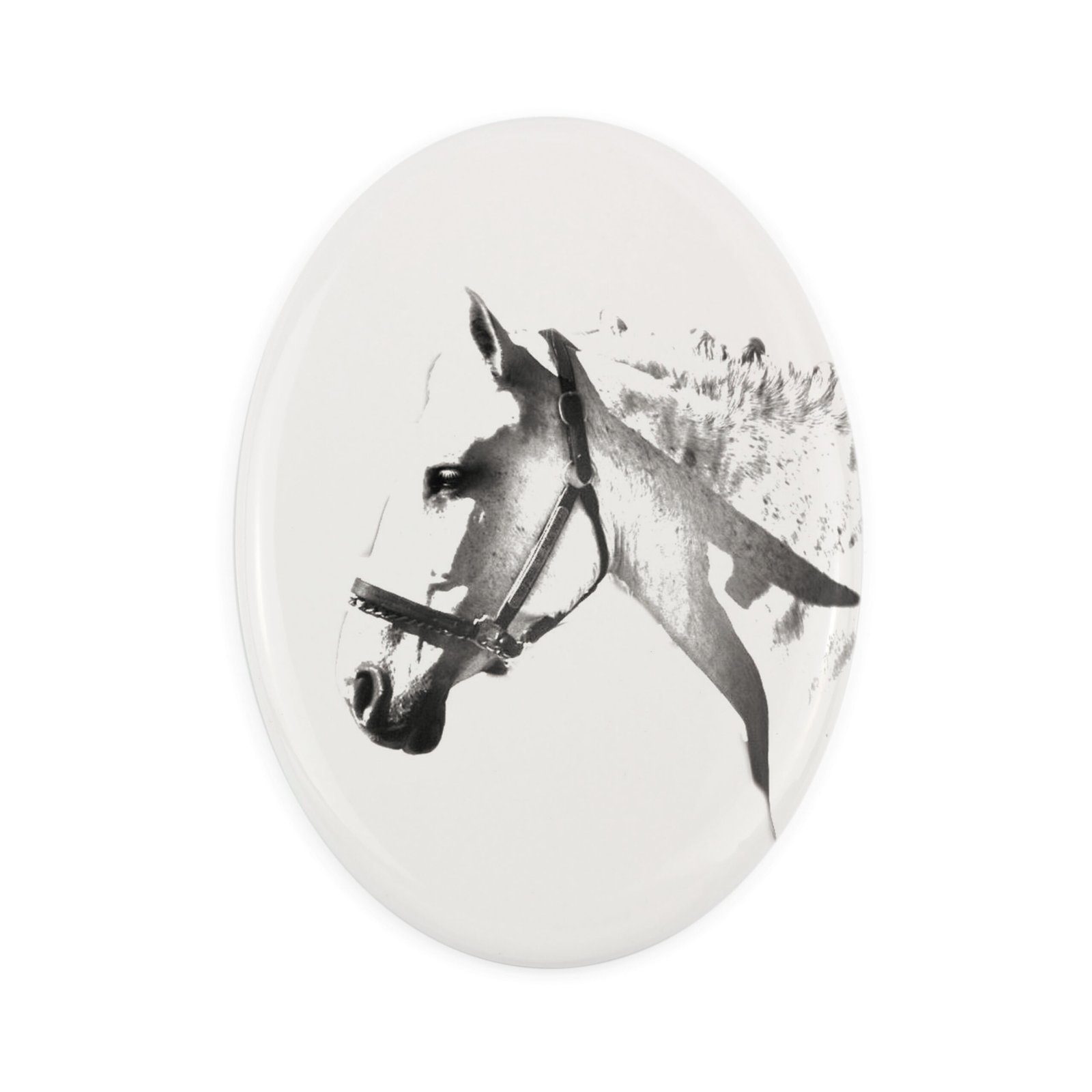 Ispanų normanų veislės arklys – Atminimo lenta su arklio nuotrauka