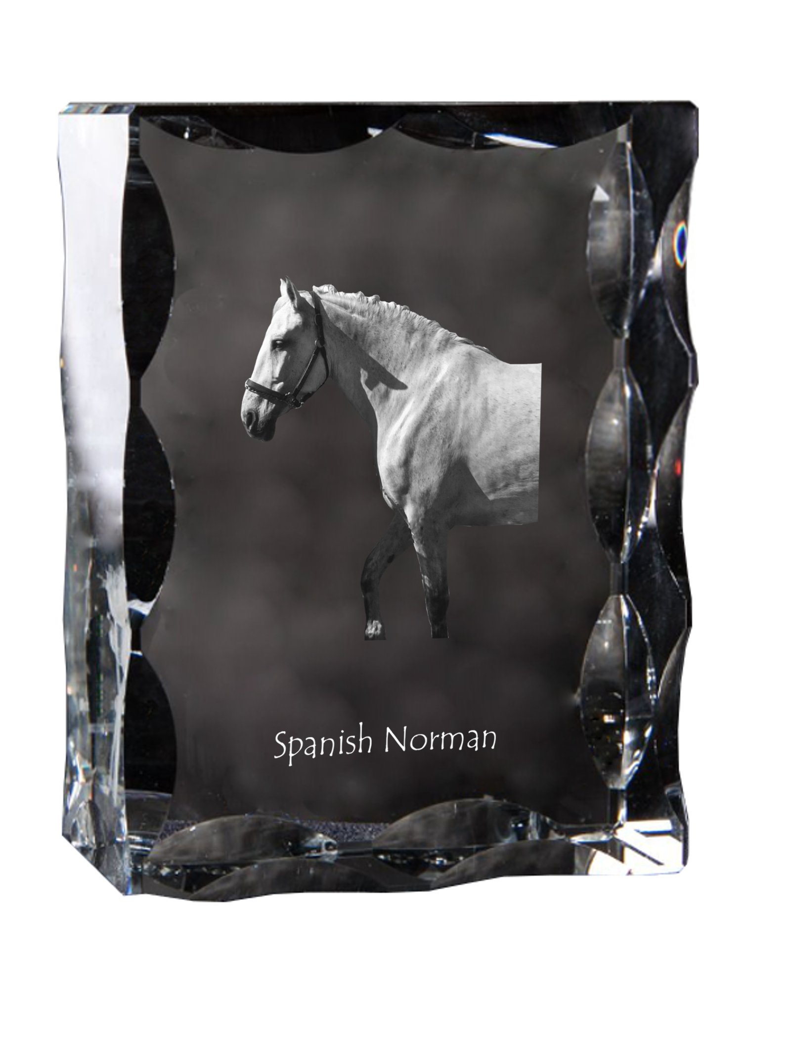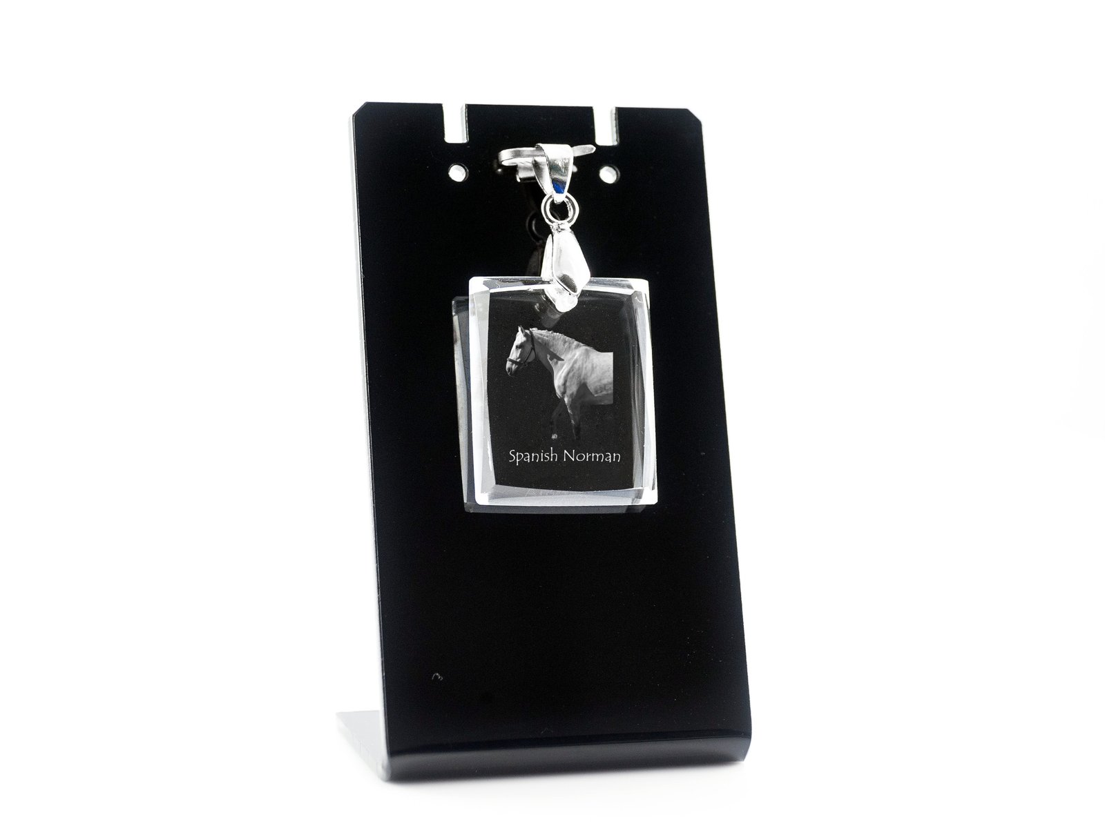 Ispanų normanų veislės arklys – Krištolo pakabukas su arklio nuotrauka