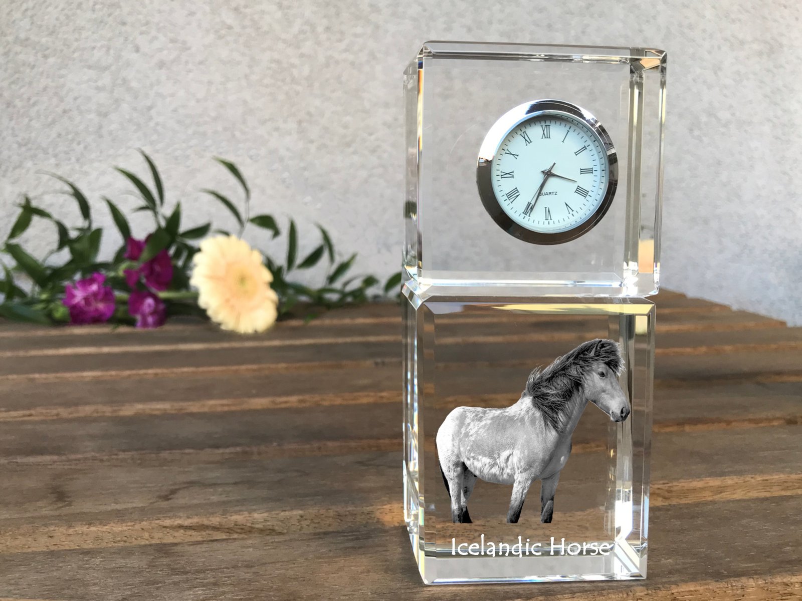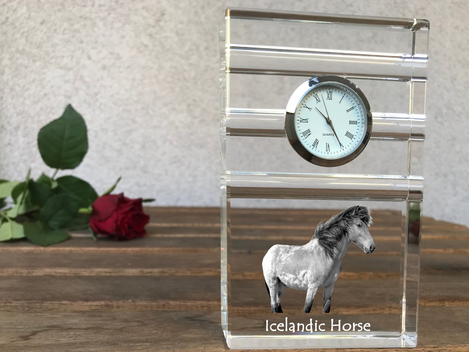 Islandijos arklys – Krištolo laikrodis su arklio nuotrauka