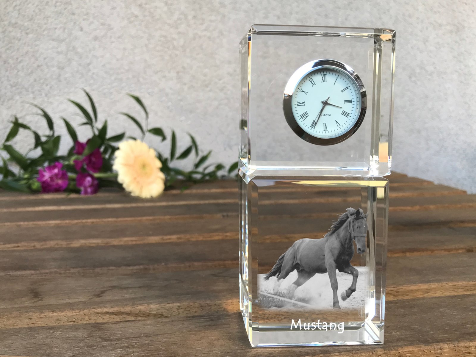 Mustangas – Krištolo laikrodis su arklio nuotrauka