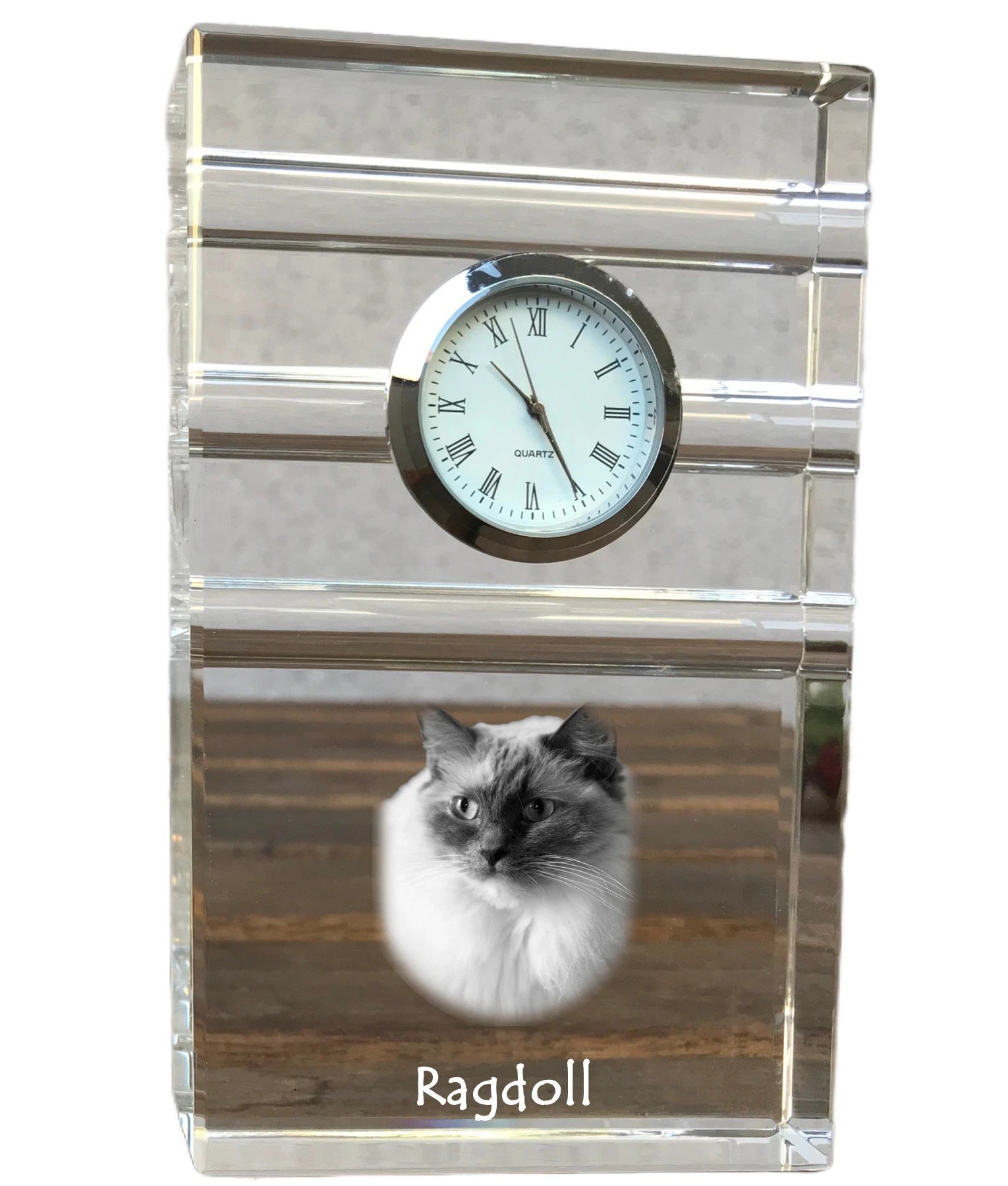 Ragdoll katės (Skudurinukė, Ragdoll) – Stiklinis laikrodis su nuotrauka