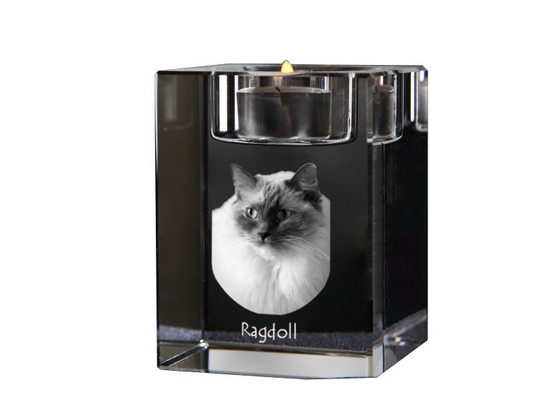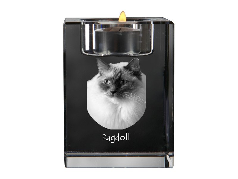 Ragdoll katės (Skudurinukė, Ragdoll) – Žvakidė su katės nuotrauka