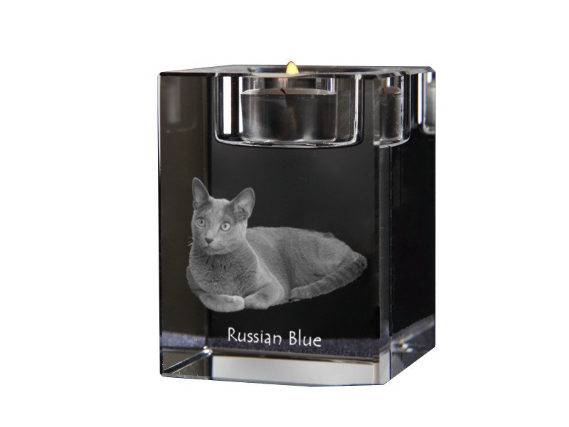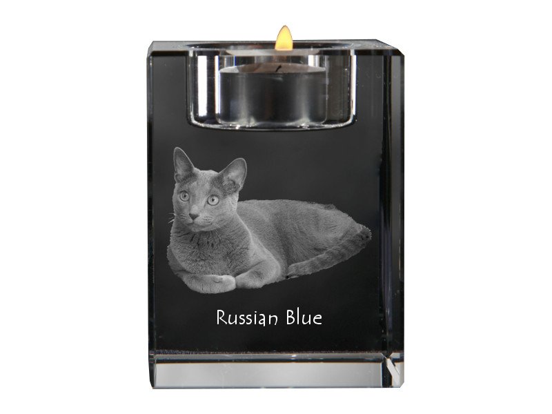 Rusų mėlynasis (Russian Blue) – Žvakidė su katės nuotrauka