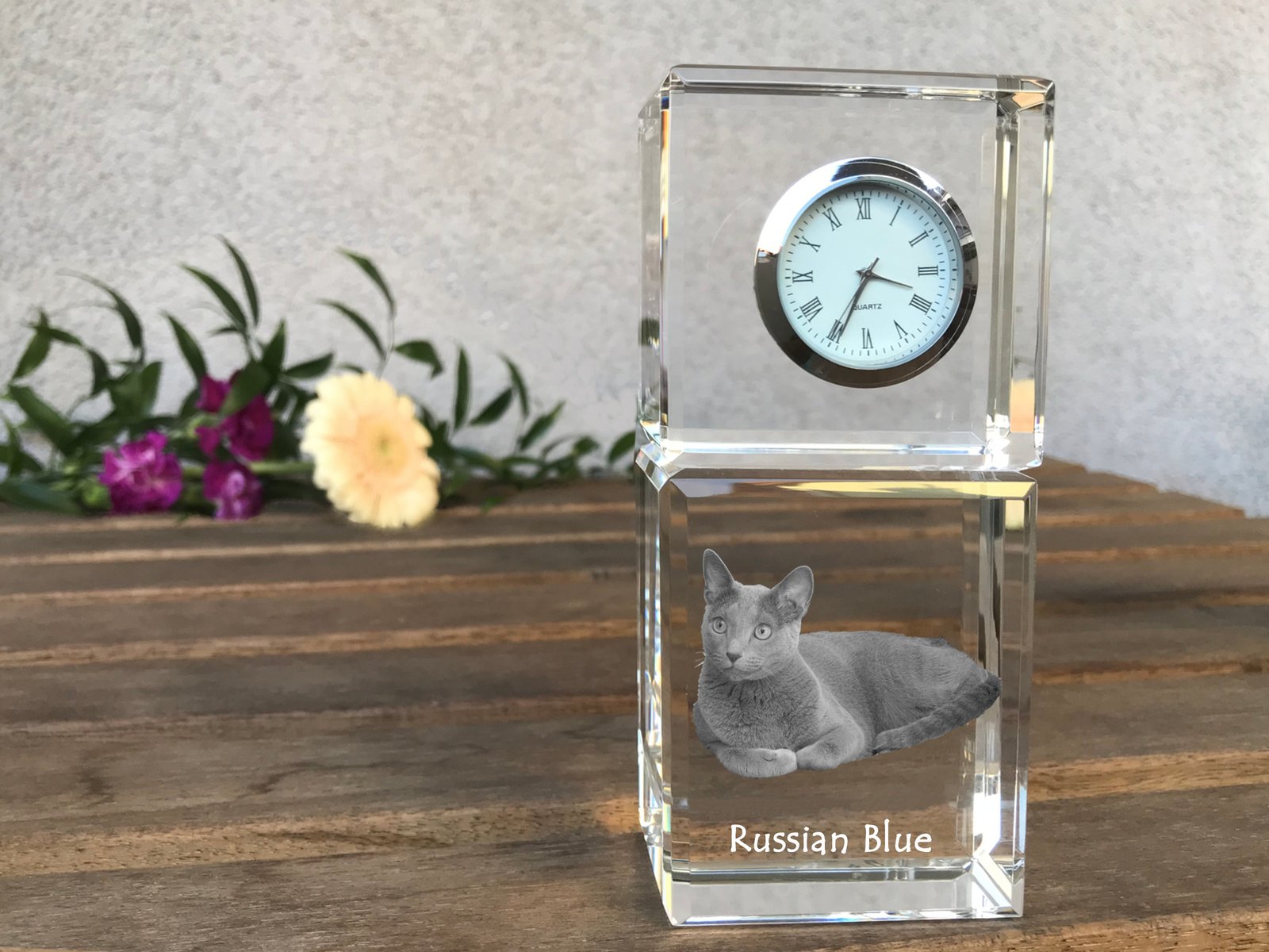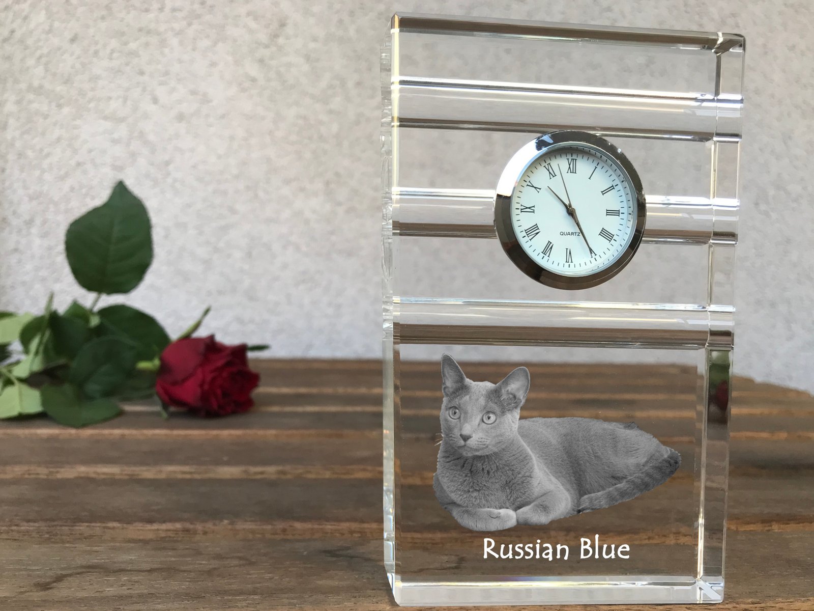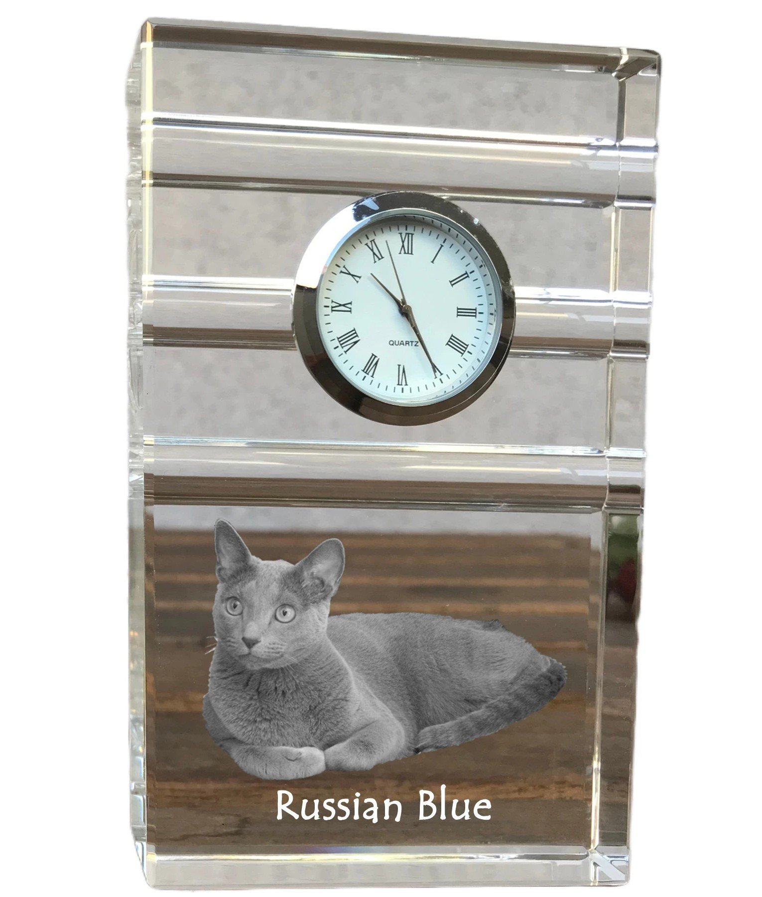 Rusų mėlynasis (Russian Blue) – Krištolo laikrodis su nuotrauka