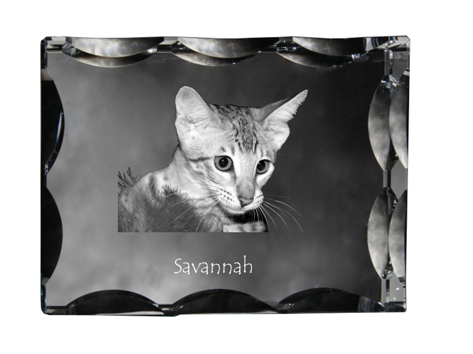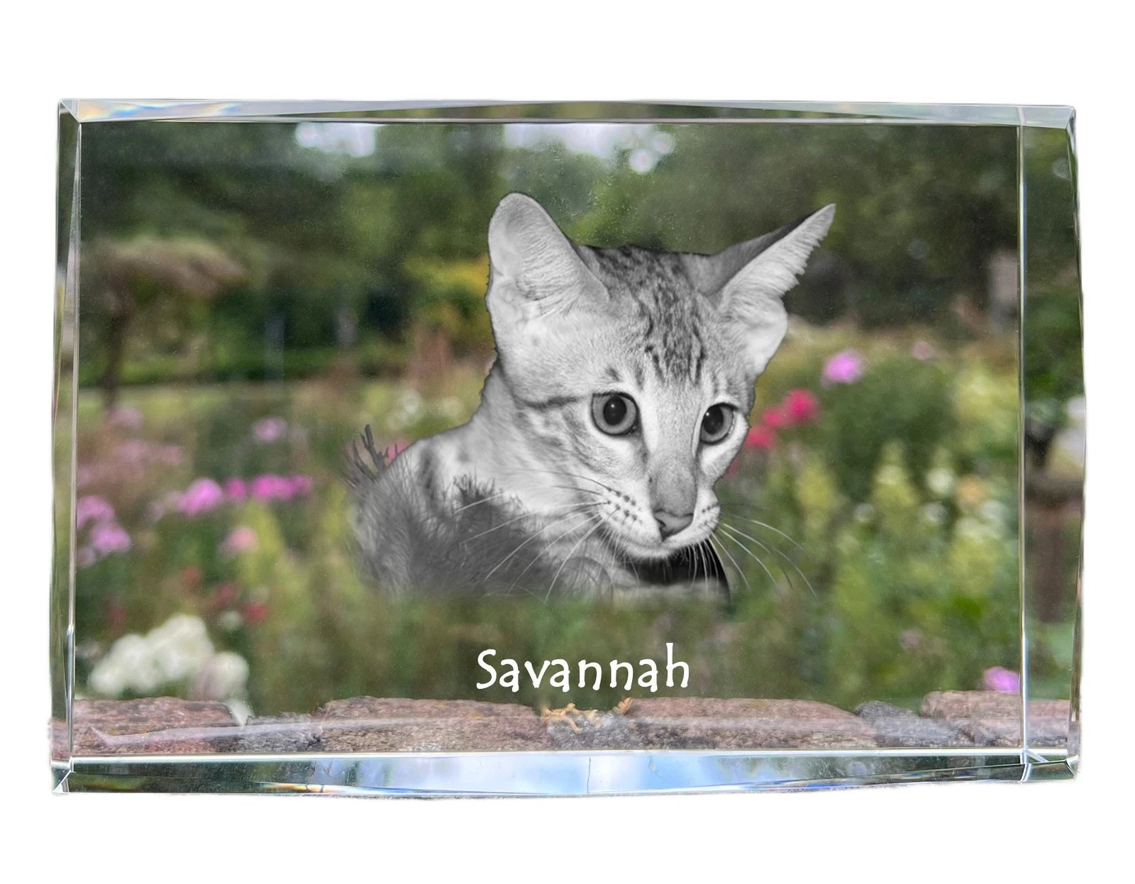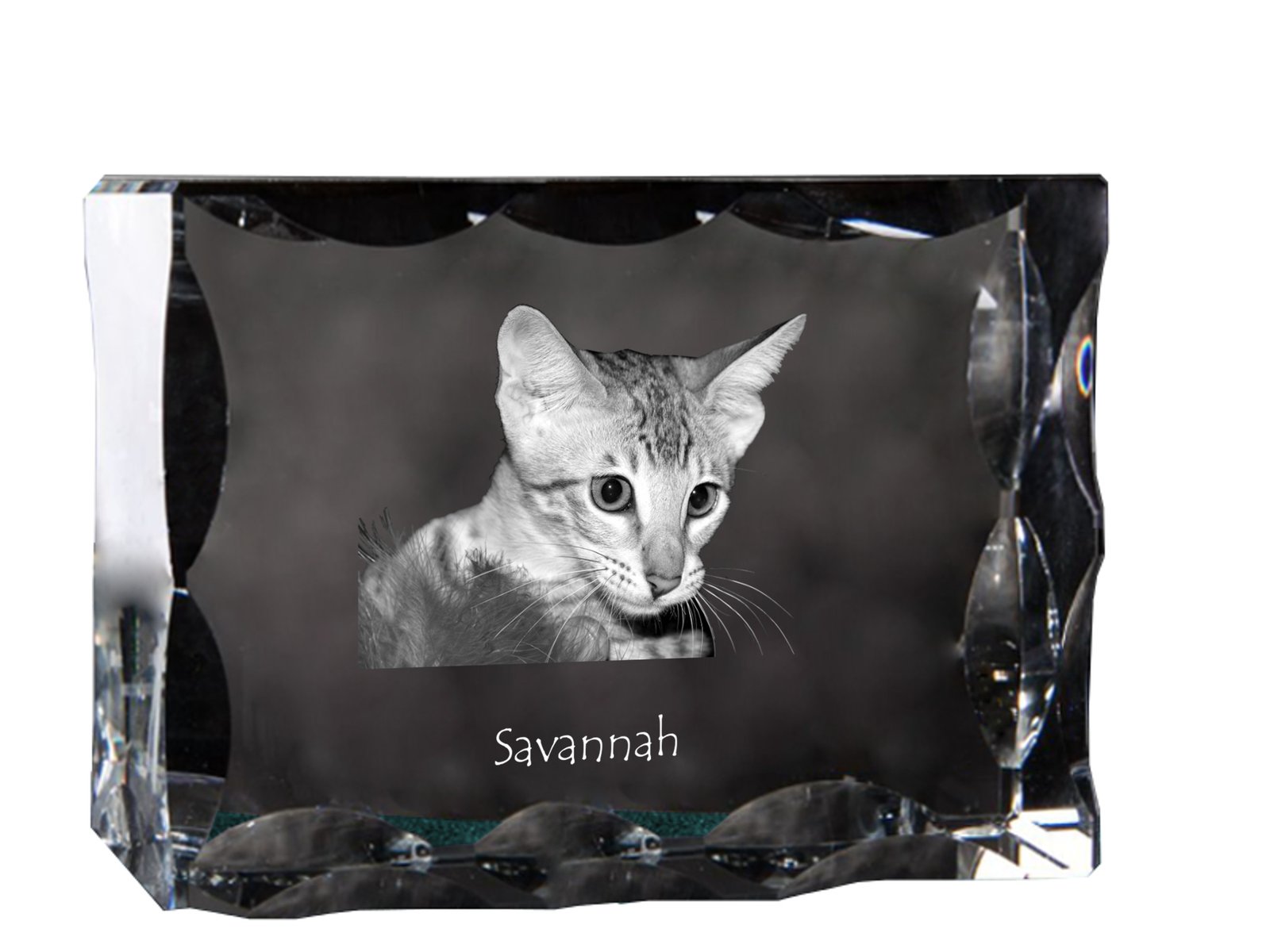 Savanos katė (Savannah cat) – Krištolas su katės nuotrauka