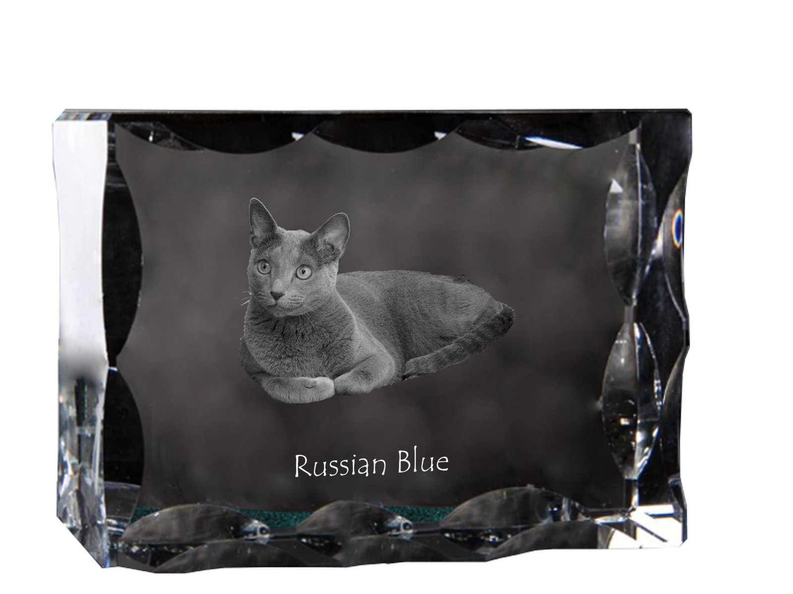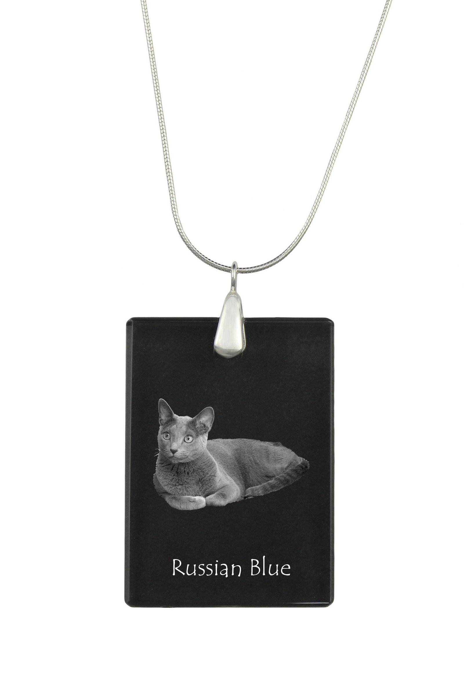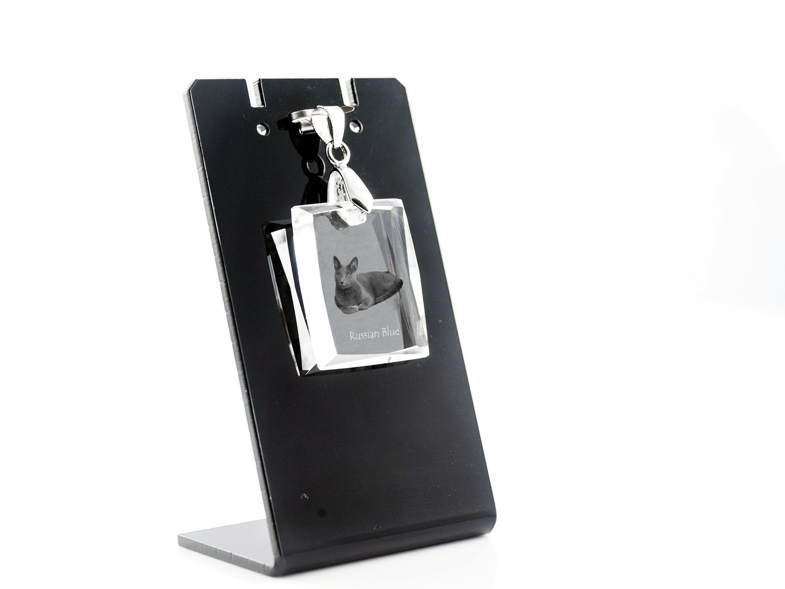 Rusų mėlynasis (Russian Blue) – Krištolo pakabukas su katės nuotrauka