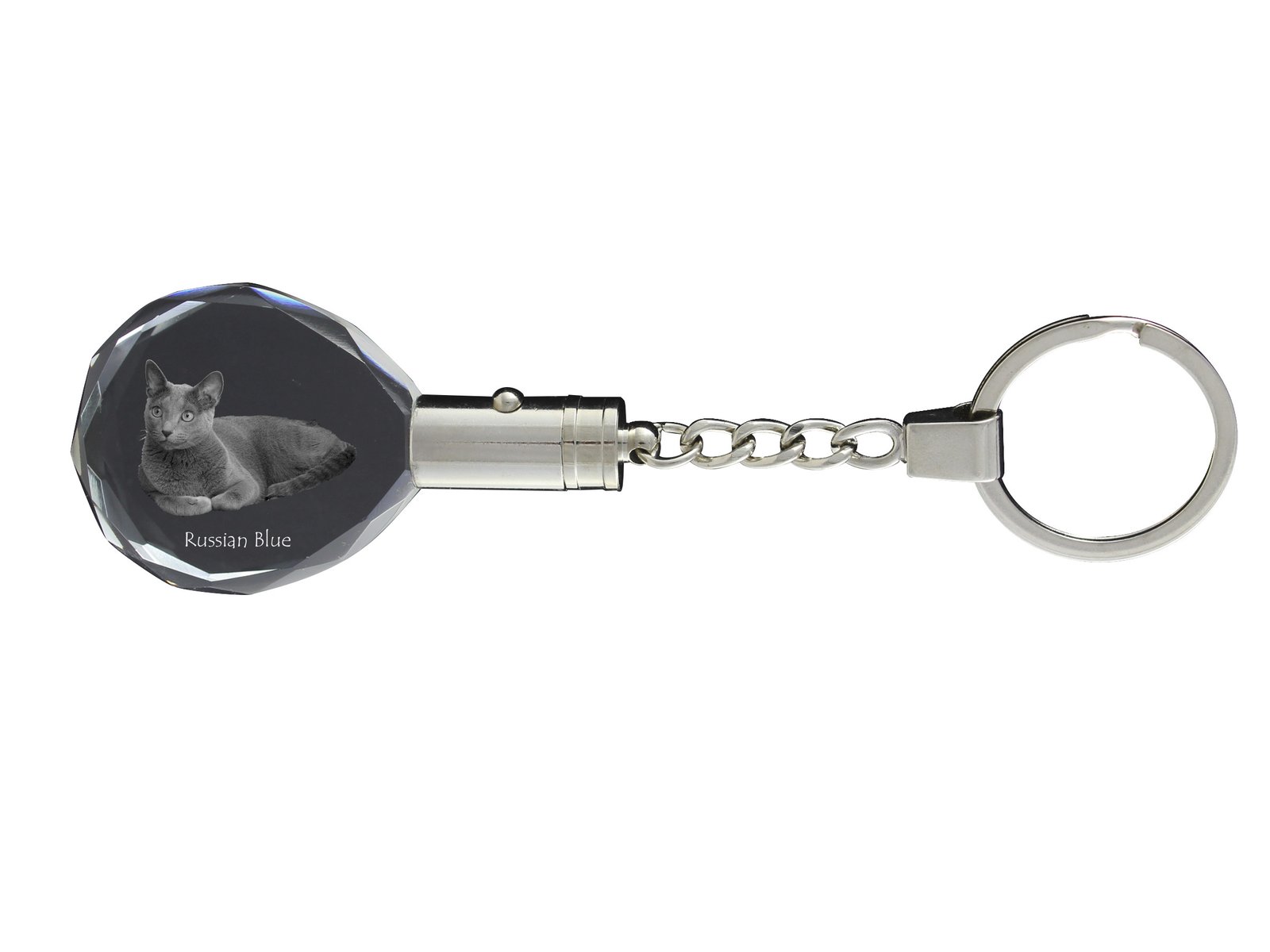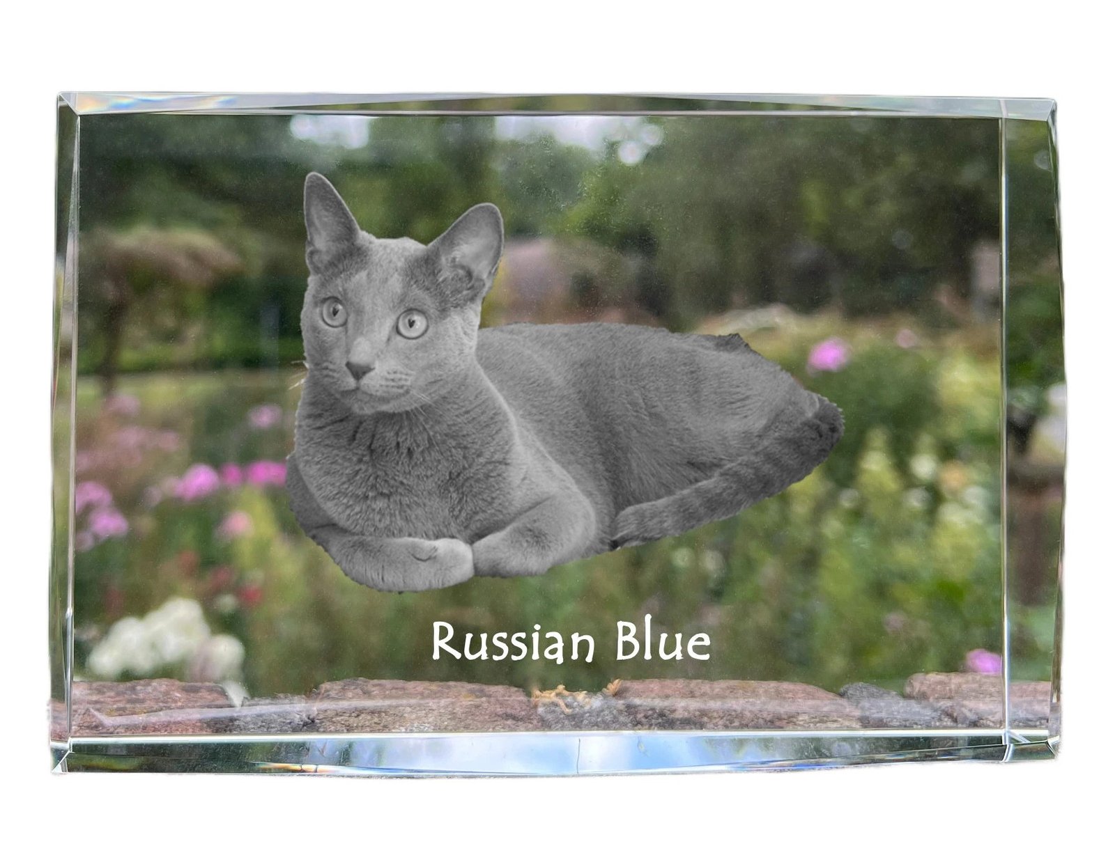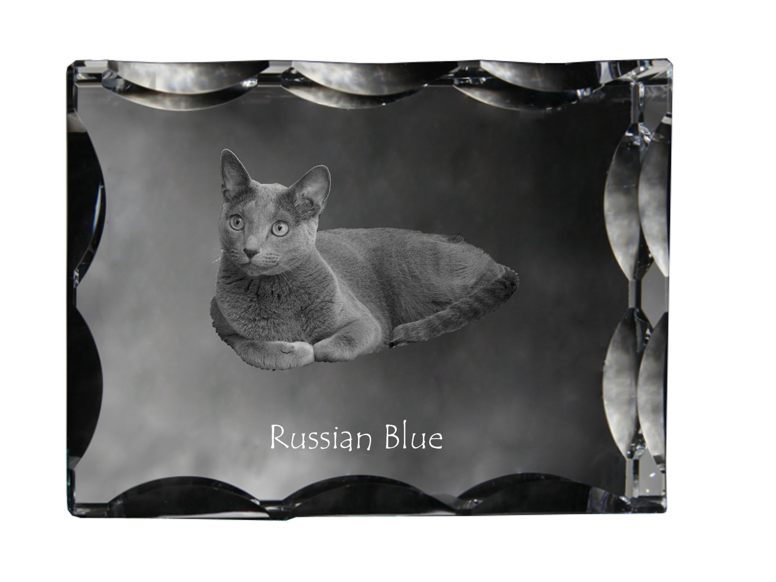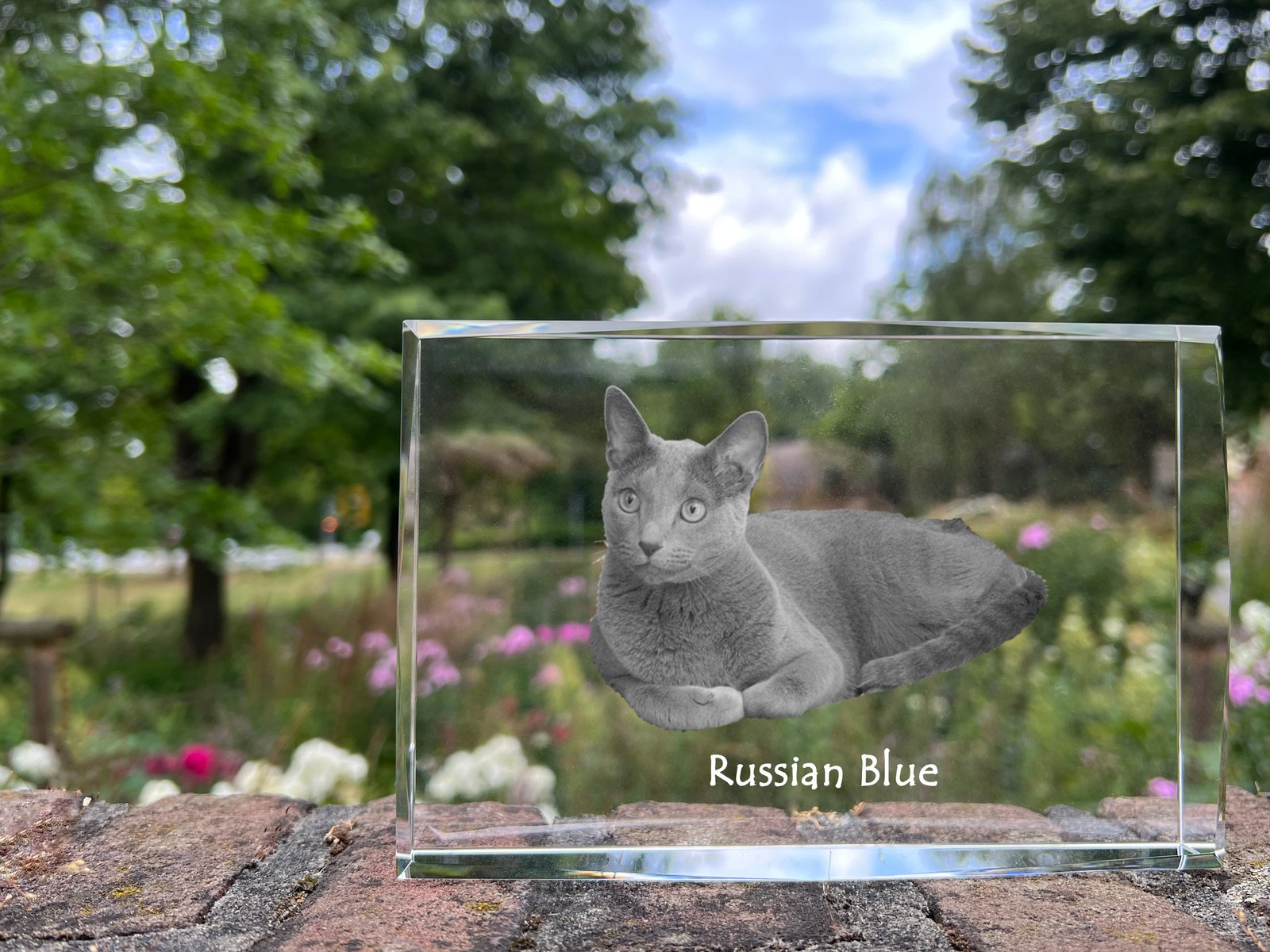 Rusų mėlynasis (Russian Blue) – Krištolo pakabukas su katės nuotrauka