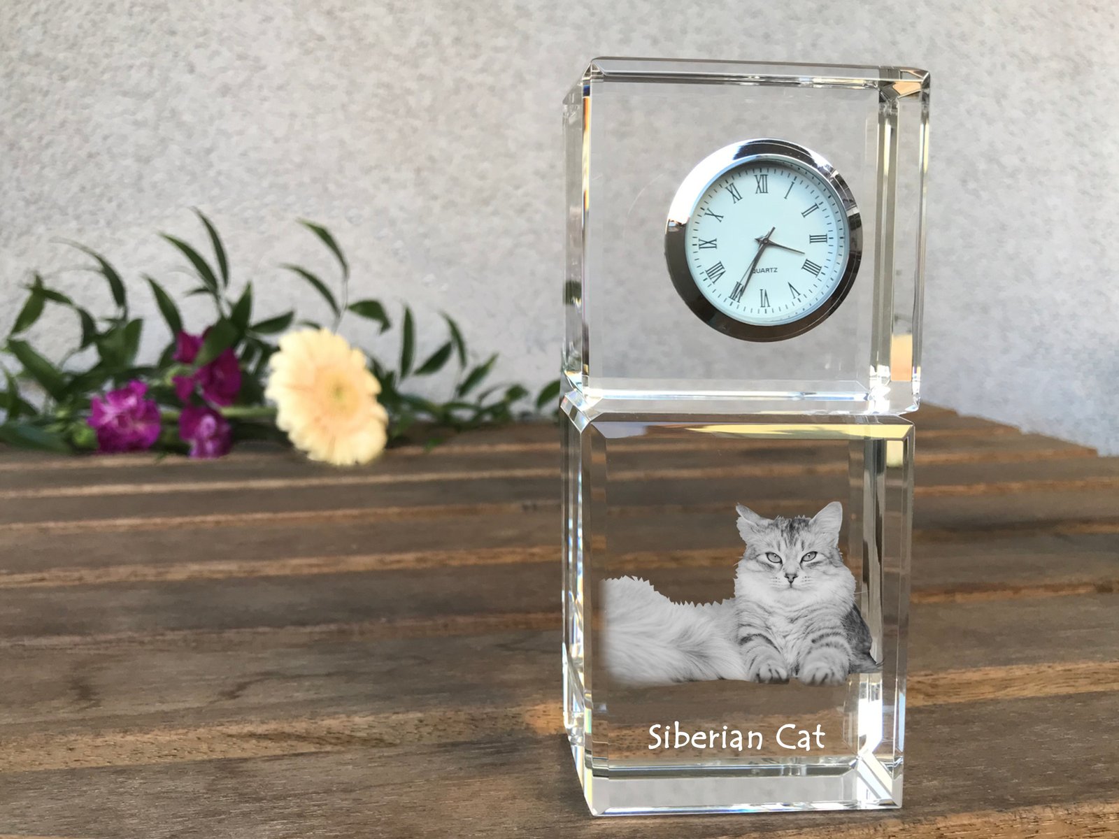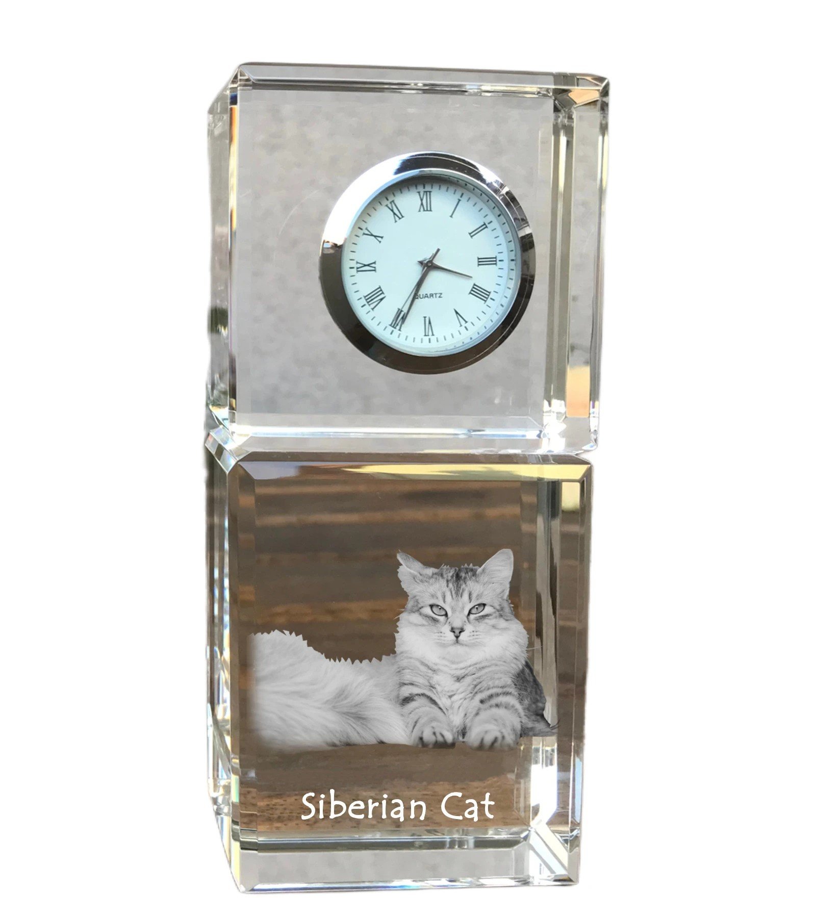 Sibiro katės (Siberian) – Krištolo laikrodis su katės nuotrauka