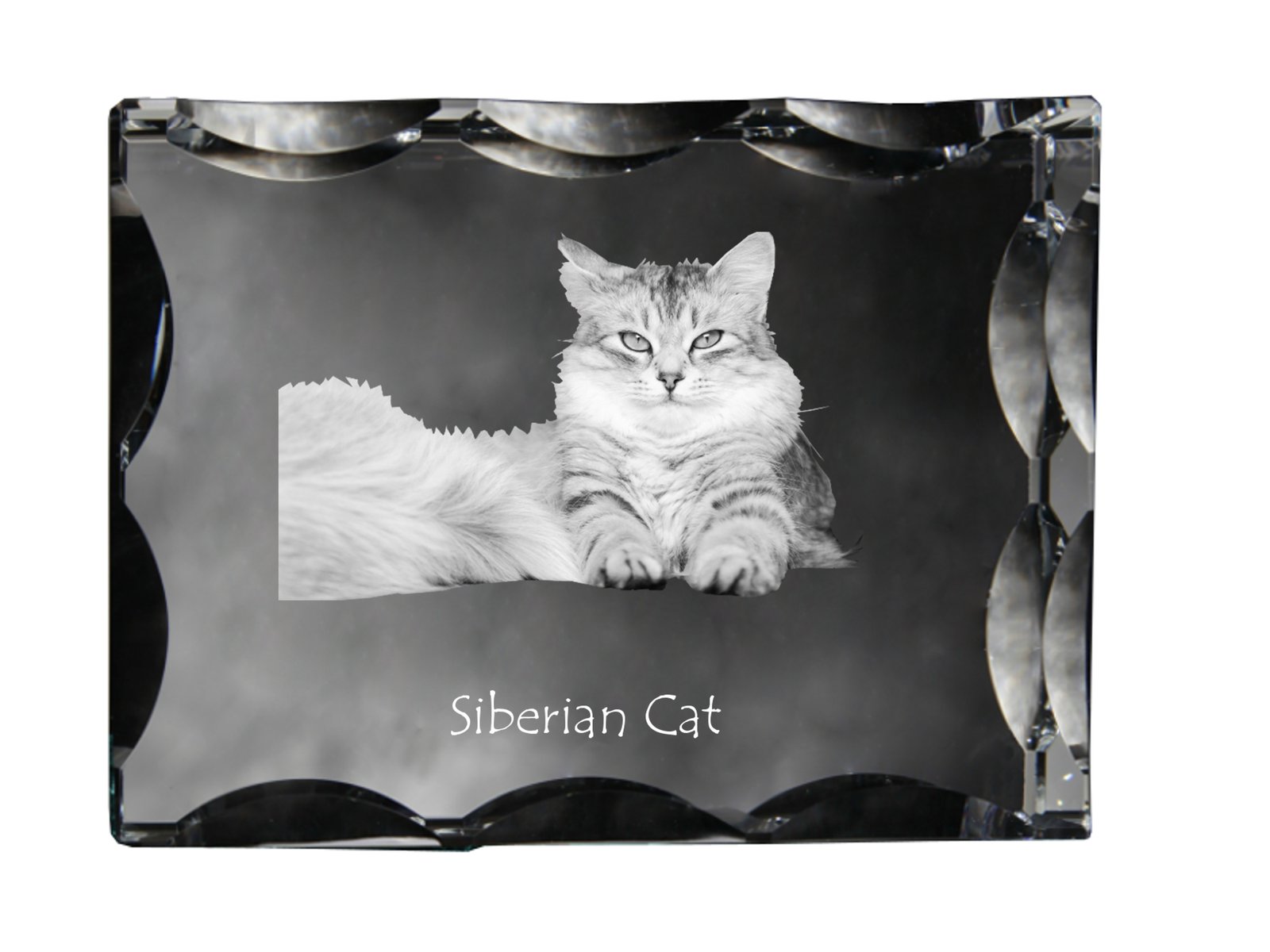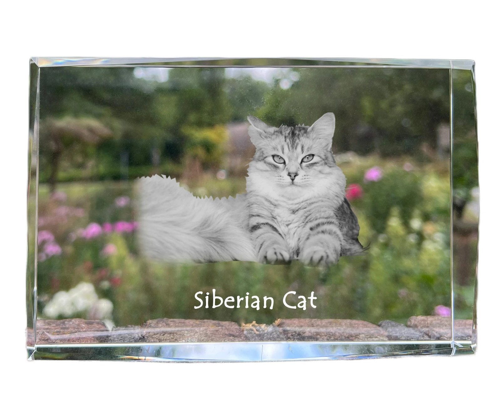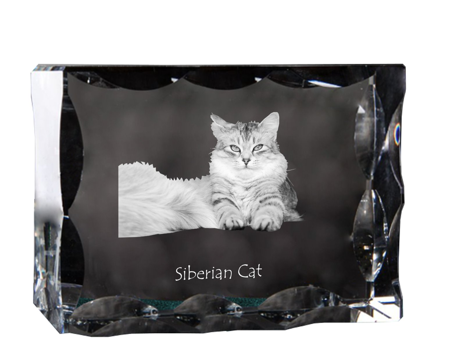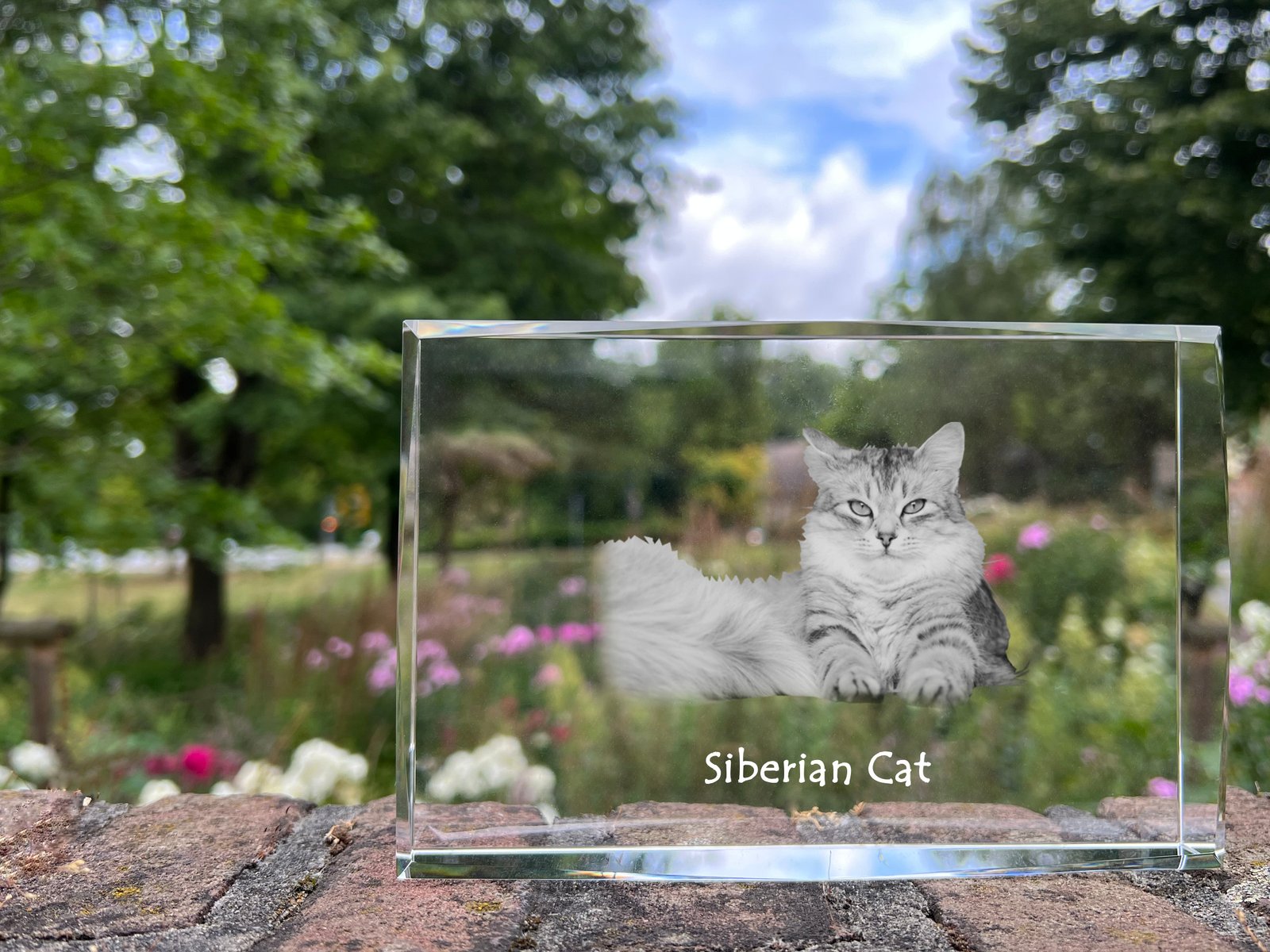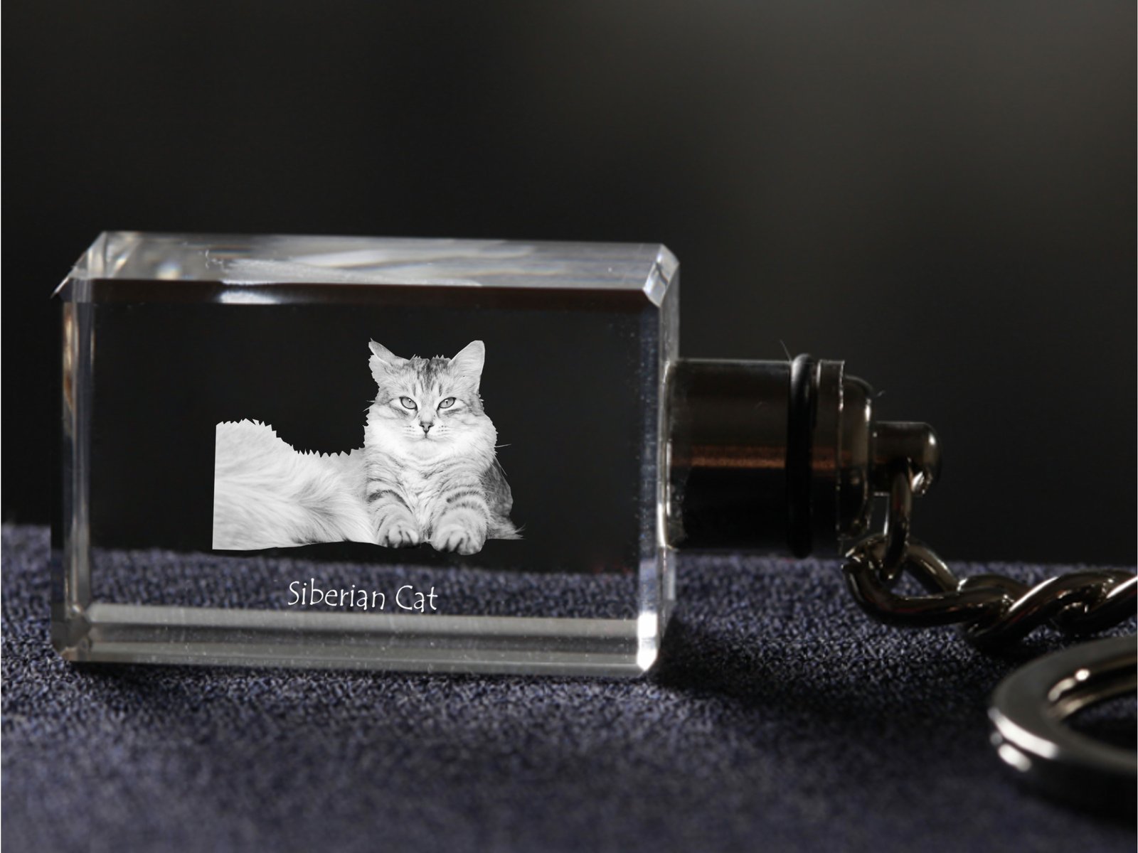 Sibiro katės (Siberian) – Krištolo pakabukas su katės nuotrauka