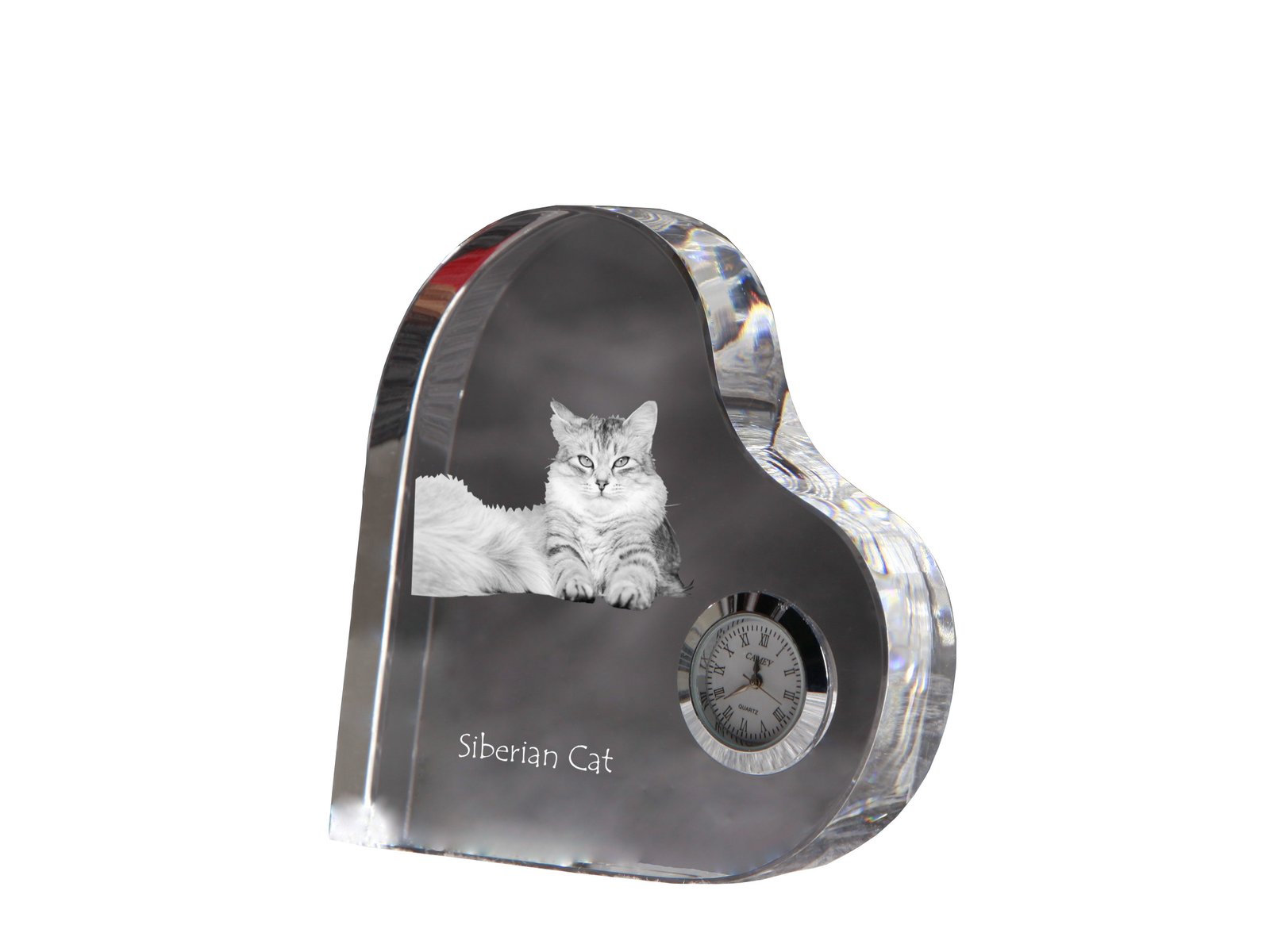 Sibiro katės (Siberian) – Krištolo laikrodis su nuotrauka