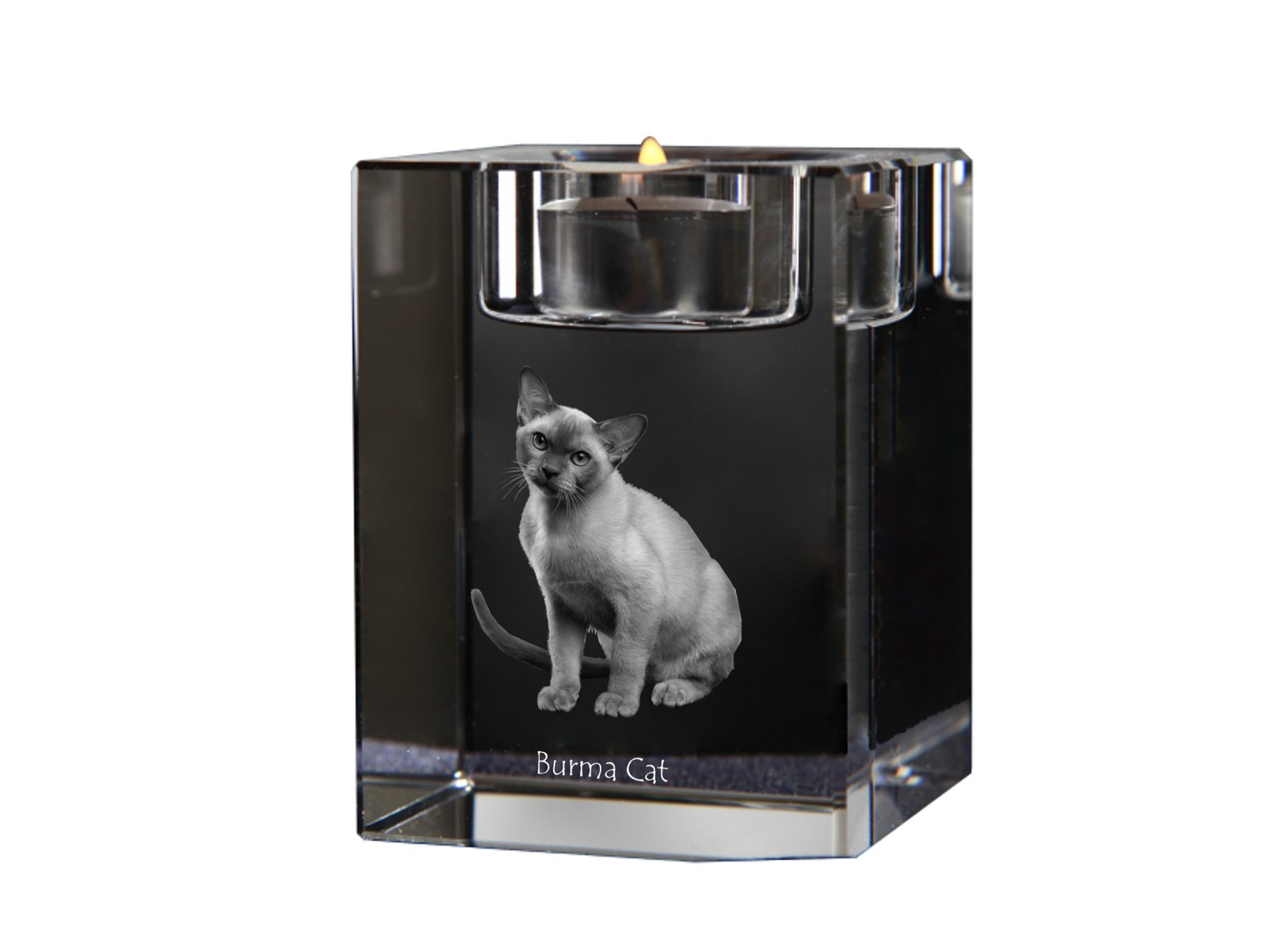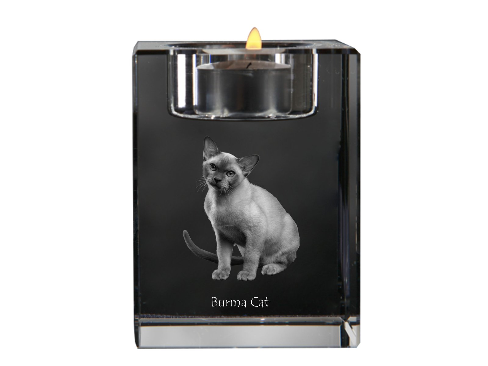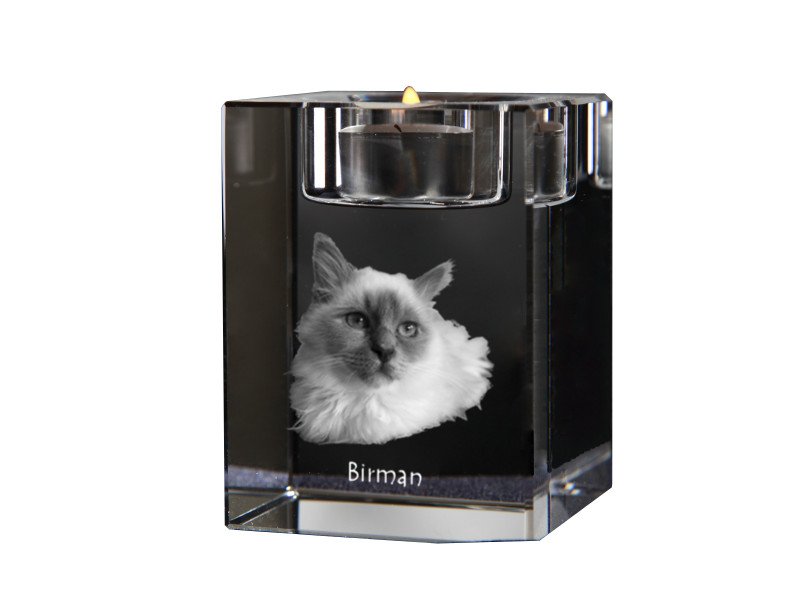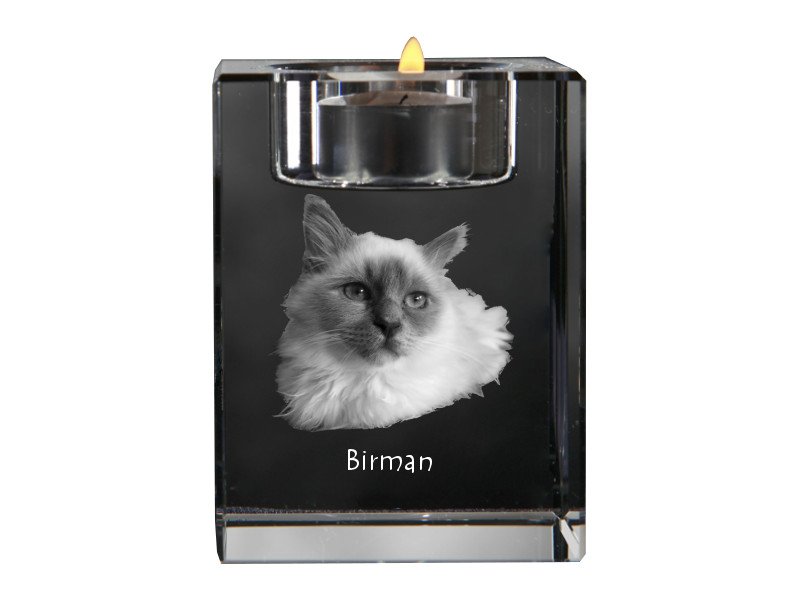 Birmos katės (Birman cat) – Žvakidė su katės nuotrauka