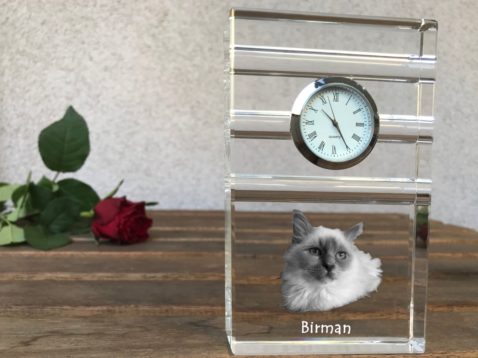 Birmos katės (Birman cat) – Stiklinis laikrodis su nuotrauka