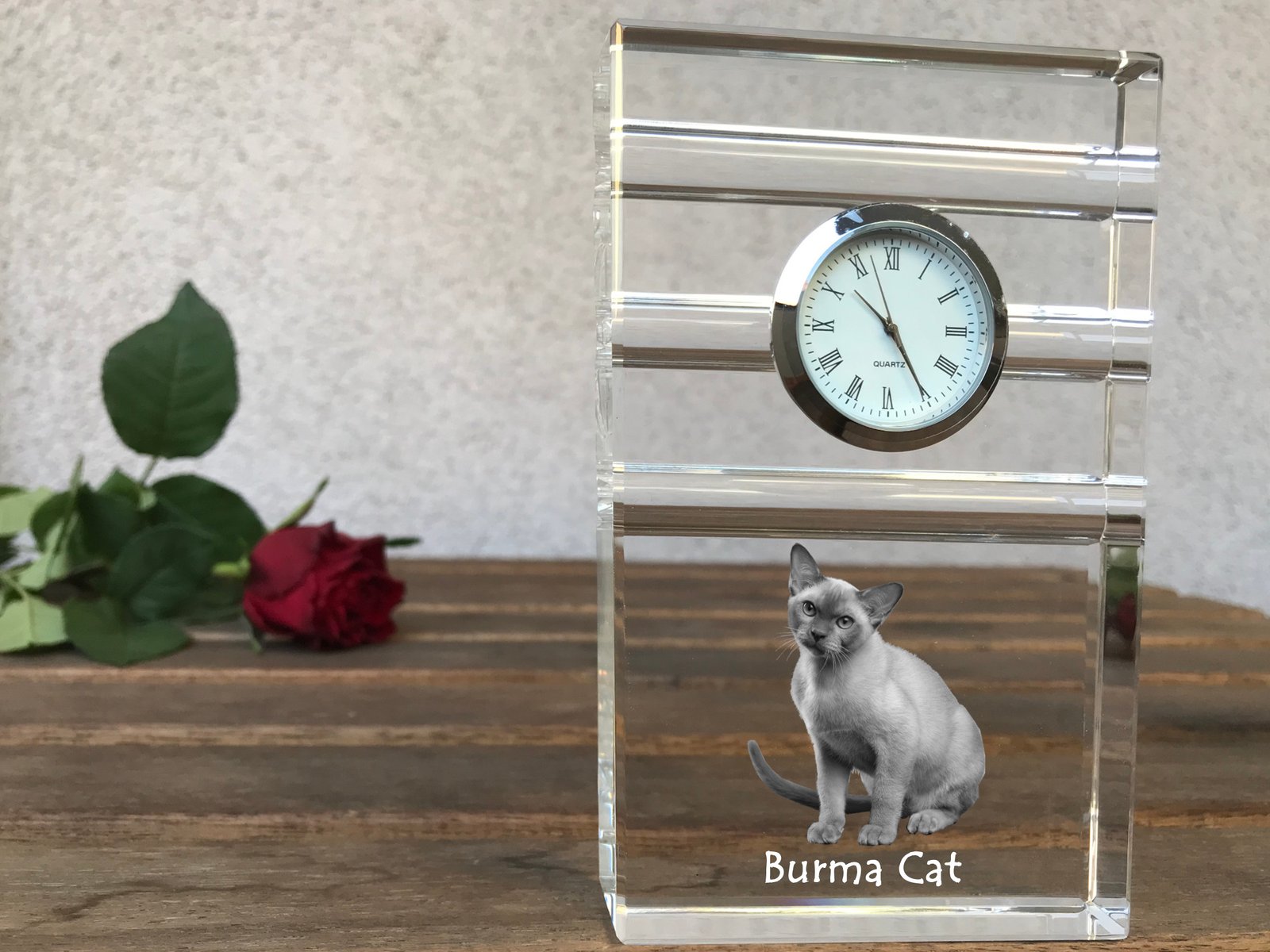 Bombėjaus katė (Bombay cat) – Krištolo laikrodis su katės nuotrauka
