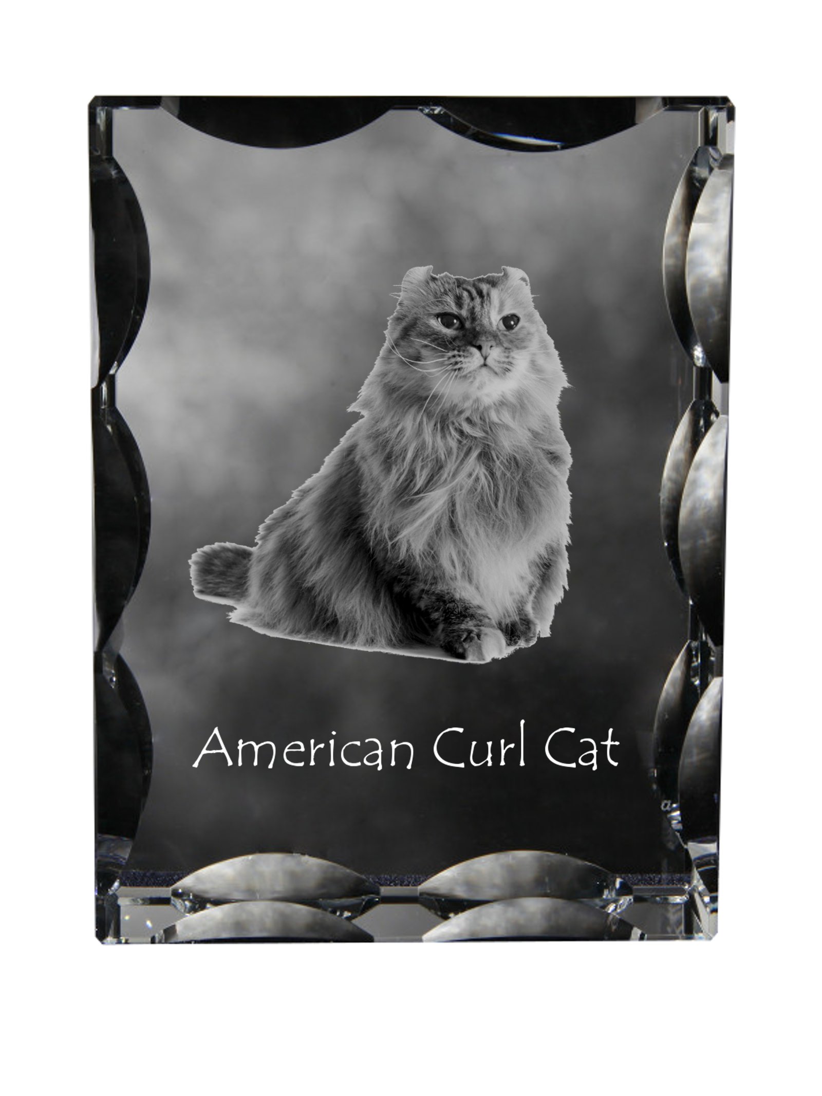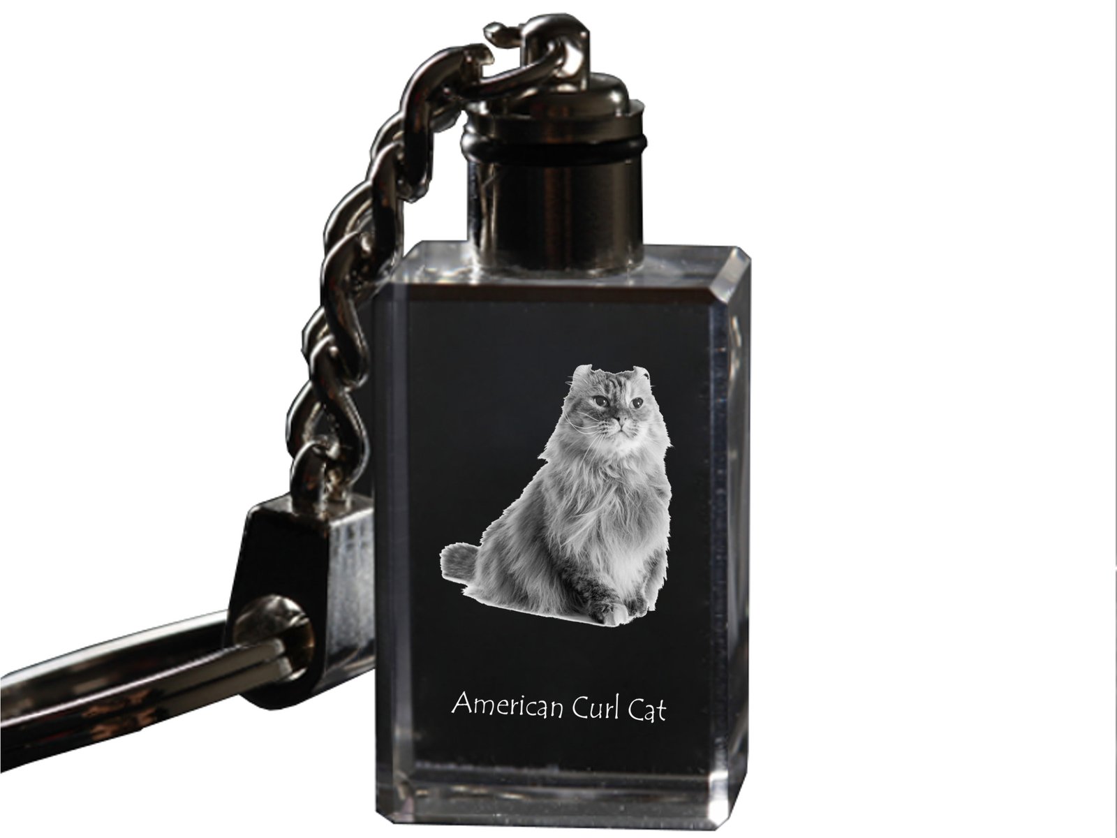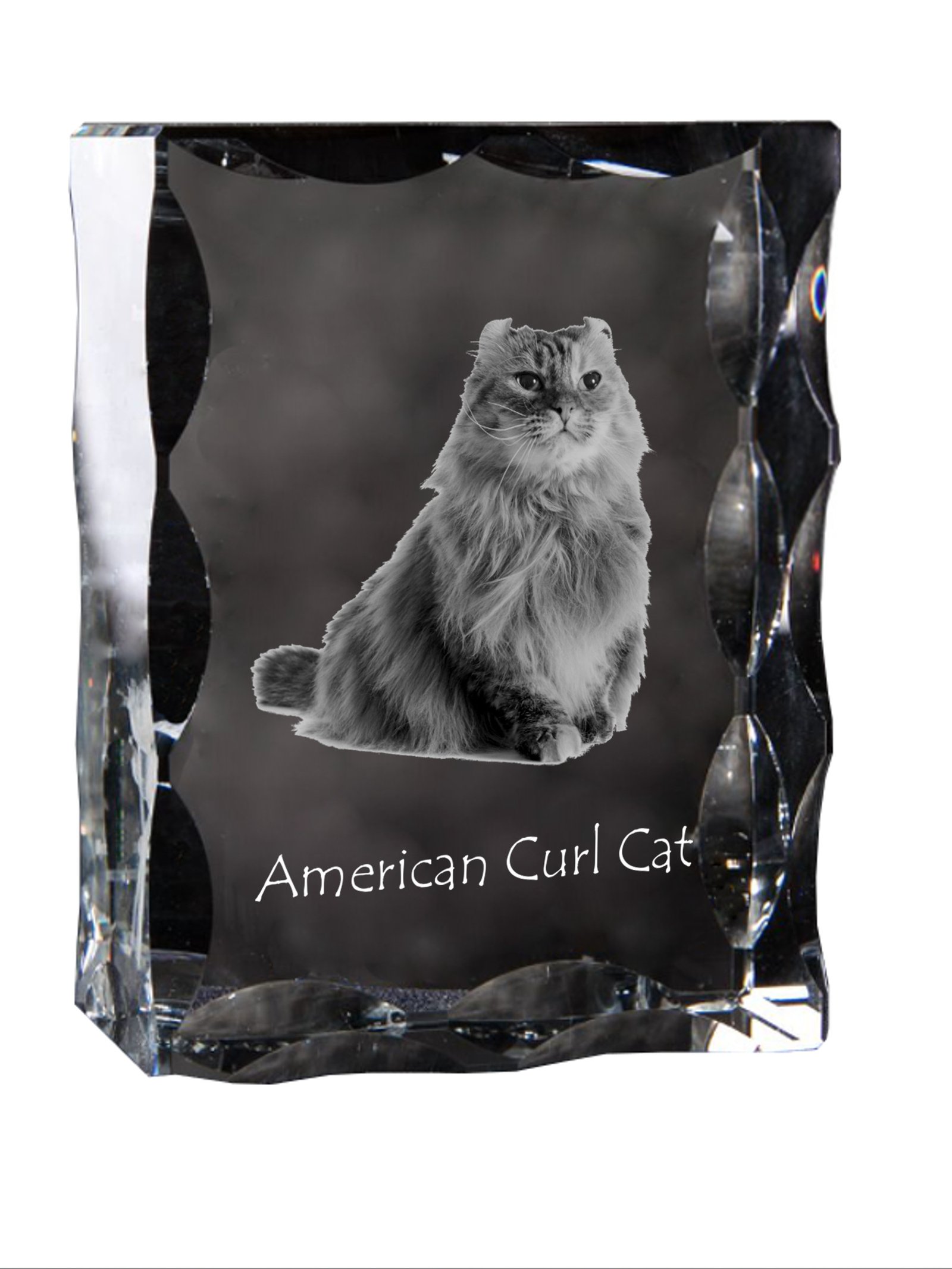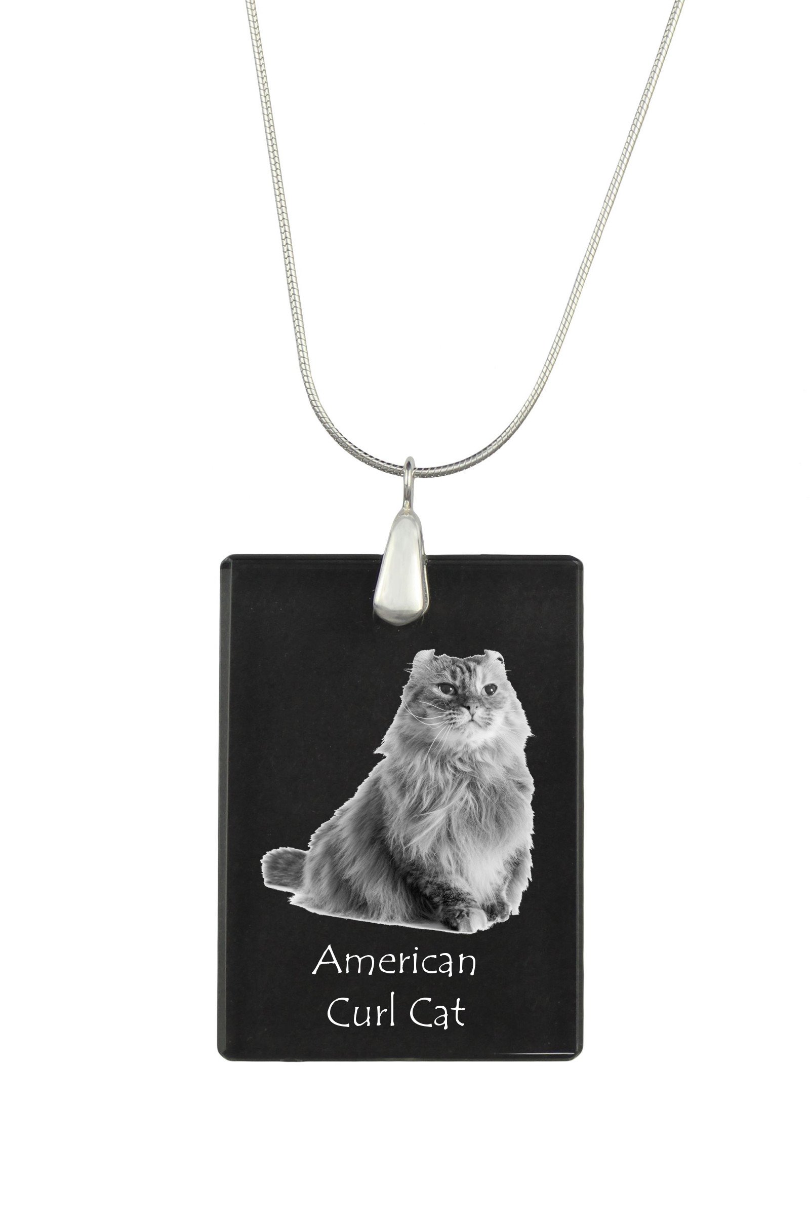Amerikos garbanė (American Curl) – Krištolo pakabukas su katės nuotrauka