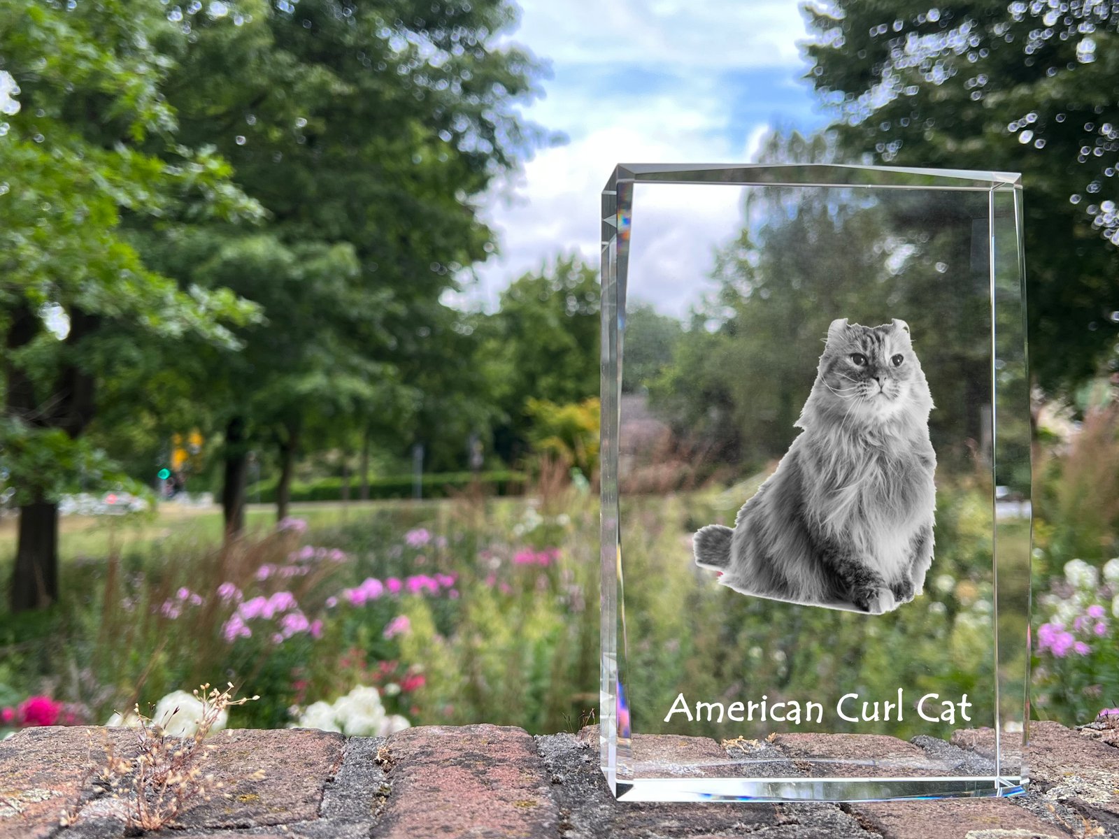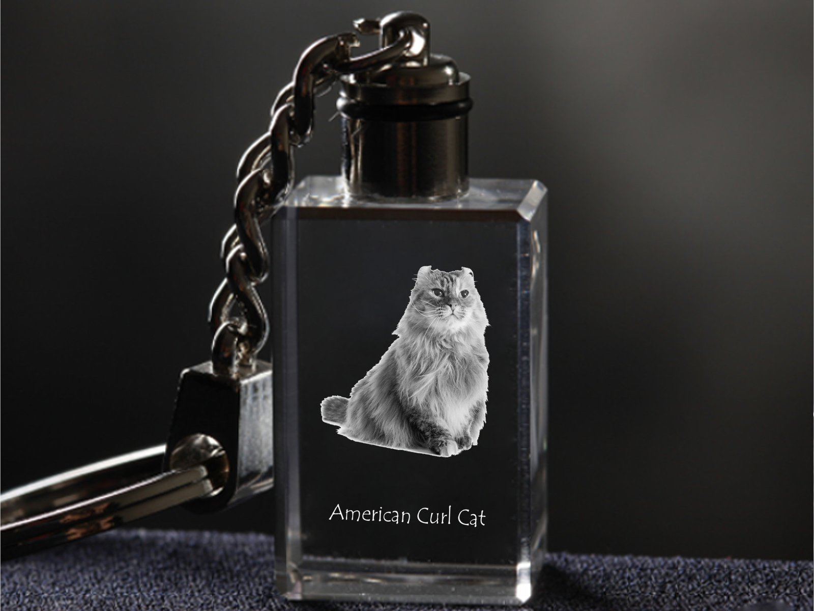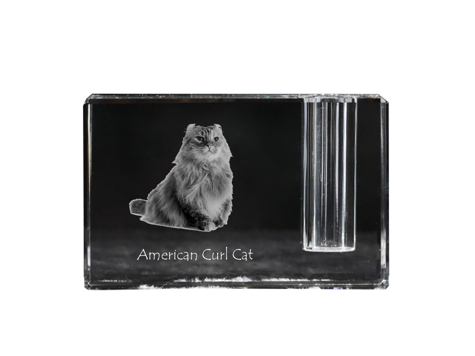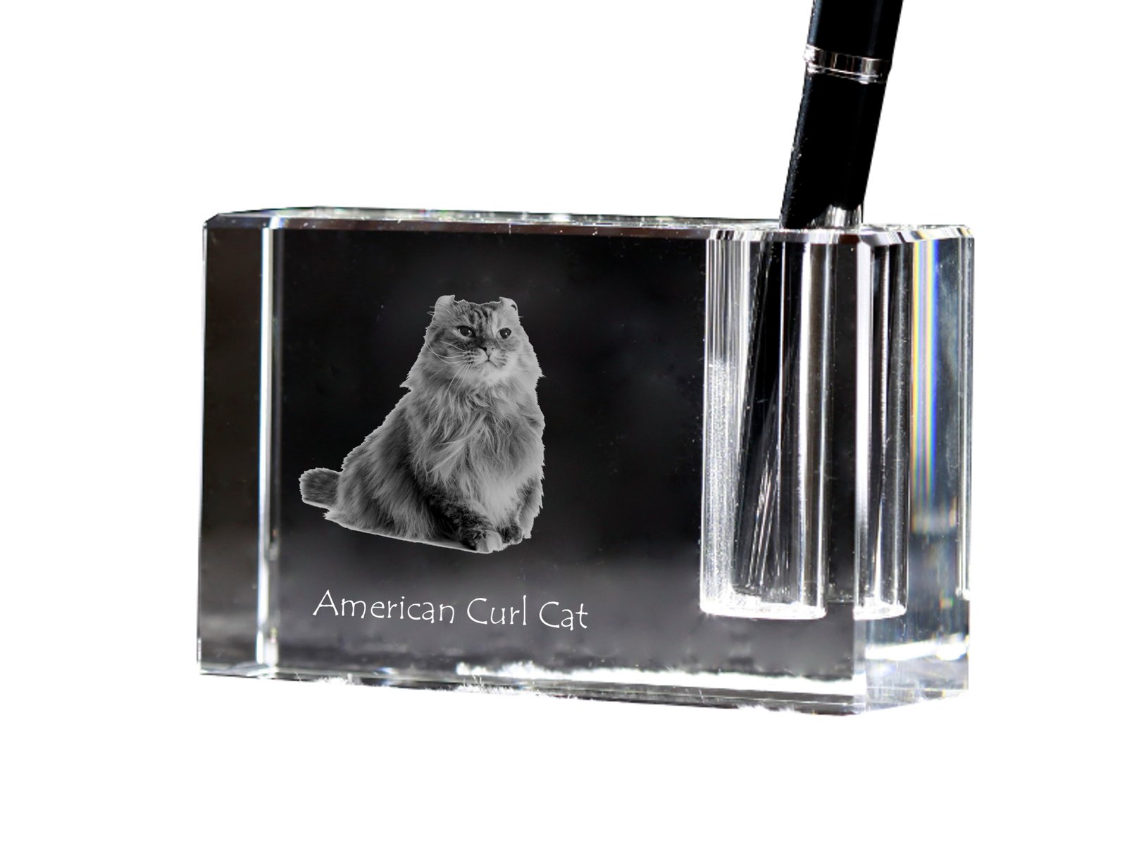 Amerikos garbanė (American Curl) – Krištolo pakabukas su katės nuotrauka