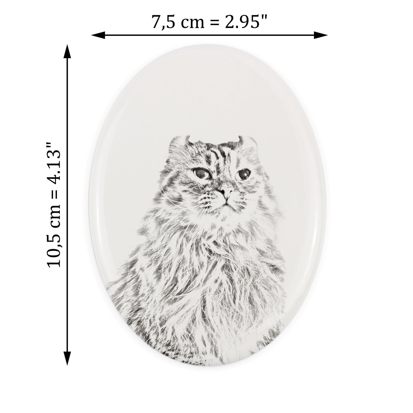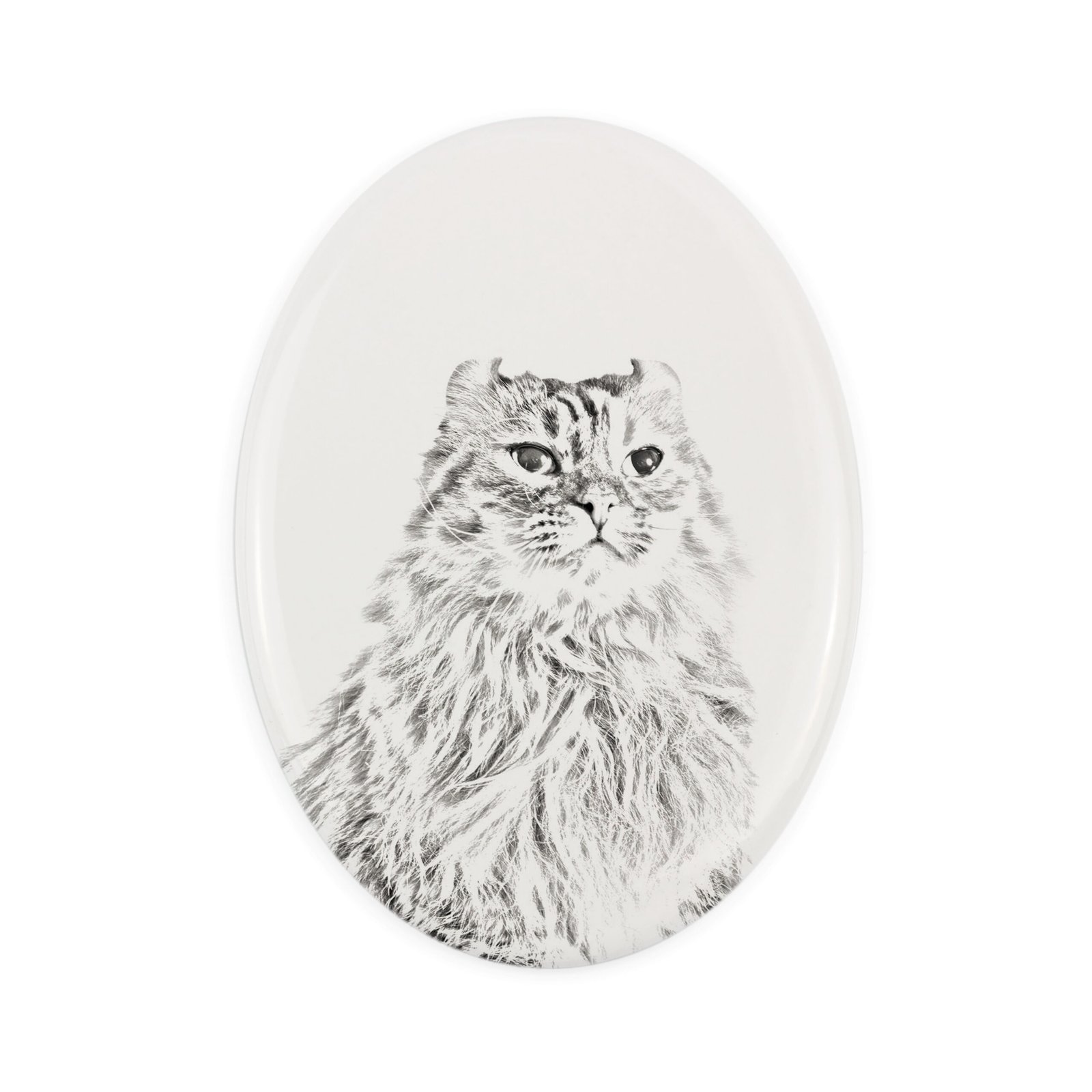 Amerikos garbanė (American Curl) – Atminimo lenta su katės nuotrauka