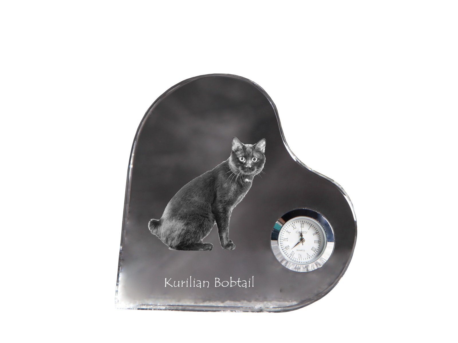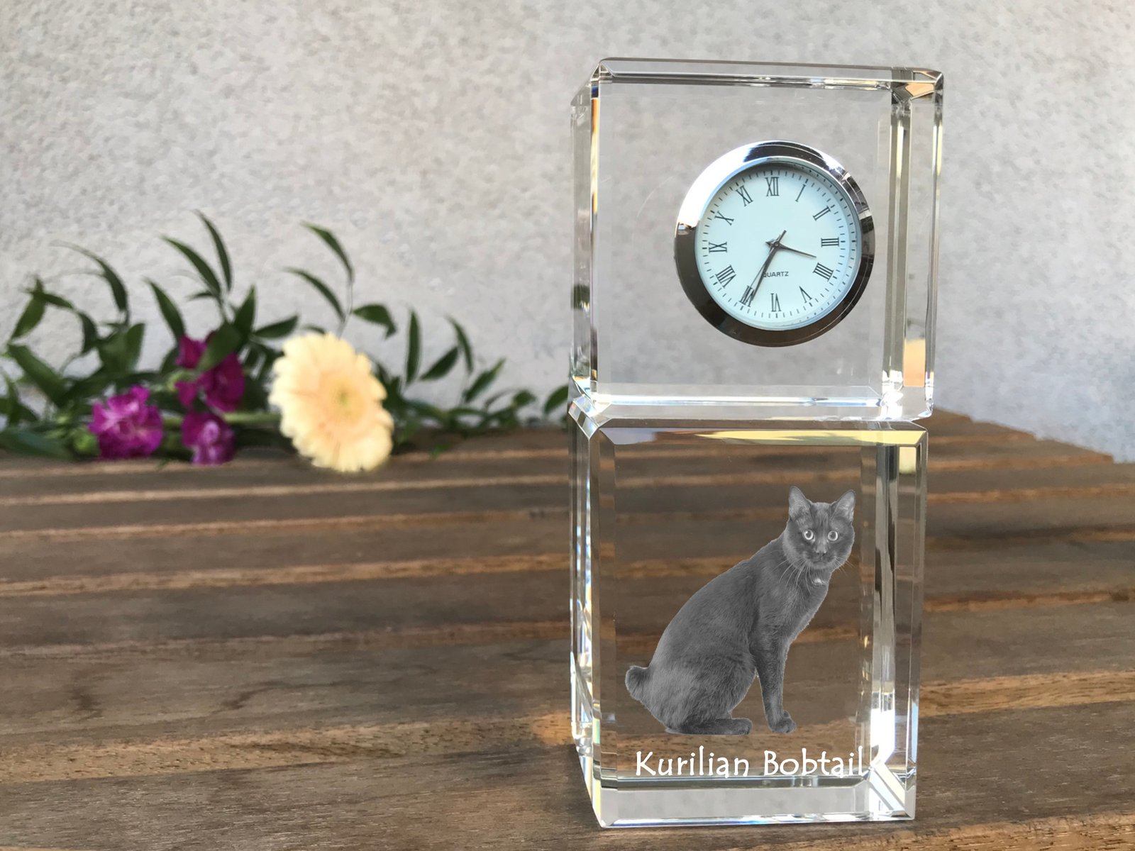 Kurilų Bobteilas (Old English Sheepdog) – Krištolo laikrodis su katės nuotrauka