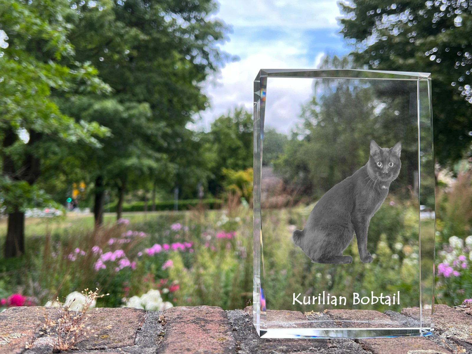 Kurilų Bobteilas (Old English Sheepdog) – Krištolo pakabukas su katės nuotrauka
