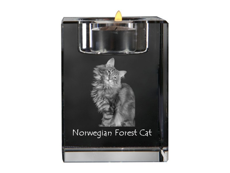 Norvegų miškinė katė (Norwegian Forest Cat) – Žvakidė su katės nuotrauka