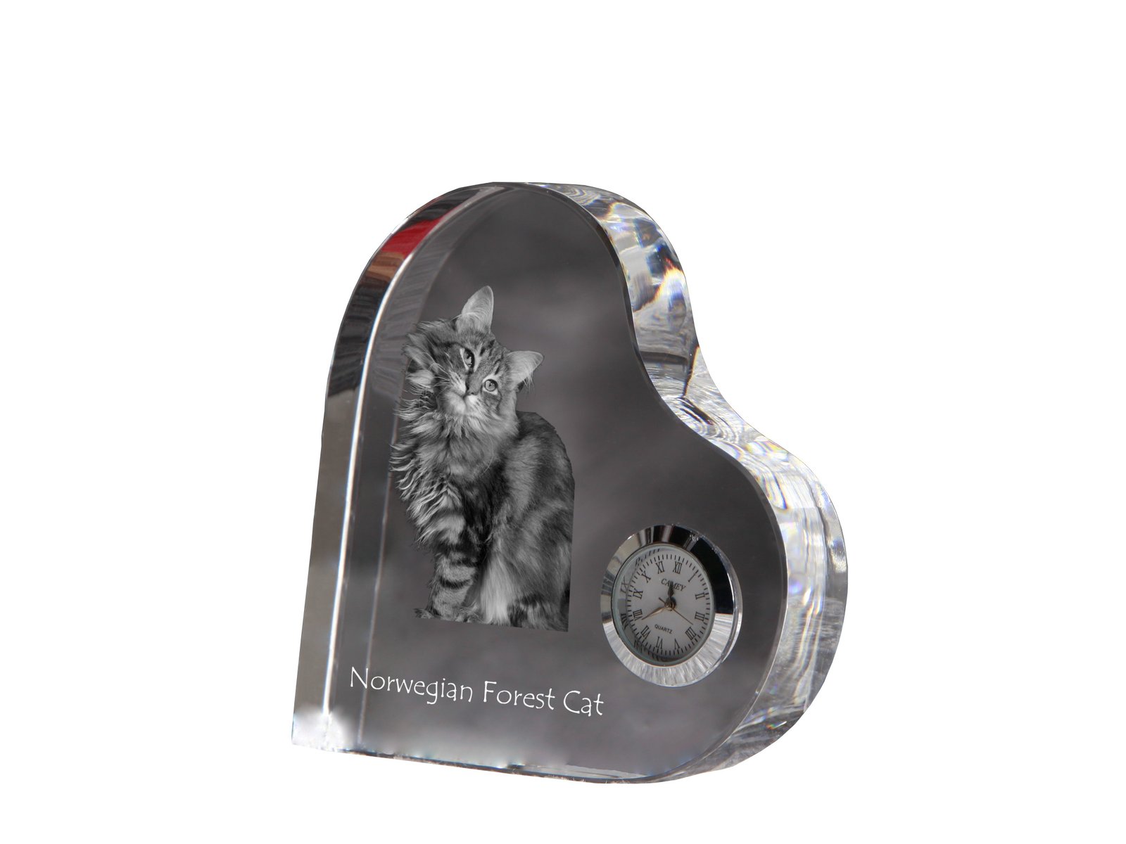 Norvegų miškinė katė (Norwegian Forest Cat) – Krištolo laikrodis su nuotrauka