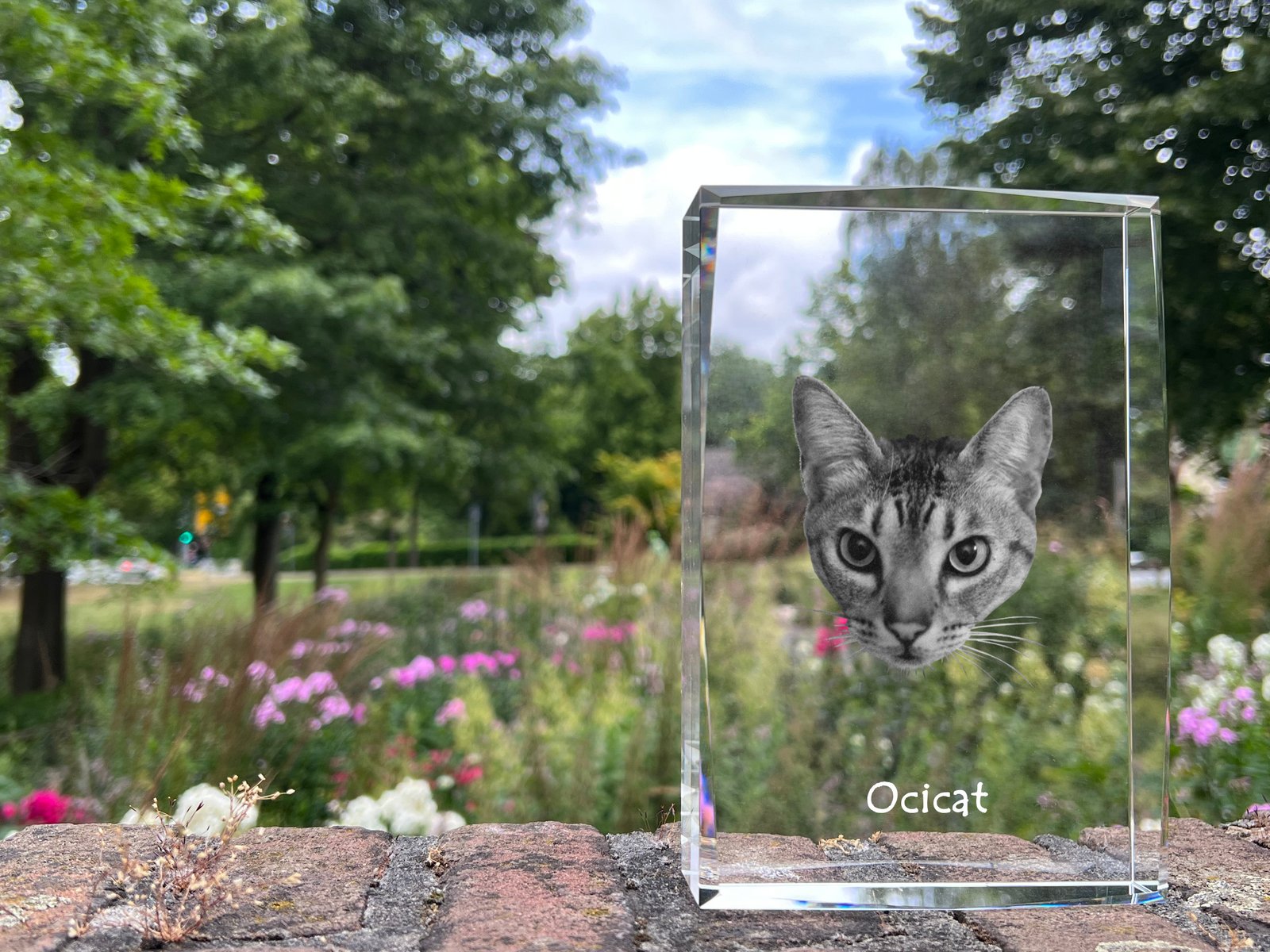 Oksikat katės (Ocicat) – Krištolo pakabukas su katės nuotrauka
