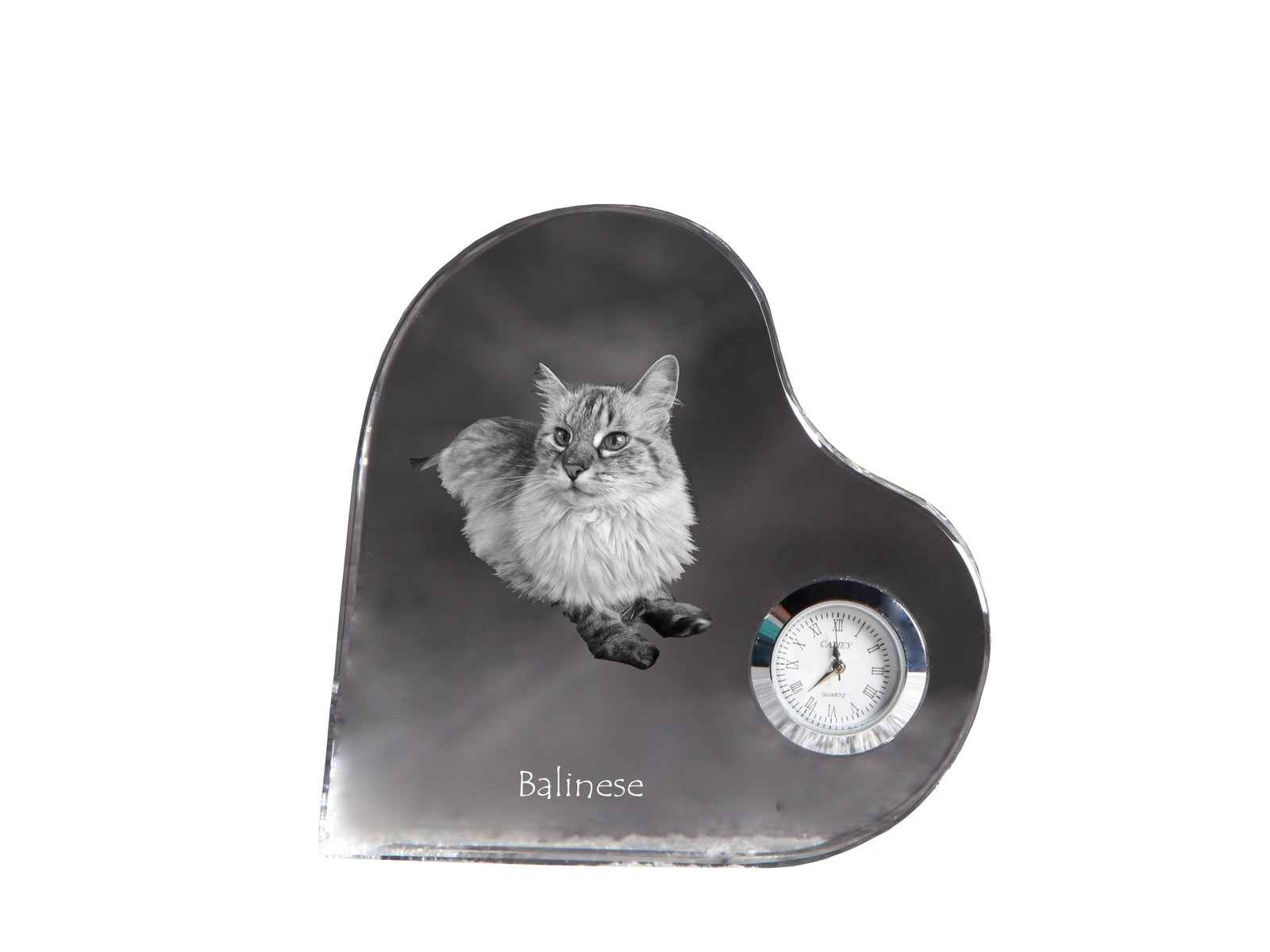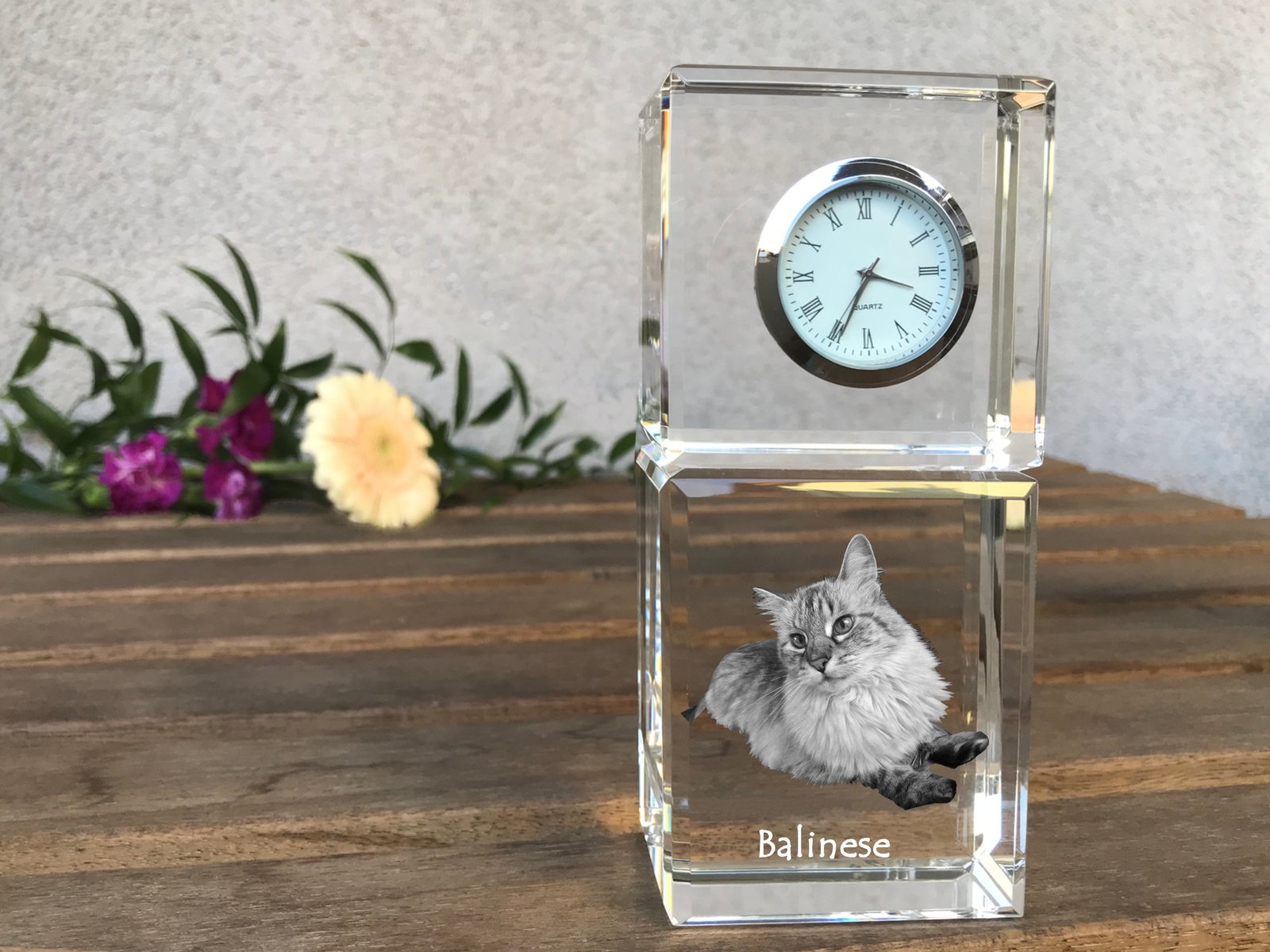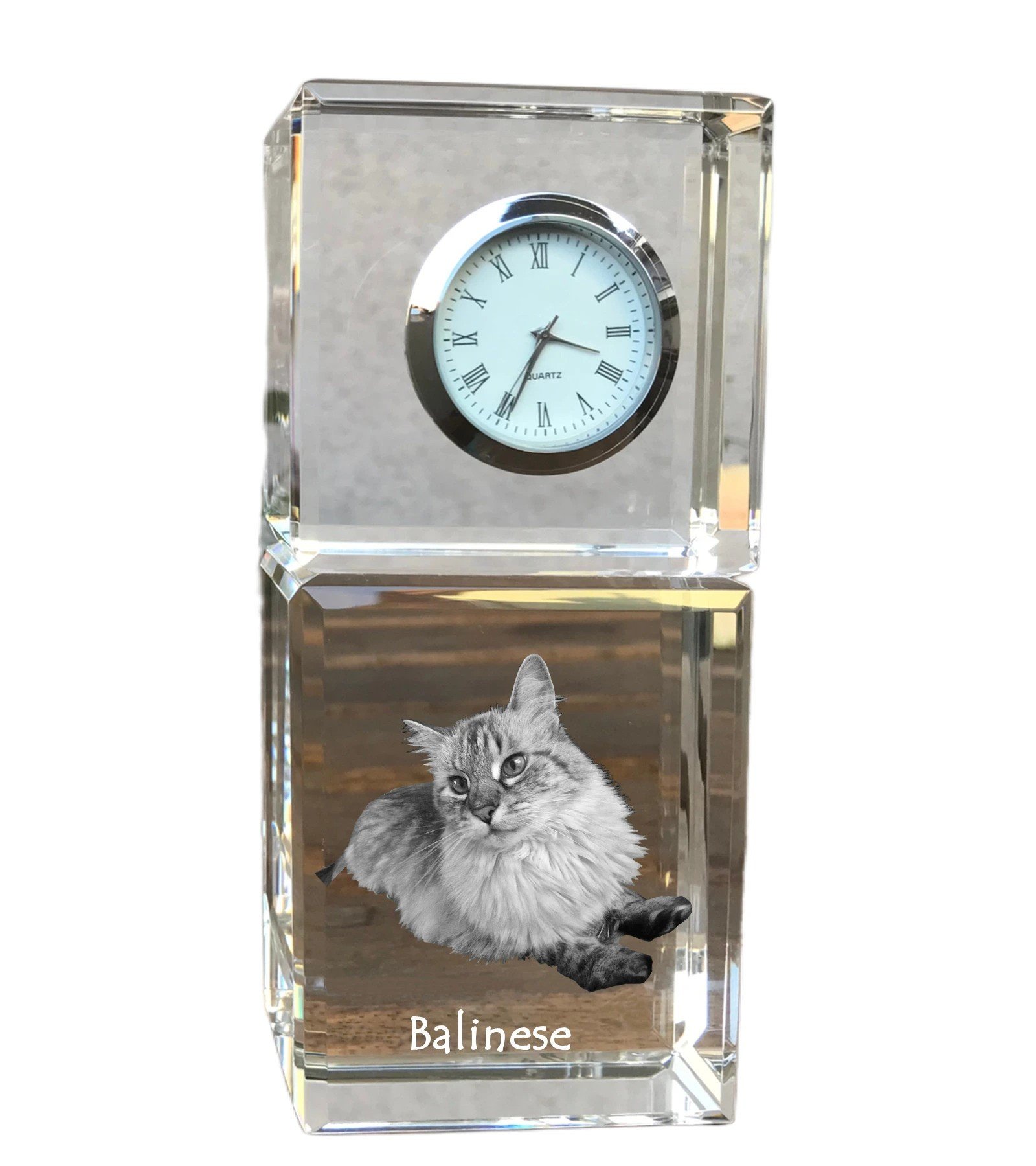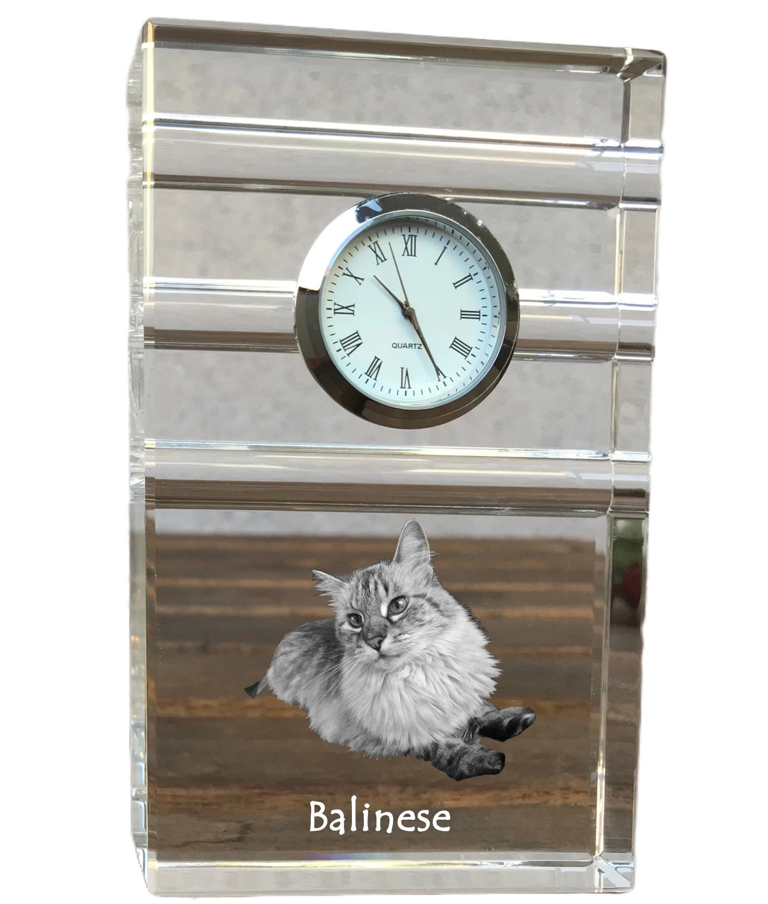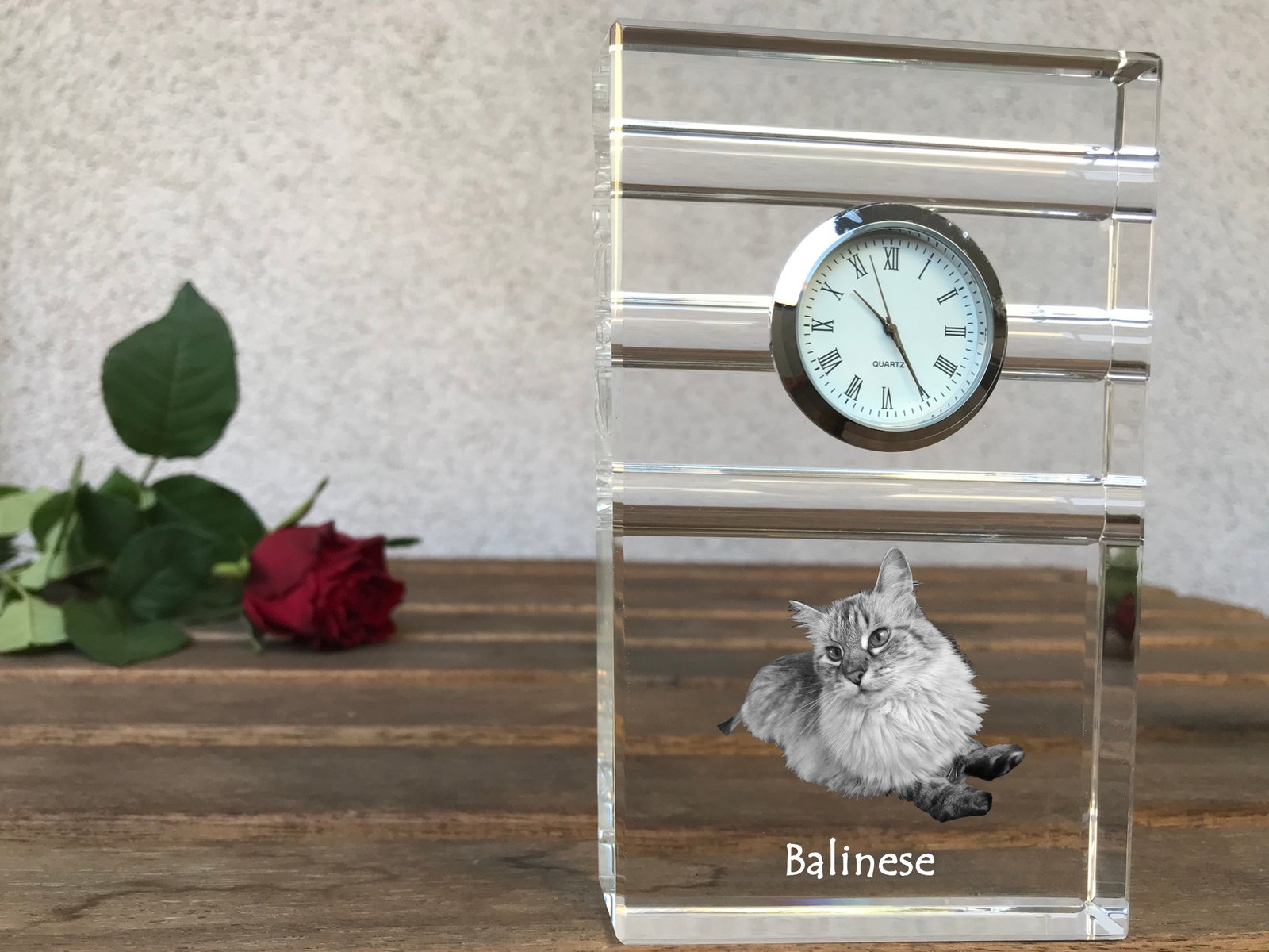 Balio katės (Balinese cat) – Krištolo laikrodis su nuotrauka