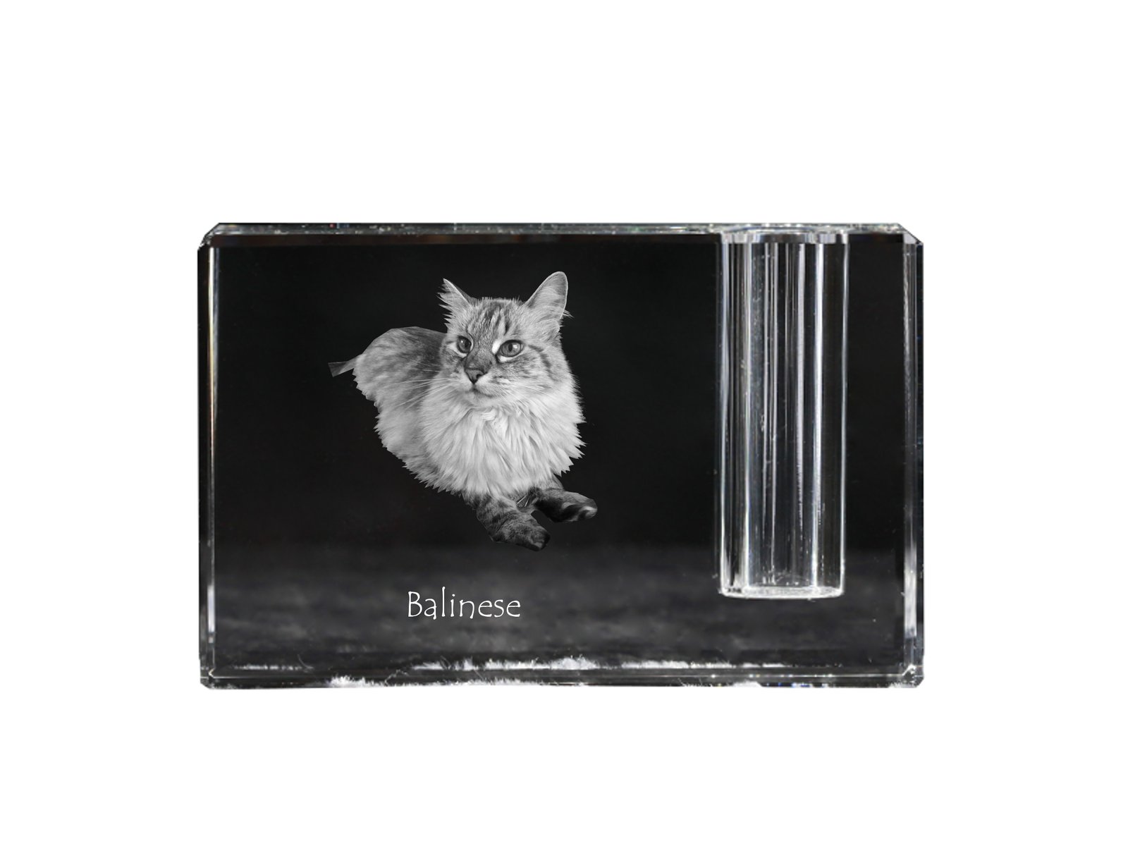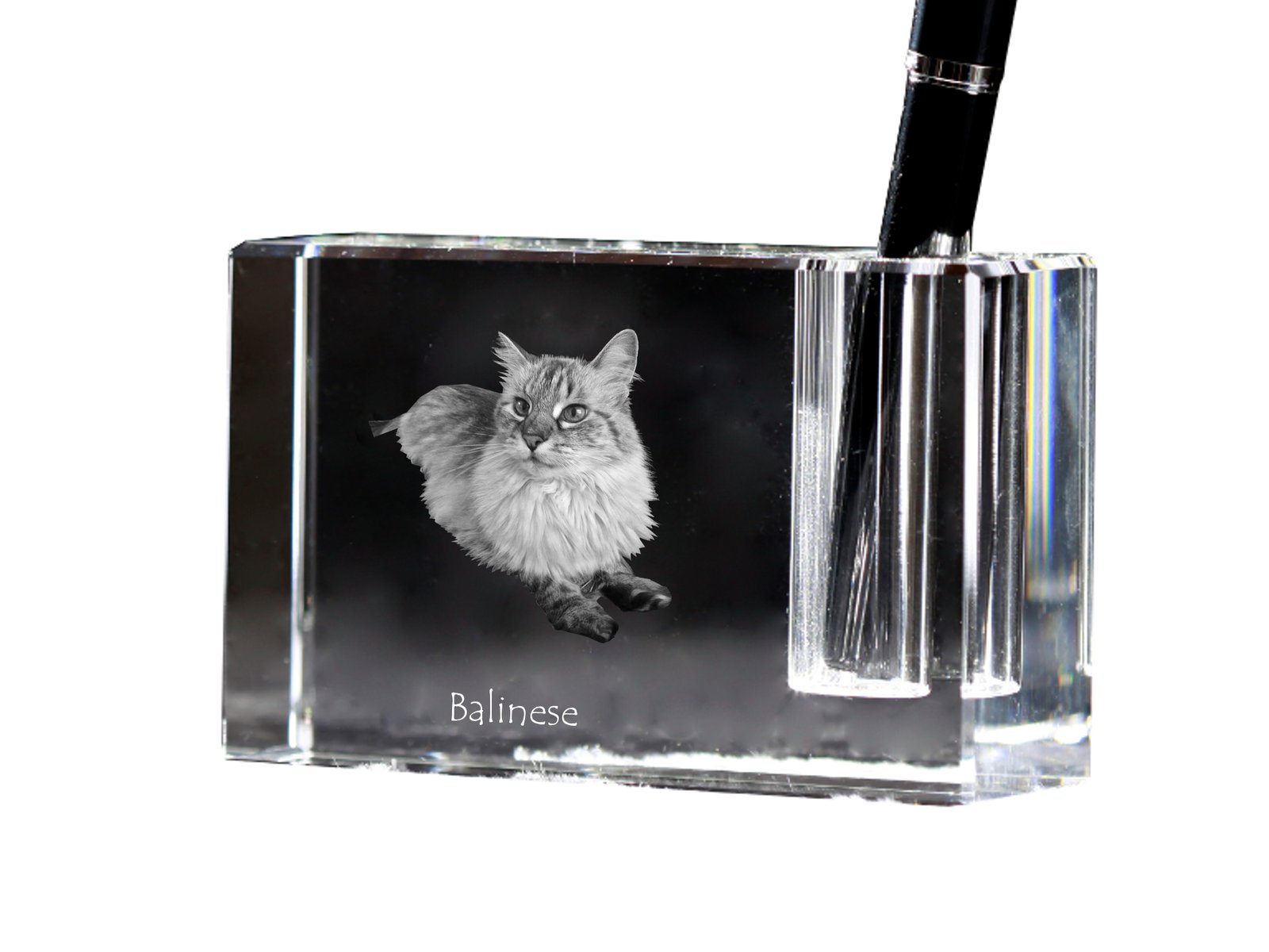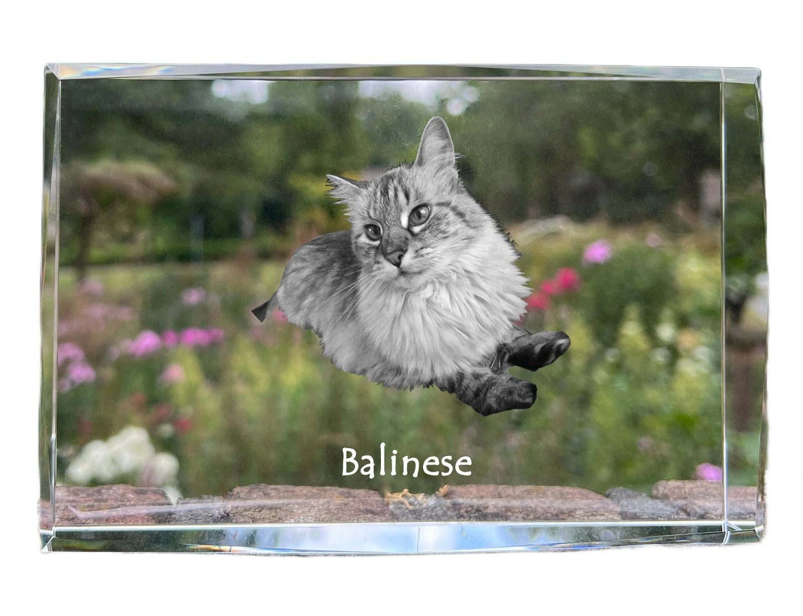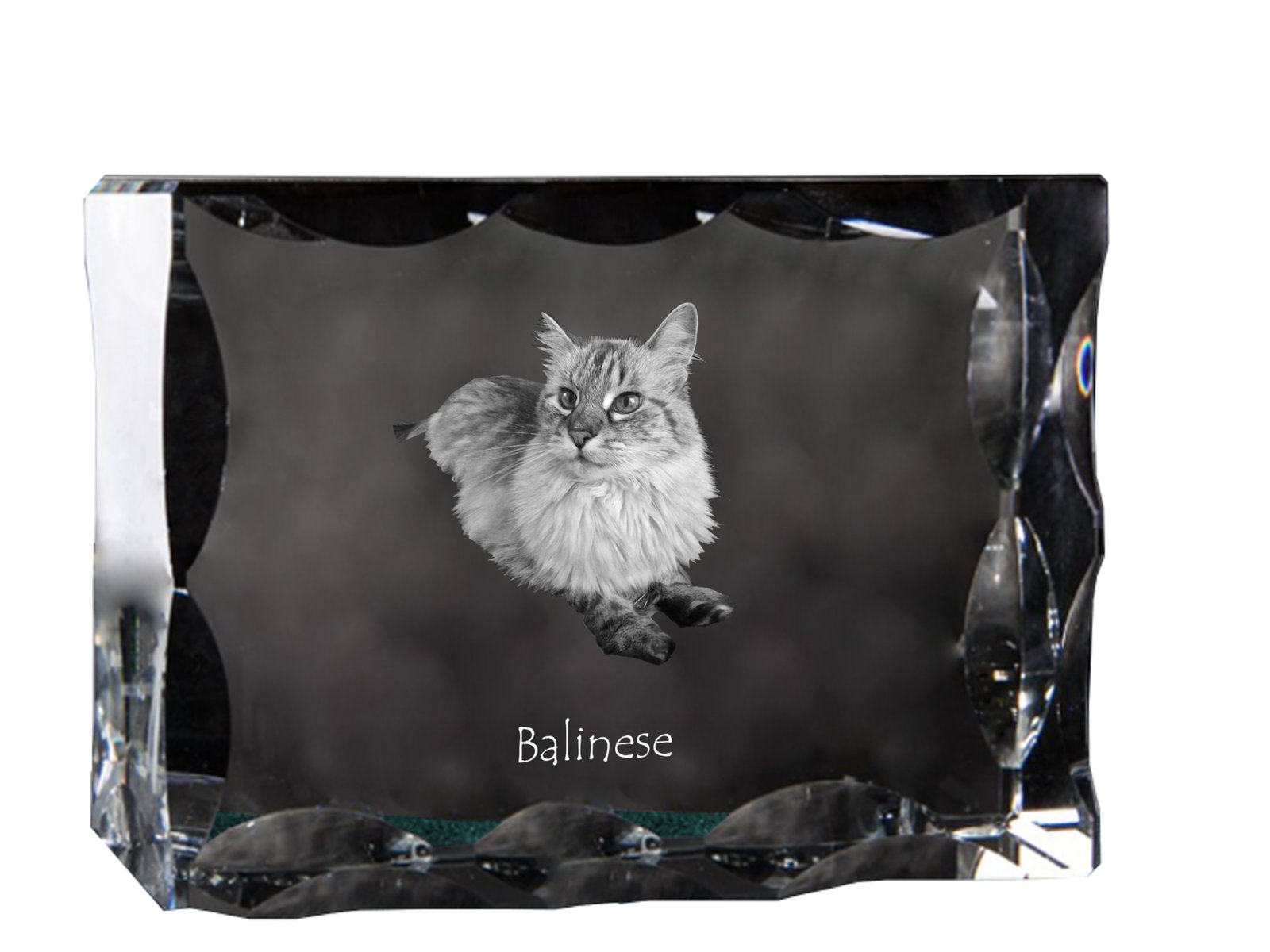 Balio katės (Balinese cat) – Krištolas su katės nuotrauka