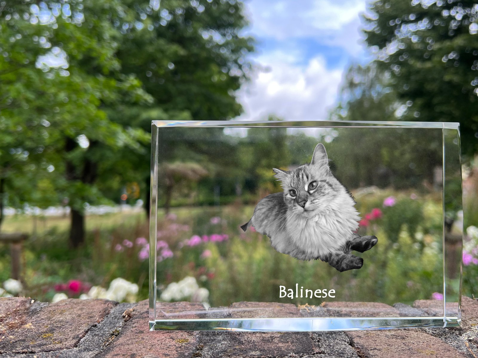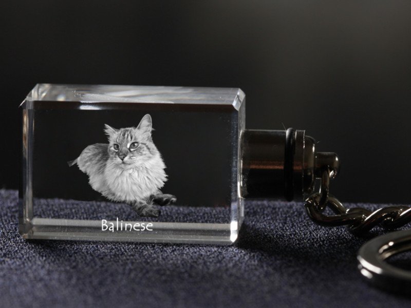 Balio katės (Balinese cat) – Krištolo pakabukas su katės nuotrauka