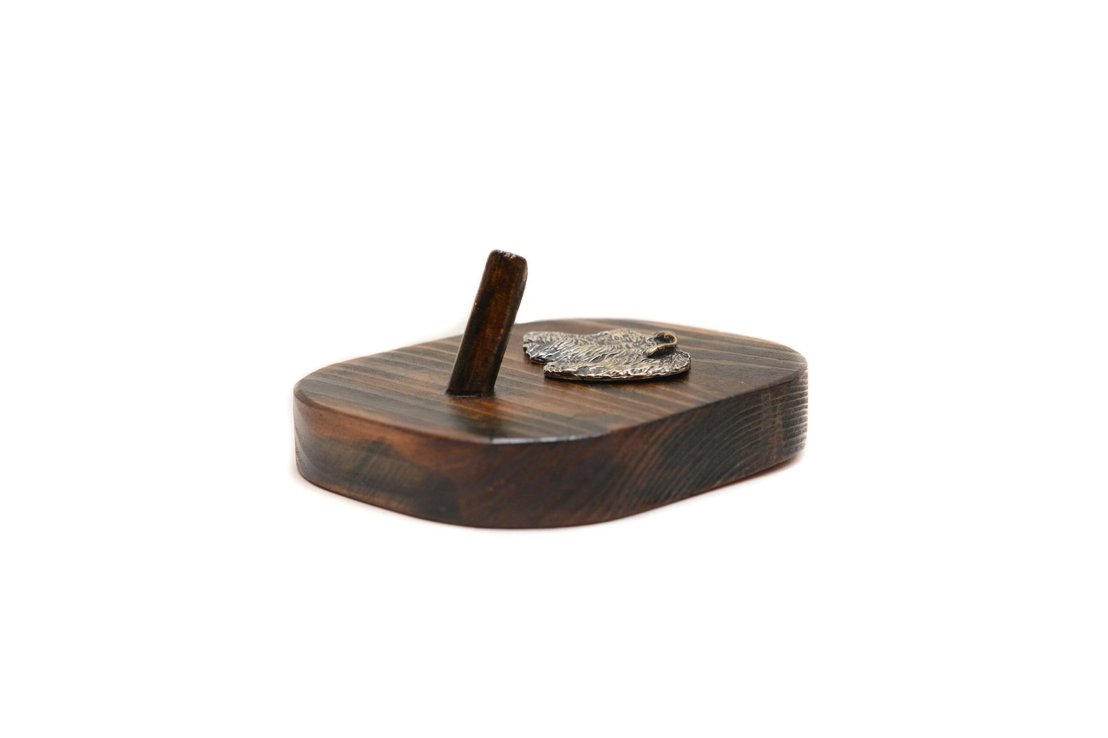 Pristatome išskirtinį medinį šunų tema kabliuką – rankų darbo ir unikalų dekoratyvinį elementą, kuris pridės elegancijos ir praktiškumo jūsų interjerui. Pagamintas iš pušies medžio, kabliukas papuoštas sidabruotu šunų reljefu, išsiskiriančiu tikslumu ir meistriškumu. Jis gali būti naudojamas kaip įprastas drabužių kabliukas, puikiai tinka šunų pavadėliams ir aksesuarams, taip pat parodų laimėtiems medaliams ar raktams. Jo universalumas ir elegantiškas dizainas padaro jį puikiu dovanų pasirinkimu kiekvienam šunų mylėtojui!