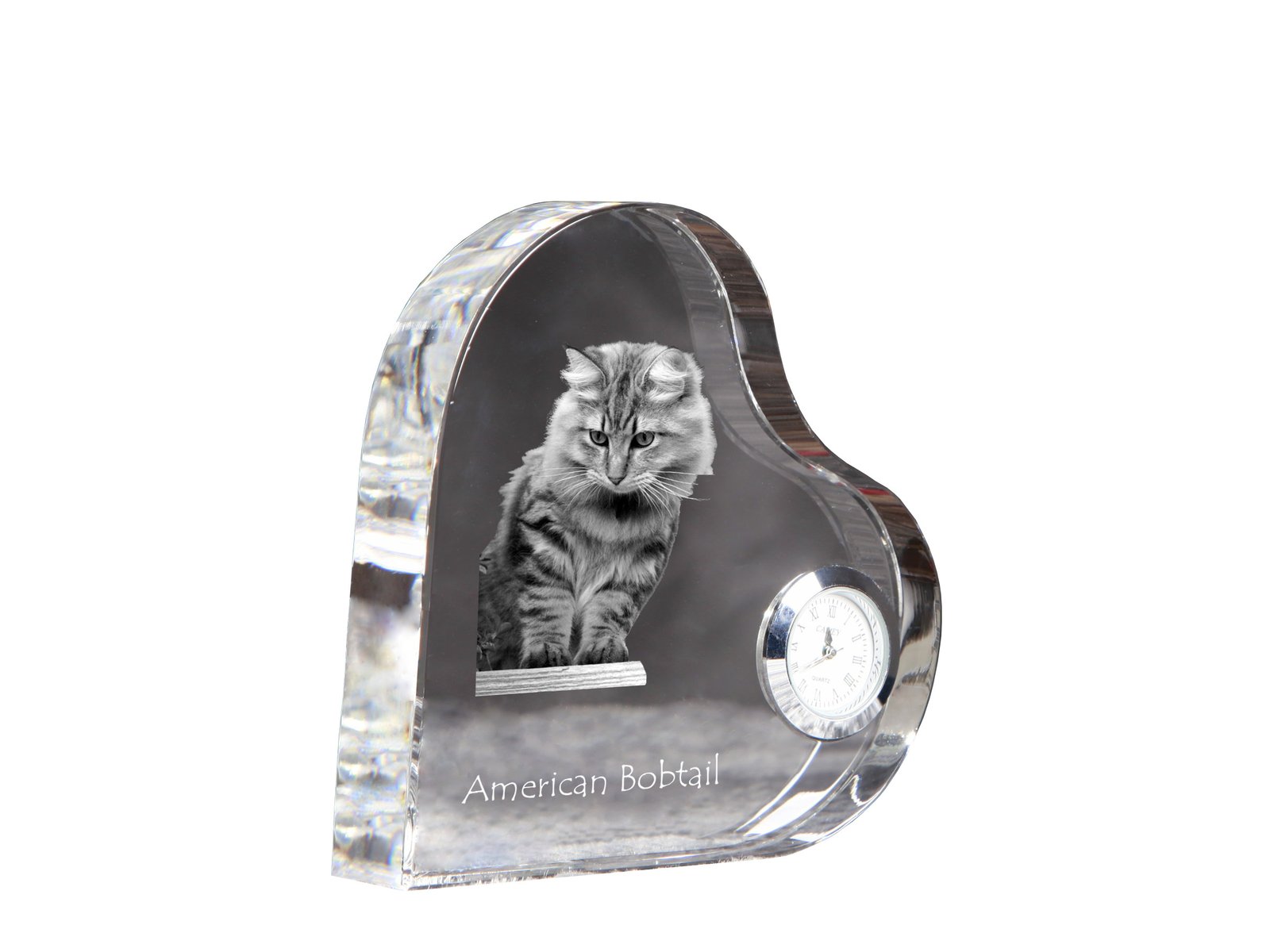 Pradžia Katėms Amerikiečių Bobteilas (Old English Sheepdog) – Krištolo laikrodis su katės nuotrauka