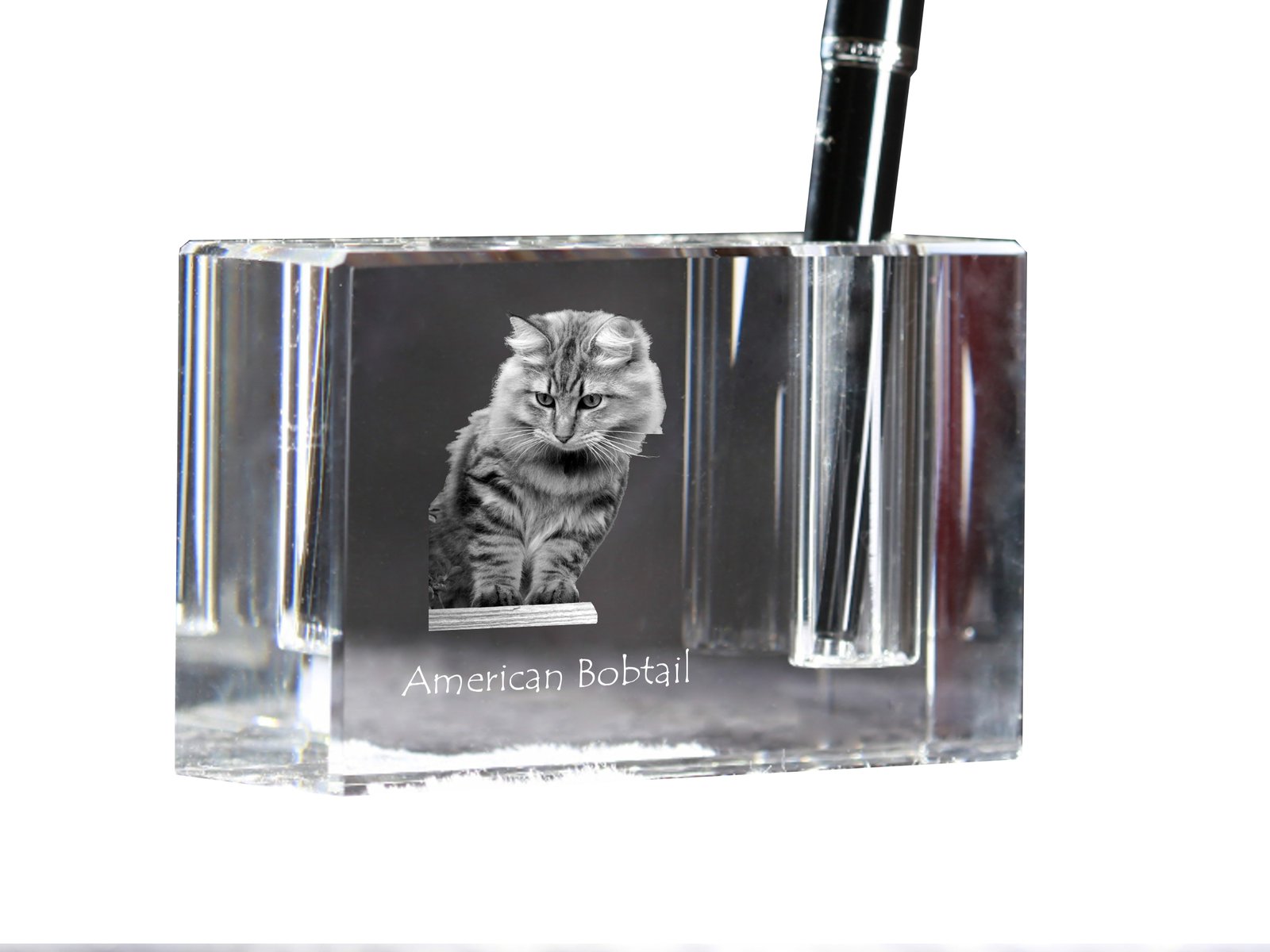 Šis elegantiškas rašiklių stovas yra unikalus rašomojo stalo aksesuaras, pagamintas iš aukštos kokybės krištolo. Papuoštas žavingu augintinio paveikslėliu, jis traukia akį ir suteikia asmeniškumo bet kuriai darbo vietai. Stovas turi vieną rašiklio lizdą, todėl idealiai tinka vertinantiems tvarką ir minimalizmą. Be to, yra galimybė jį personalizuoti su savo augintinio nuotrauka, todėl tai puiki dovana įvairiomis progomis. Dėl kompaktiško dydžio ir stilingo dizaino jis puikiai dera prie bet kokio interjero.