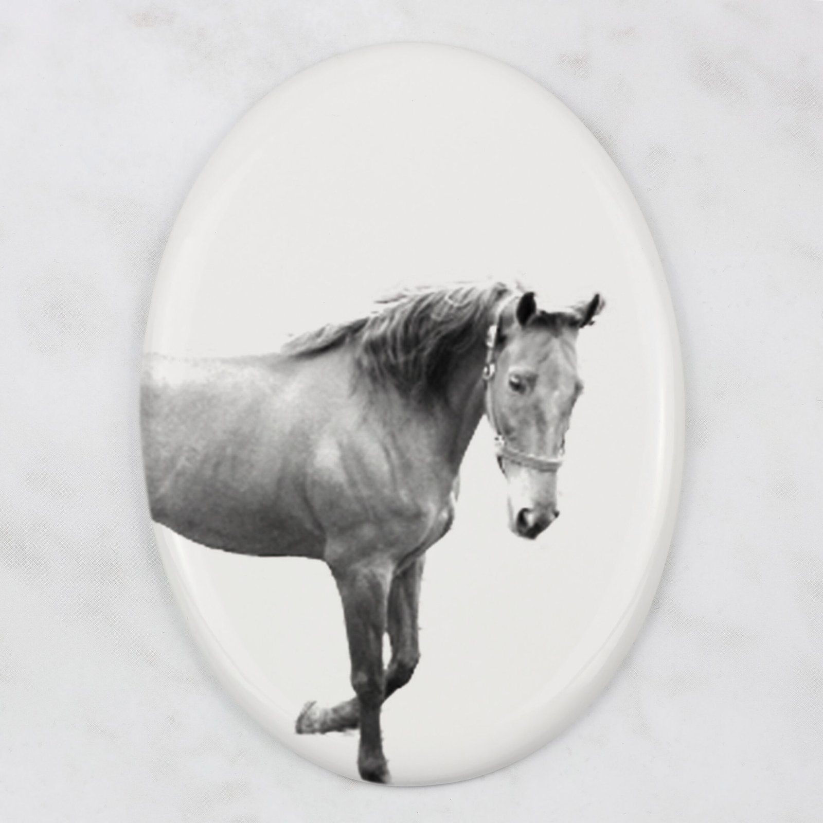Pasiūloje yra paruošti šunų, kačių ir arklių atvaizdų projektai. Plytelės yra pritaikomos – galime atspausdinti tavo augintinio nuotrauką. Atspaudą atliksime pagal tavo nurodymus arba spalvotą, arba pakeistą į „pieštuko eskizo” versiją, matomą šioje pasiūloje. Ant plytelės taip pat galime užrašyti tavo augintinio vardą ir gyvenimo laikotarpį.