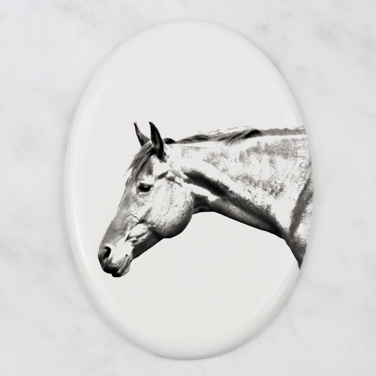 Pasiūloje yra paruošti šunų, kačių ir arklių atvaizdų projektai. Plytelės yra pritaikomos – galime atspausdinti tavo augintinio nuotrauką. Atspaudą atliksime pagal tavo nurodymus arba spalvotą, arba pakeistą į „pieštuko eskizo” versiją, matomą šioje pasiūloje. Ant plytelės taip pat galime užrašyti tavo augintinio vardą ir gyvenimo laikotarpį.
