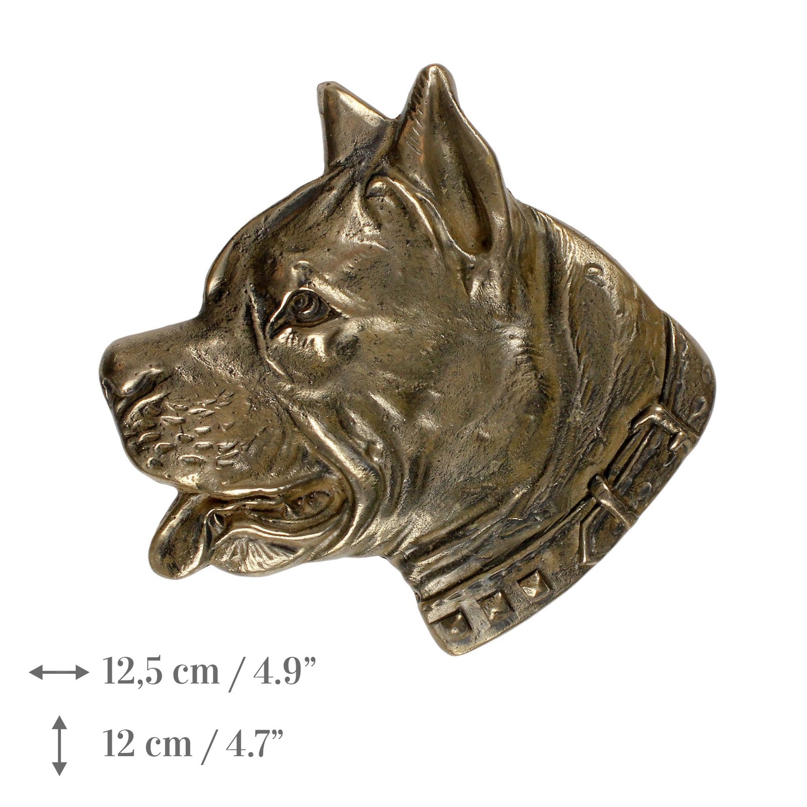Pristatome išskirtinį šaltu lietu išlietą bronzos šuns galvos reljefą. Dėl jo atsparumo oro sąlygoms, šis reljefas puikiai tinka lauke, pavyzdžiui, kaip papuošalas ant šuns kapo, bet taip pat puikiai tiks ir namuose.