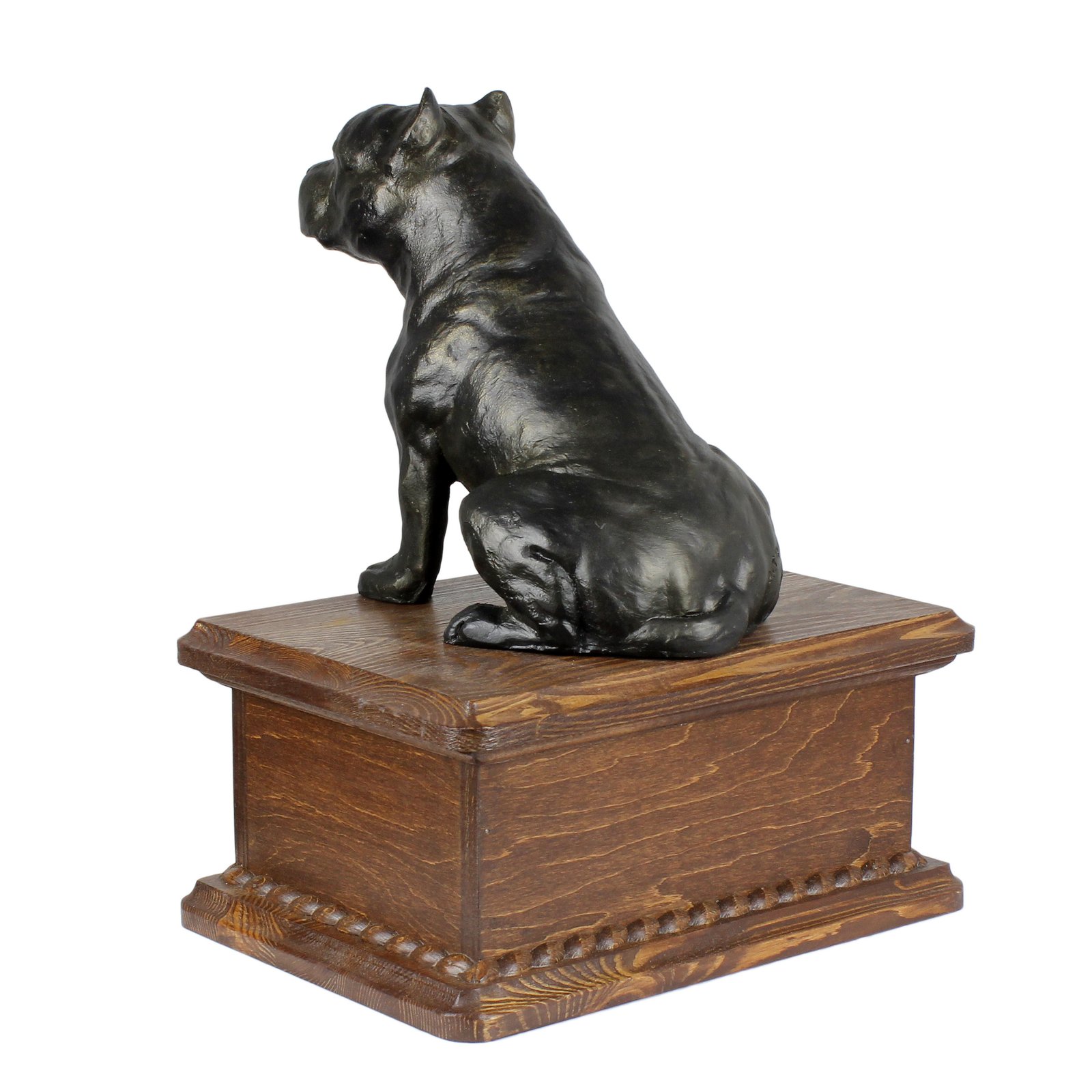 Rankų darbo beržo medžio urna pasižymi klasikiniu dizainu ir papuošta estetiškais vainikais. Elegantiška šunų sėdimoji statulėlė, pagaminta iš aukštos kokybės epoksidinės dervos, jungia žavesį ir stilių. Tvirtai pritvirtinta prie urnos dangčio figūrėlė suteikia jai unikalų žavesį, padarant urną ne tik gražiu poilsio vietu jūsų keturkojiam draugui, bet ir išskirtiniu jūsų namų papuošalu.