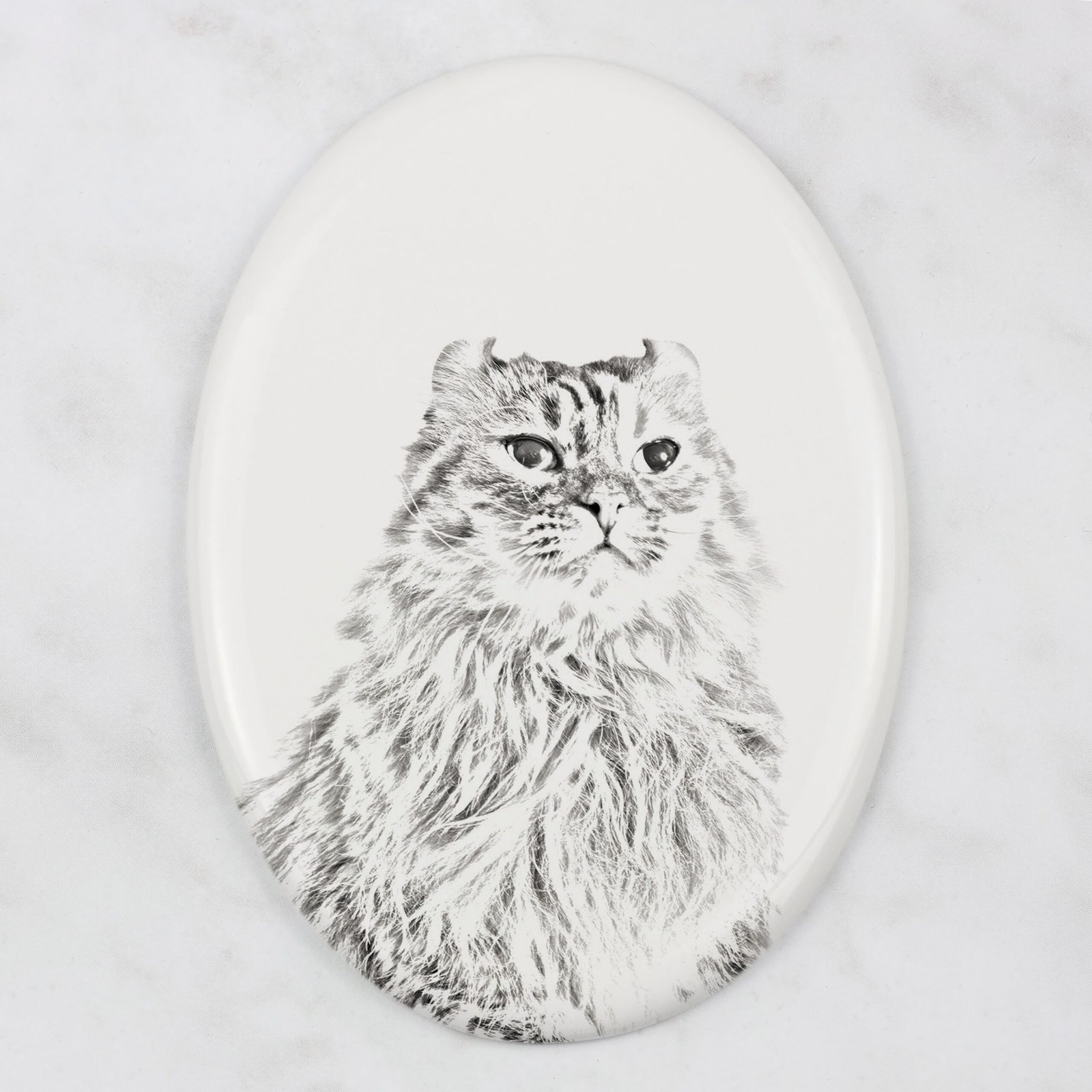 Amerikos garbanė (American Curl) – Atminimo lenta su katės nuotrauka
