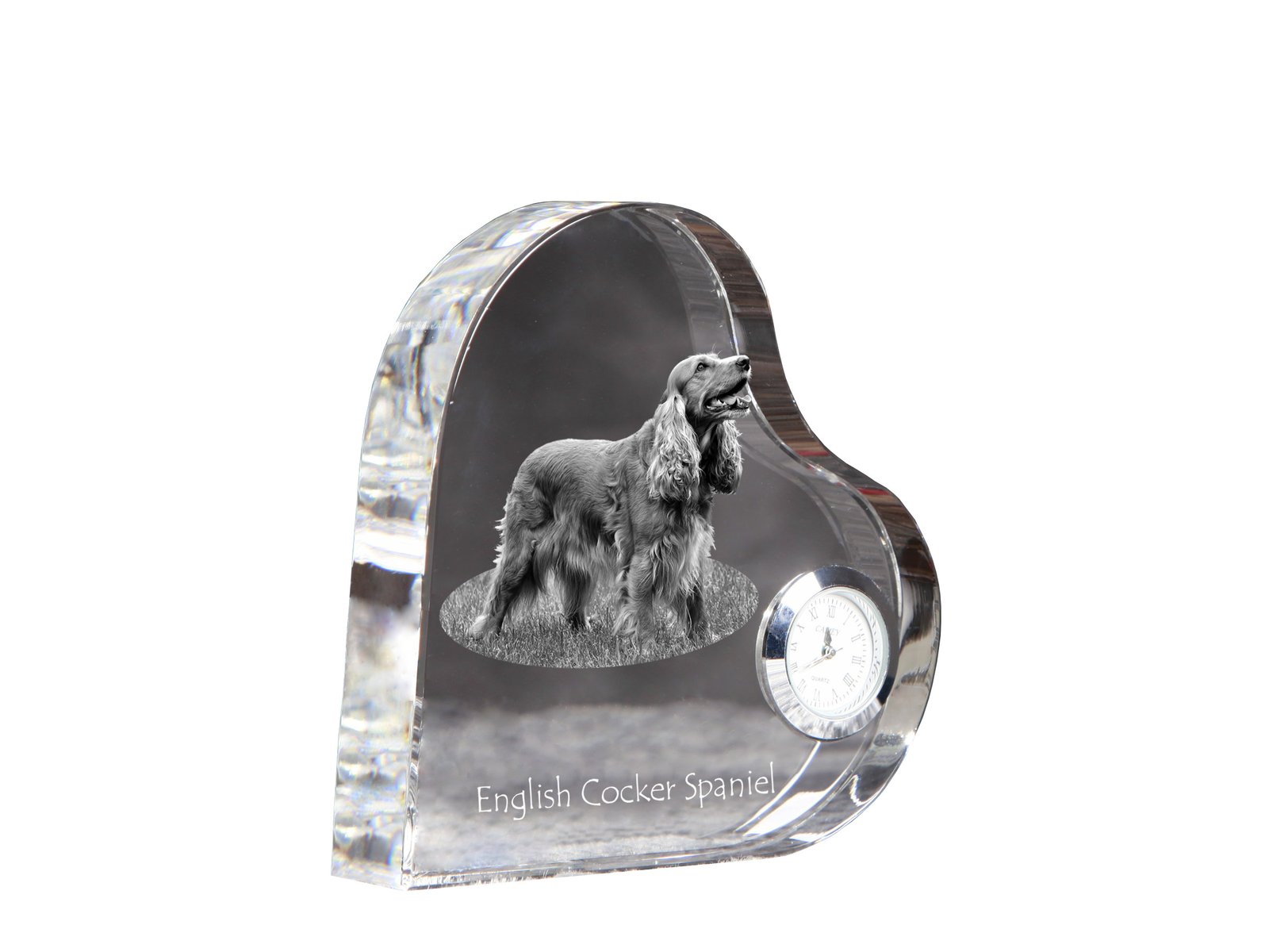 Anglų kokerspanielis (English Cocker Spaniel) – Krištolo laikrodis su nuotrauka