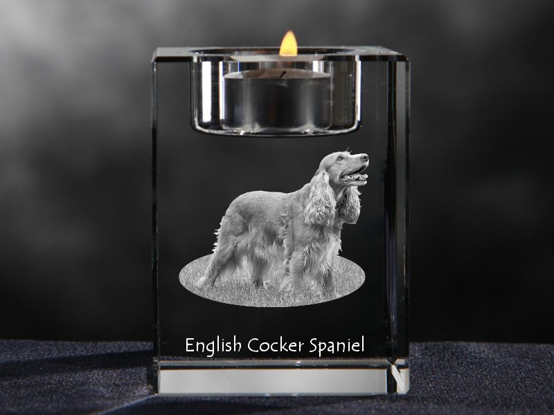 Anglų kokerspanielis (English Cocker Spaniel) – Žvakidė su šuns nuotrauka