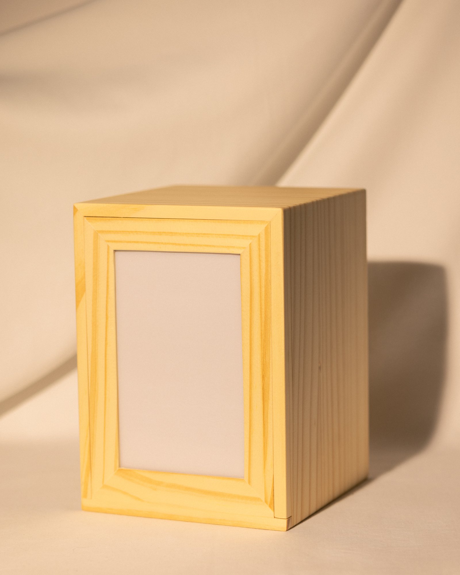 Natūraliai šviesi mediena suteikia papildomos šilumos. Dėl minimalistinio dizaino ši urna tiks tiek prie klasikinio, tiek prie šiuolaikinio interjero.