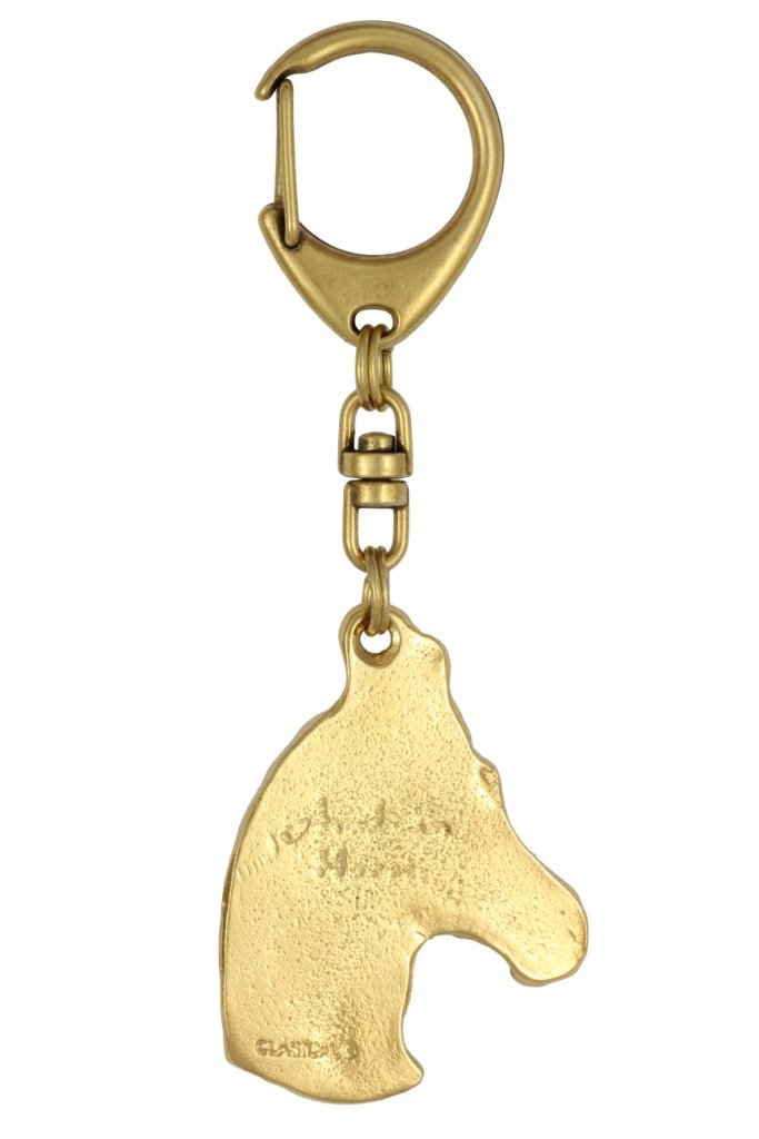 Šis raktų pakabukas su žirgu – puikus aksesuaras visiems šių gyvūnų mylėtojams. Pagamintas Lenkijoje, laikantis aukščiausios kokybės reikalavimų, jis užtikrina ilgaamžiškumą ir patikimumą ilgus metus. Jis turi klasikinį raktų pakabuką, leidžiantį lengvai pritvirtinti raktus. Šis tvirtinimo būdas taip pat garantuoja, kad pakabukas savaime neatsiskirs. Raktų pakabuką suprojektavo ir pagamino lenkų menininkas, kuris pasirūpino atkurti būdingus veislės bruožus. Pasidabruoto metalo pakabukas suteikia elegancijos ir stiliaus, yra ne tik praktiškas, bet ir estetiškas raktų priedas. Jis taip pat gali drąsiai tarnauti kaip rankinės ar kuprinės puošmena.