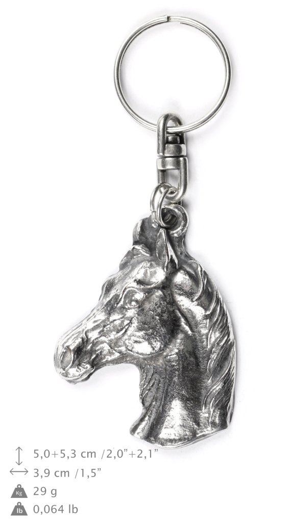 Šis raktų pakabukas su žirgu yra puikus aksesuaras kiekvienam šių gyvūnų mylėtojui. Pagamintas Lenkijoje, skiriant dėmesį aukščiausiai kokybei, jis užtikrina ilgaamžiškumą ir patikimumą ilgus metus. Jis turi klasikinį raktų pakabuką, leidžiantį lengvai pritvirtinti raktus. Šis tvirtinimo būdas taip pat garantuoja, kad pakabukas savaime neatsiskirs. Raktų pakabuką suprojektavo ir pagamino lenkų menininkas, kuris pasirūpino atkurti būdingus veislės bruožus. Pasidabruoto metalo pakabukas suteikia elegancijos ir stiliaus, yra ne tik praktiškas, bet ir estetiškas raktų priedas. Jis taip pat gali drąsiai tarnauti kaip rankinės ar kuprinės puošmena.