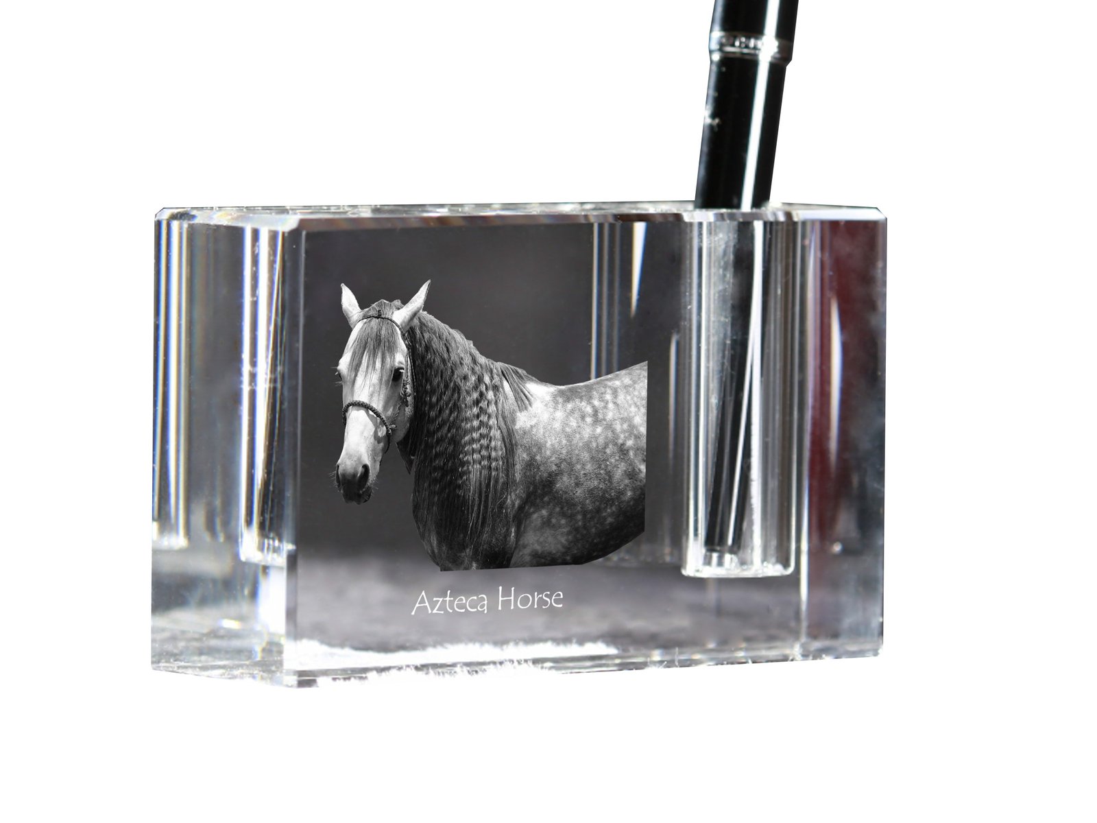 Šis elegantiškas rašiklių stovas yra unikalus rašomojo stalo aksesuaras, pagamintas iš aukštos kokybės krištolo. Papuoštas žavingu augintinio paveikslėliu, jis traukia akį ir suteikia asmeniškumo bet kuriai darbo vietai. Stovas turi vieną rašiklio lizdą, todėl idealiai tinka vertinantiems tvarką ir minimalizmą. Be to, yra galimybė jį personalizuoti su savo augintinio nuotrauka, todėl tai puiki dovana įvairiomis progomis. Dėl kompaktiško dydžio ir stilingo dizaino jis puikiai dera prie bet kokio interjero.