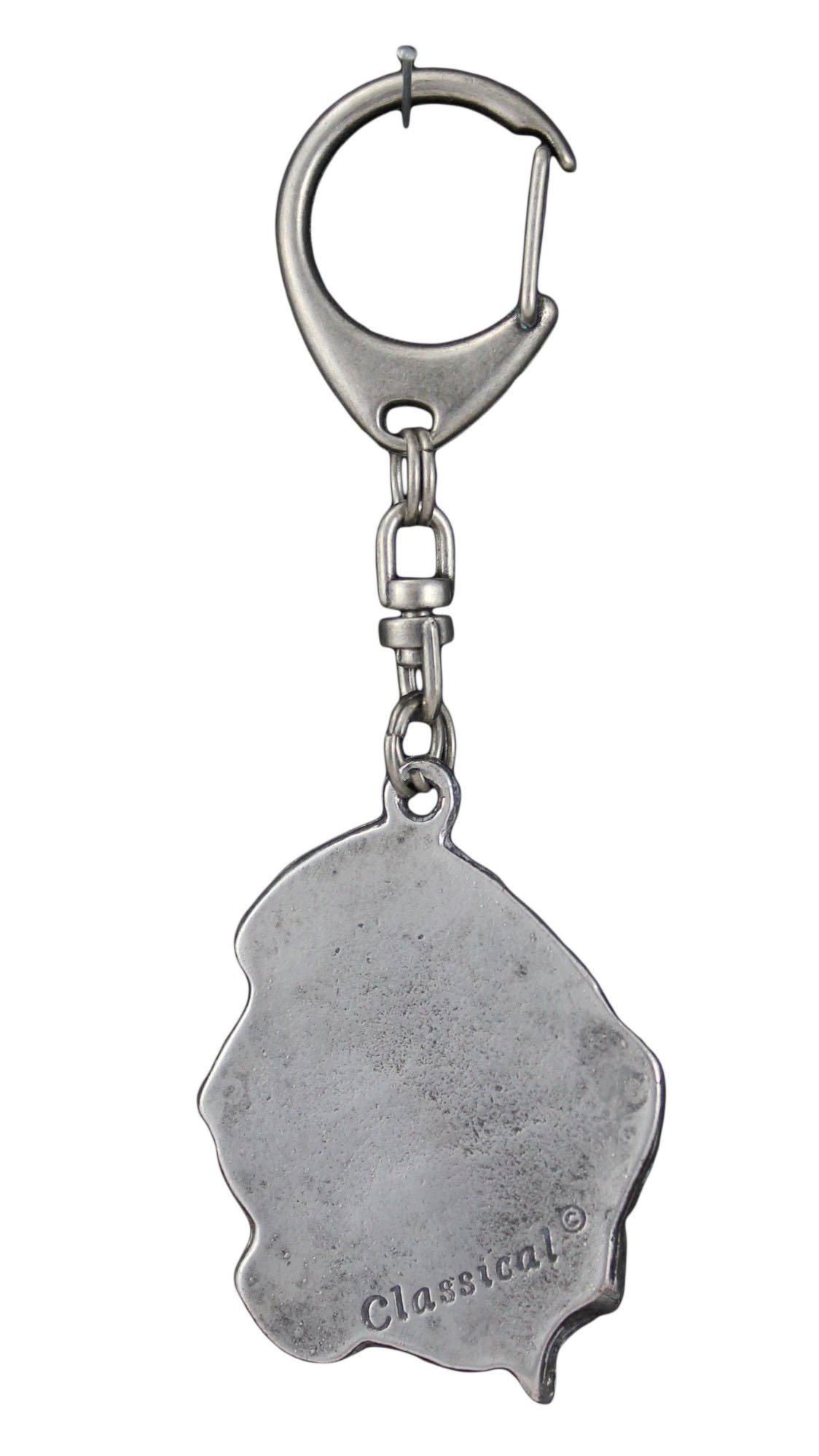 Jei ieškote unikalios, bet neįpareigojančios dovanos šunų mylėtojui, pataikėte į tinkamą pasiūlymą! Šis aukštos kokybės pakabukas, kurį sukūrė ir pagamino lenkų menininkas, neabejotinai sukels šypseną gavėjo lūpose. Pakabukas pasižymi ypatingu tikslumu ir dėmesiu detalėms, kurių dėka tiksliai atkurti būdingi veislės bruožai. Pakabukas pagamintas iš aukštos kokybės cinko ir aliuminio lydinio, todėl mūsų gaminiai yra patvarūs ir atsparūs pažeidimams. Gaminys padengtas sidabro sluoksniu, kuris jam suteikia elegancijos ir gali drąsiai tarnauti kaip originali rankinės ar kuprinės puošmena. Patogus ir patvarus užsegimas užtikrina, kad jie patys neatsiskleis.