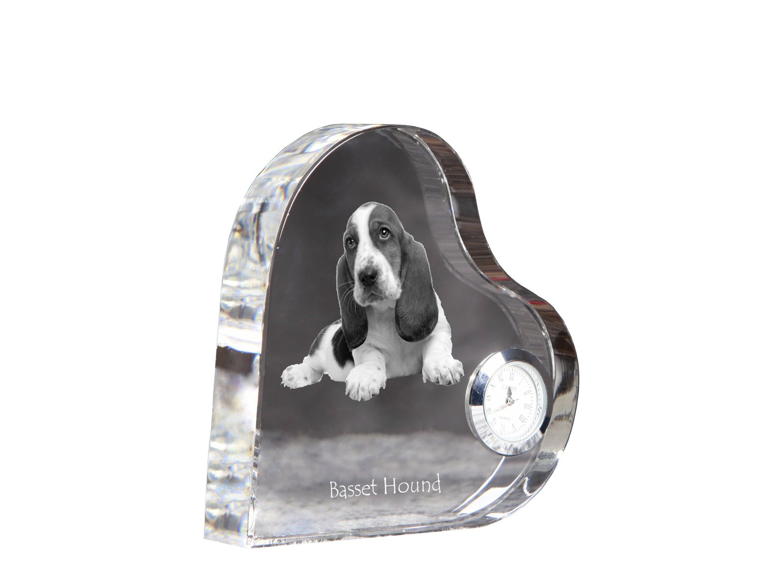 Anglų basetas (Basset Hound) – Krištolo laikrodis su nuotrauka