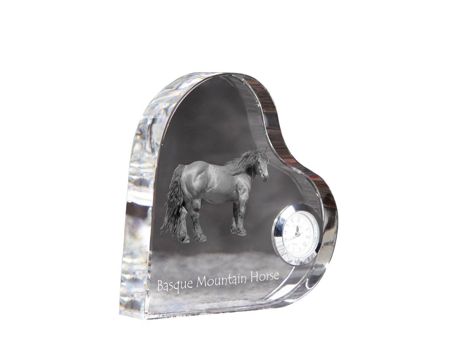Basque Mountain Horse – Krištolo laikrodis su arklio nuotrauka