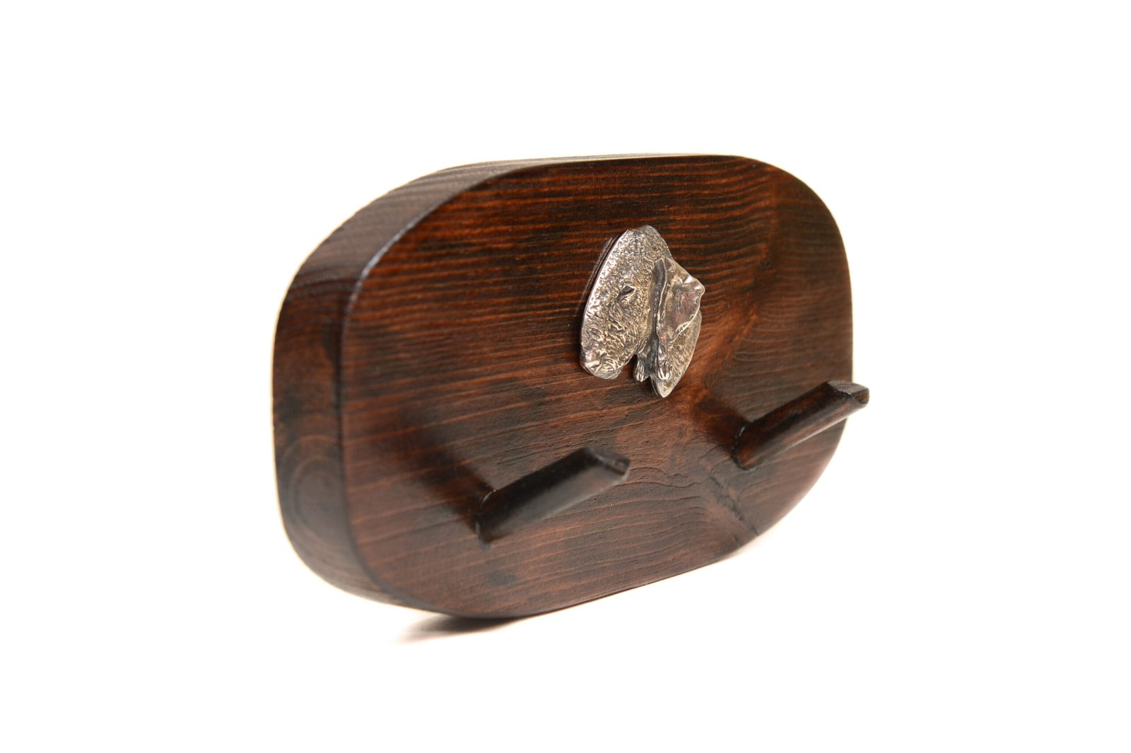 Ši medinė šunų pakaba – tai rankų darbo unikalus aksesuaras, skirtas interjerui suteikti ir funkcionalumo, ir elegancijos. Klasikinį stilių atspindi pušies medienos ir pasidabruoto, sudėtingai pagaminto šuns reljefo derinys. Pakabą galima naudoti kaip tradicinę drabužių kabyklą, taip pat kaip pavadėlio ir kitų šuns aksesuarų pakabą, parodoje iškovotų medalių eksponatą arba kaip raktų kabliuką. Universali jos paskirtis kalba pati už save – tai bus tikrai praktiška dovana bet kuriam šunų mylėtojui!