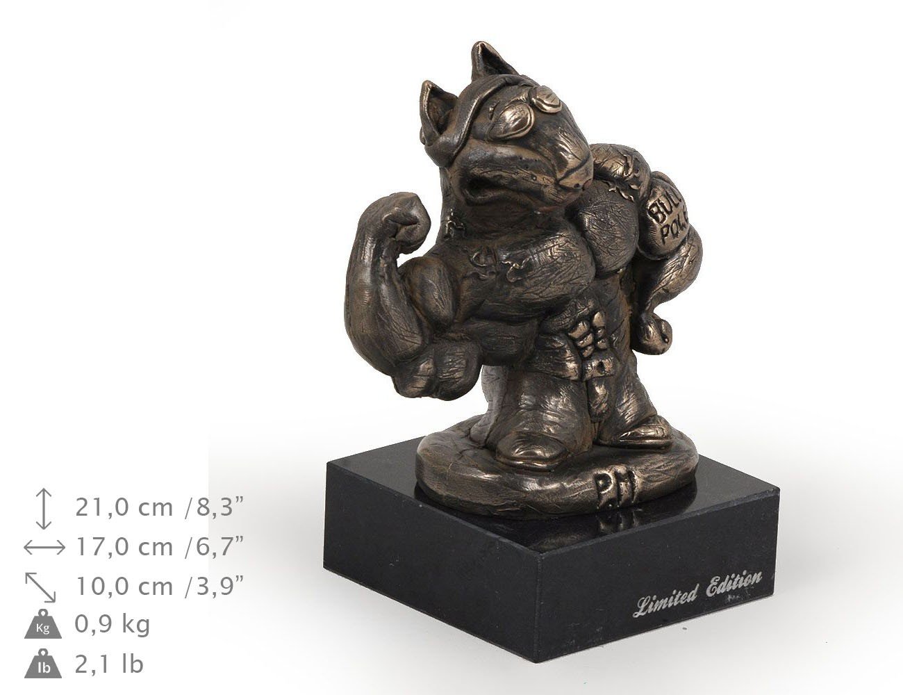 Ši figūrėlė yra tikras išskirtinės ” ” kolekcijos perlas. Ši unikali skulptūrėlė, pagaminta itin kruopščiai, jūsų interjerui suteiks elegancijos. Tai ne tik dekoracija, bet ir įspūdingo meistriškumo išraiška. Kiekvienas kūrinys pagamintas rankomis mažose dirbtuvėse Lenkijoje. Skulptūra šaltuoju būdu liejama iš bronzos, po to rankomis apdirbama ir tvirtinama ant tvirto akmeninio pagrindo. Statula suteiks puošnumo jūsų biurui, svetainei ir kitiems interjerams. Ji taip pat bus puikus prisiminimas apie jūsų mylimą augintinį ir švelni duoklė jam.
