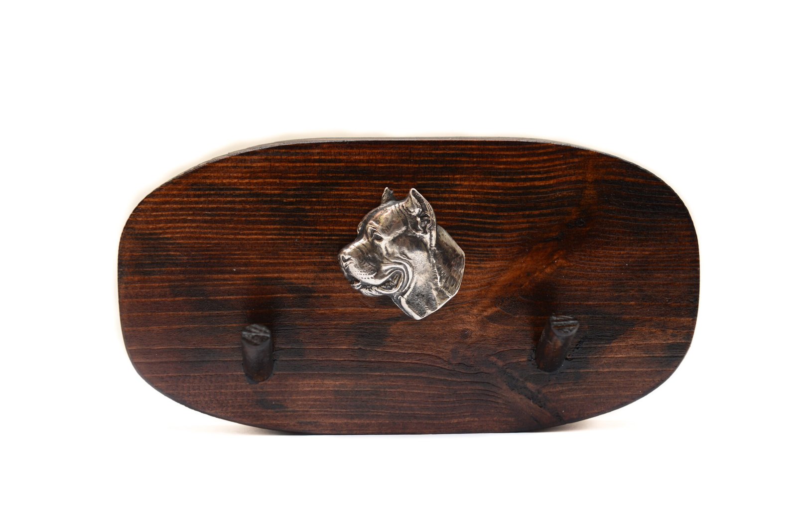 Ši medinė šunų pakaba – tai rankų darbo unikalus aksesuaras, skirtas interjerui suteikti ir funkcionalumo, ir elegancijos. Klasikinį stilių atspindi pušies medienos ir pasidabruoto, sudėtingai pagaminto šuns reljefo derinys. Pakabą galima naudoti kaip tradicinę drabužių kabyklą, taip pat kaip pavadėlio ir kitų šuns aksesuarų pakabą, parodoje iškovotų medalių eksponatą arba kaip raktų kabliuką. Universali jos paskirtis kalba pati už save – tai bus tikrai praktiška dovana bet kuriam šunų mylėtojui!