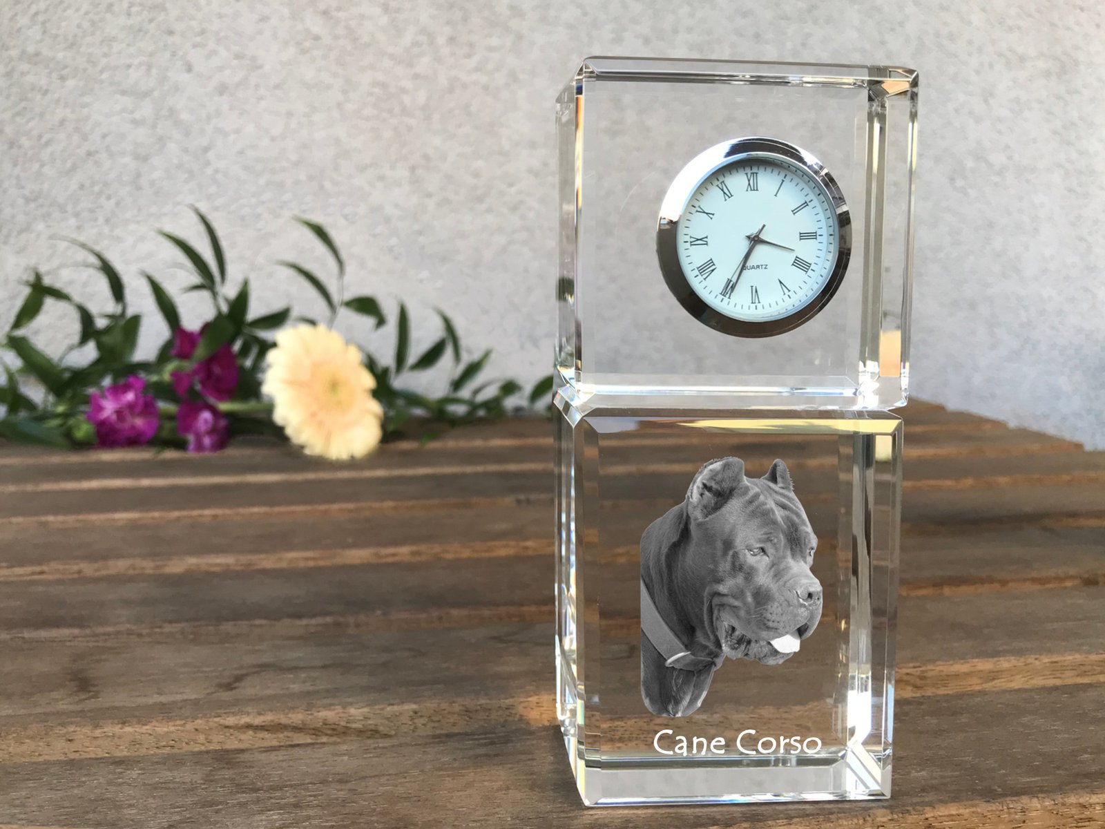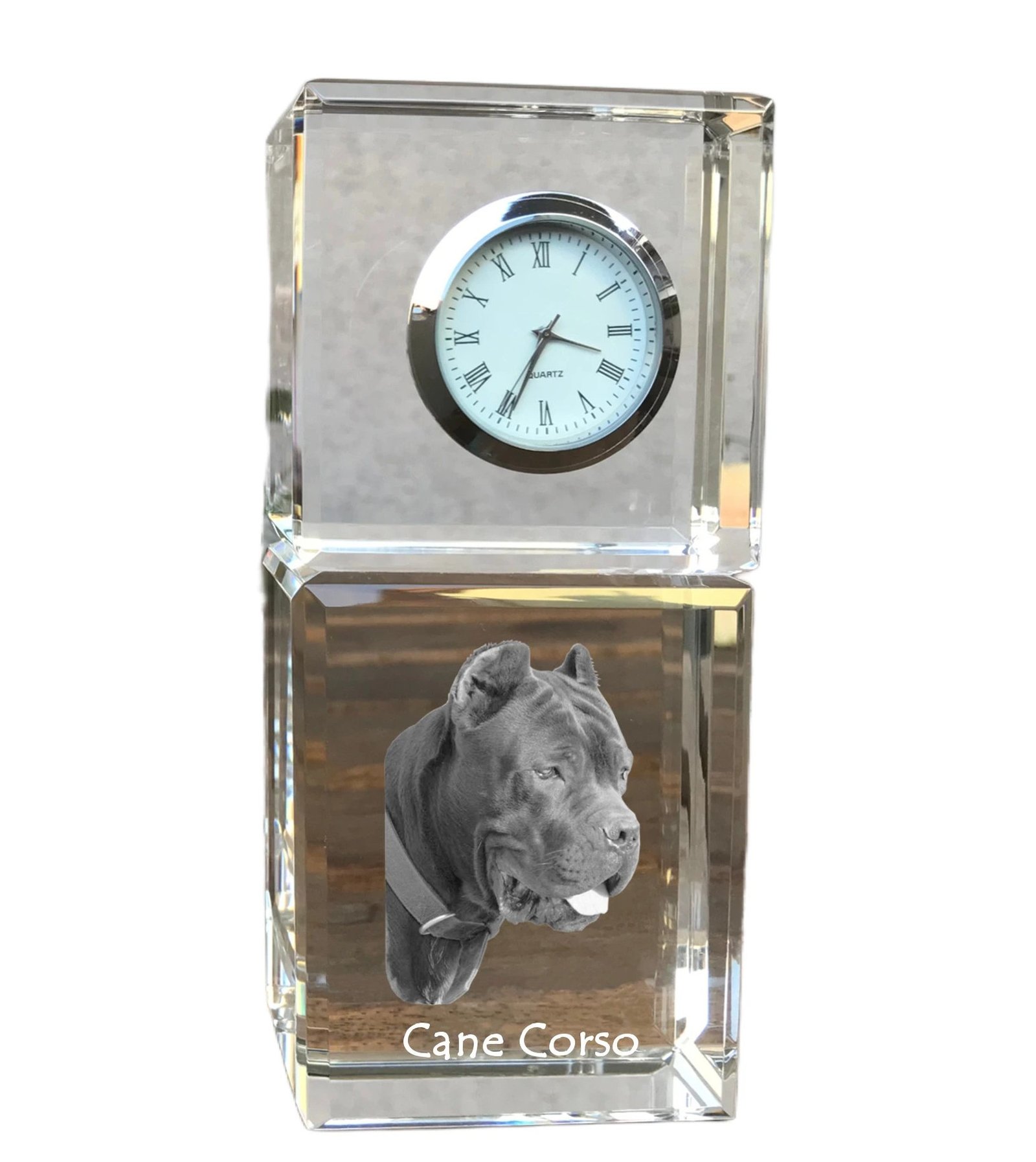 Italų mastifas (Cane Corso) – Krištolo laikrodis su nuotrauka